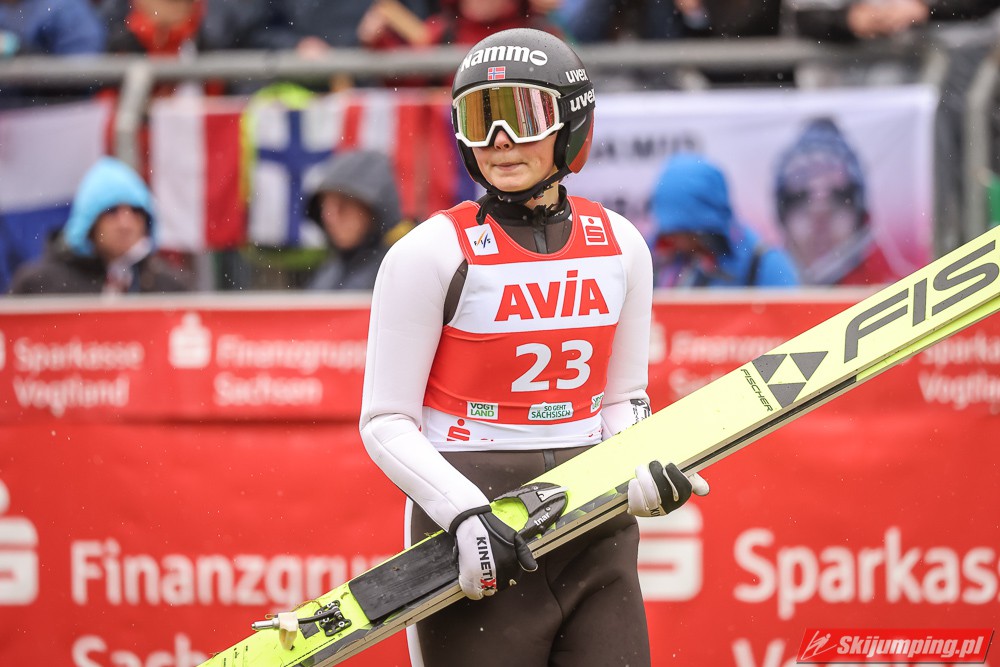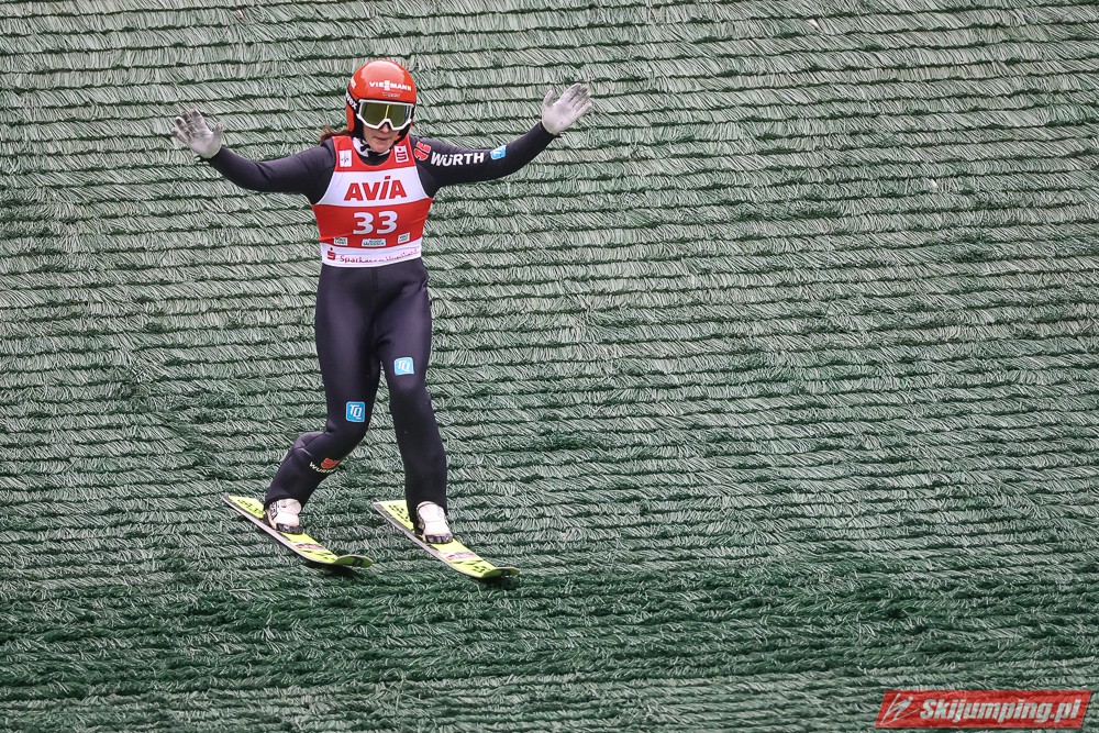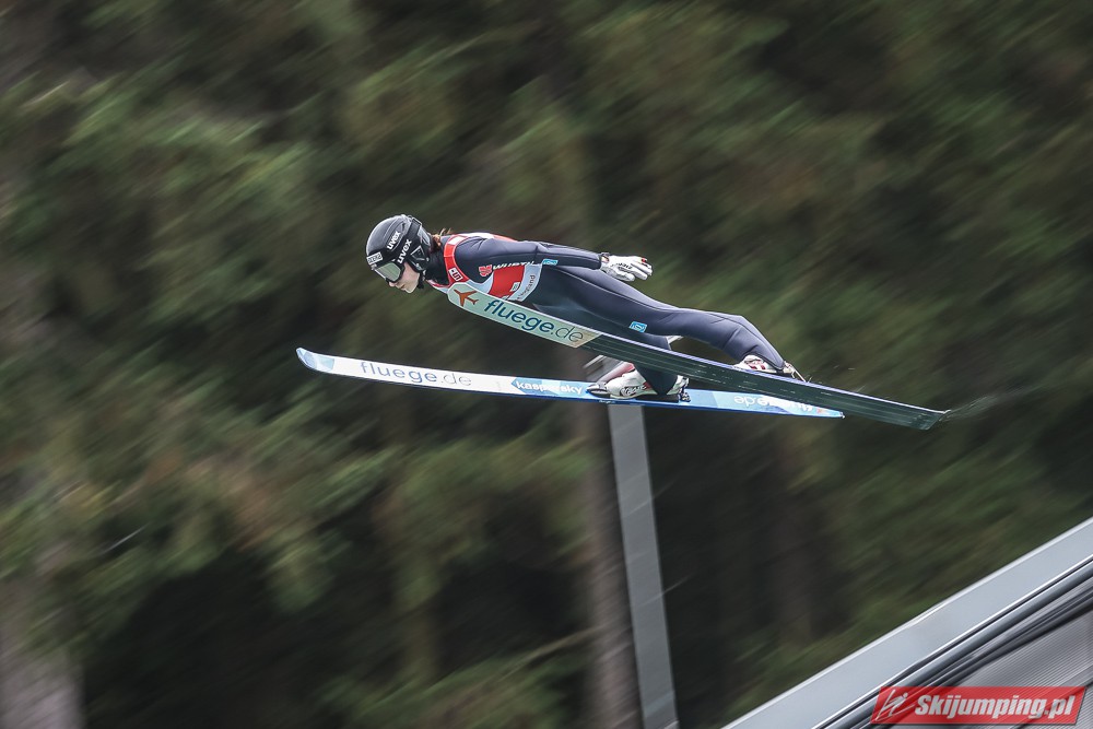 I to jest pierwszy wielki sukces Konderli! Wyrównała swoje najlepsze letnie osiągnięcia w o wiele mocniejszej obsadzie niż na początku lata. Po I serii miała szansę na coś naprawdę wielkiego, ale szkoda, że w finale trafiła na o wiele gorsze warunki. Na szczęście spadła tylko o 5 miejsc. Jestem spokojny o jej zimę. Choć do niedawna nawet nie skakała, a przygodę z PŚ zaczęła odpadaniem w Q, to w zeszłym roku dwukrotnie zapunktowała w słabej obsadzie, a jednak. Dzięki tak szybkiemu postępowi miejsca w "30" z dużą konkurencją powinny być realne. Ciekawi mnie jednak, jak by sobie poradziła Rajda, która wygrywała w Orlen Cupie. Pewnie nie moglibyśmy nawet z jej słabymi skokami spaść poniżej 6. lokaty w mikście, ale przynajmniej Rumunia czy Czechy w zapaści się nie wstydziły wystawić ekip. Wydaje mi się, że wymagania co do występu w Klingenthal były dla Polski za wysokie, a wiemy, na jakim poziomie nasze skoki stoją.