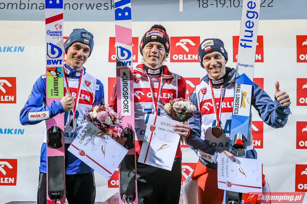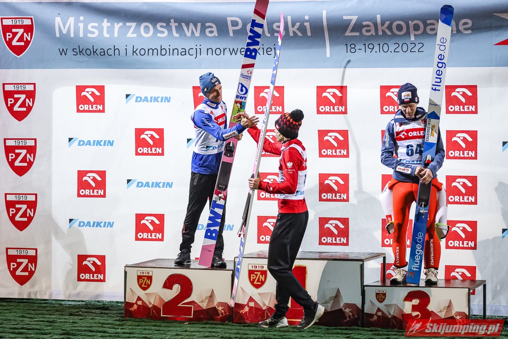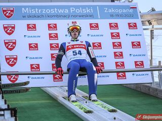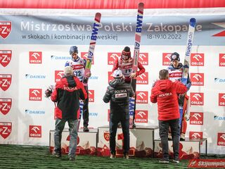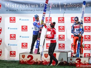 Dawid Kubacki pewnie zwyciężył we wtorkowym konkursie indywidualnym Letnich Mistrzostw Polski w Zakopanem. Triumfator Letniego Grand Prix 2022 w pierwszej serii uzyskał 105,5 metra, a w drugiej ustanowił nowy rekord Średniej Krokwi (HS105) - 108,5 metra. Srebrny medal wywalczył Piotr Żyła, a brąz zdobył Stefan Hula.