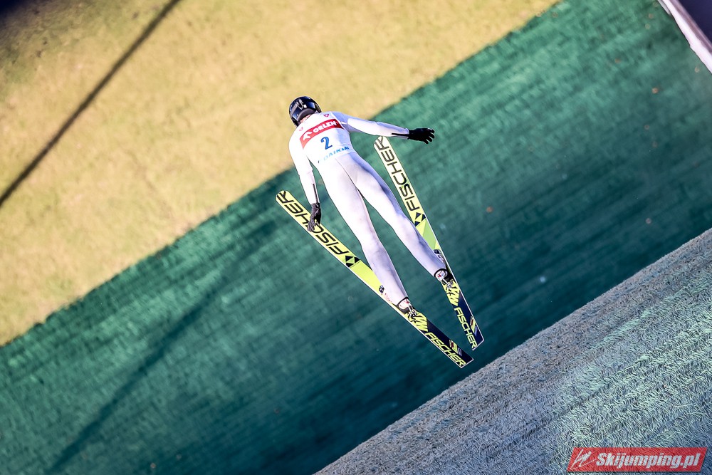 Po pierwszej serii na prowadzeniu znajdował się Dawid Kubacki. Mistrz świata z Seefeld poszybował na odległość 105,5 metra i wyprzedzał o 2,9 punktu drugiego Stefana Hulę (105,5 m) oraz o 5,8 pkt. trzeciego Piotra Żyłę (99,5 m). Tuż za czołową trójką plasowali się Kacper Juroszek (101,5 m), Paweł Wąsek (101 m) i Klemens Murańka (102 m).