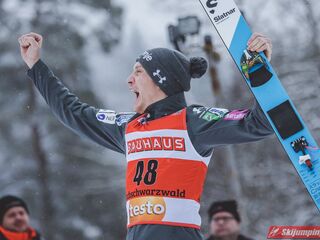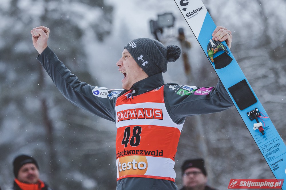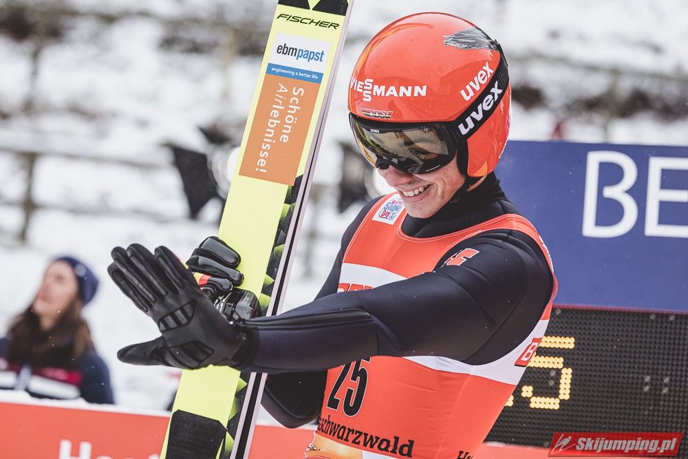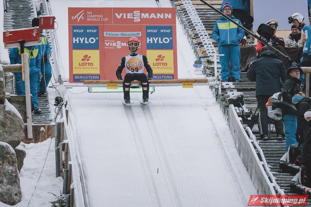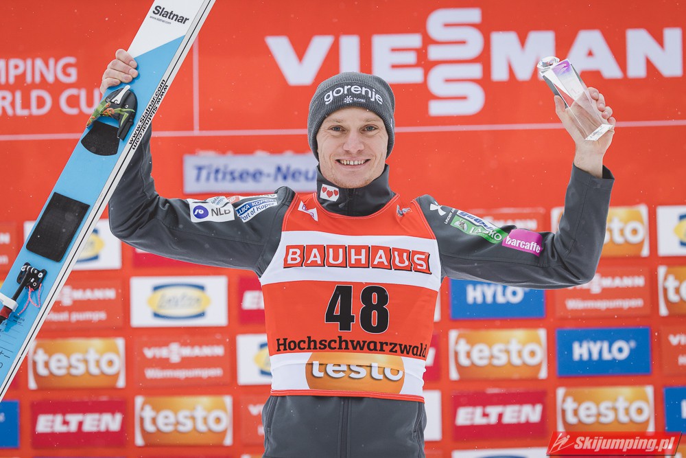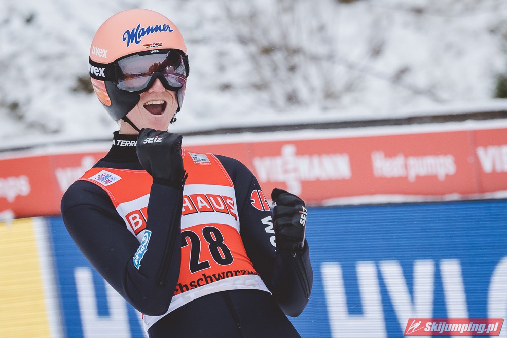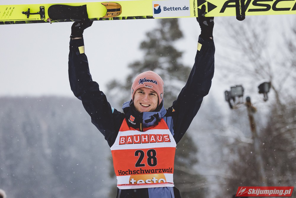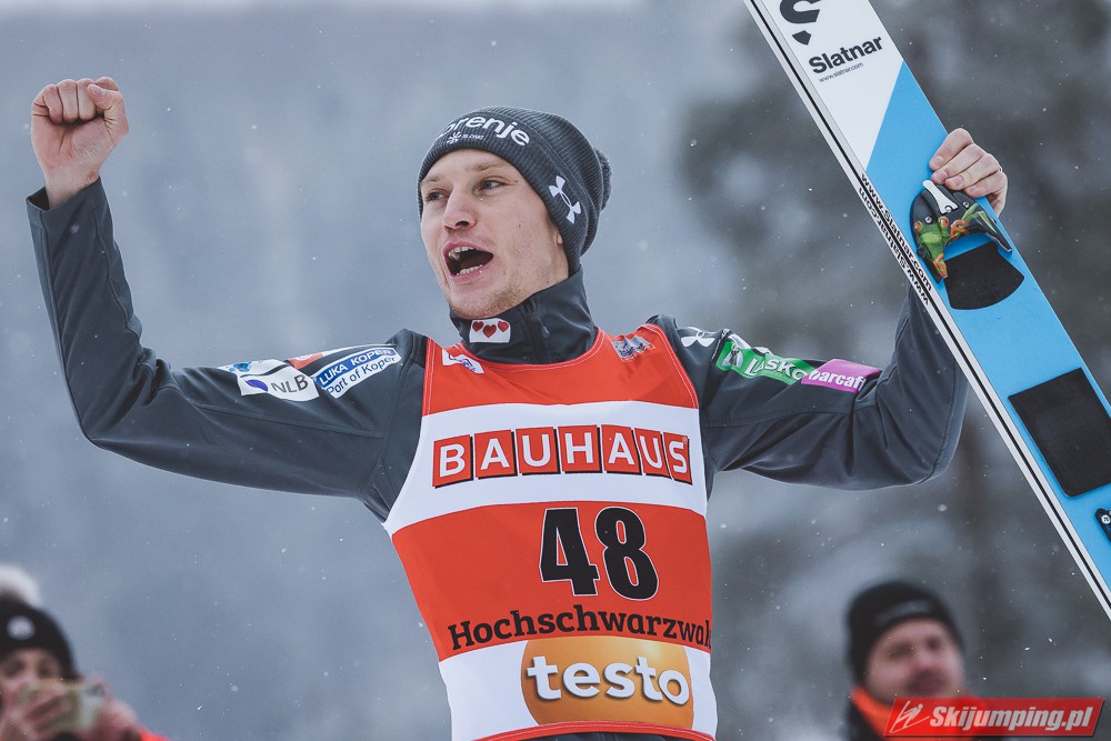 Anze Lanisek został zwycięzcą piątkowego konkursu indywidualnego Pucharu Świata na Hochfirstschanze (HS142) w Titisee-Neustadt. Reprezentant Słowenii wygrał dzięki skokom na odległość 133,5 m oraz 141 m. Drugie miejsce zajął lider klasyfikacji generalnej cyklu - Dawid Kubacki, a trzecie Niemiec Karl Geiger. Szósty był Piotr Żyła. Pucharowe punkty zdobyło czterech Polaków.
