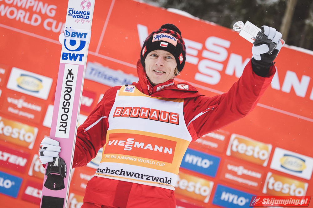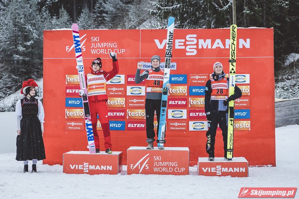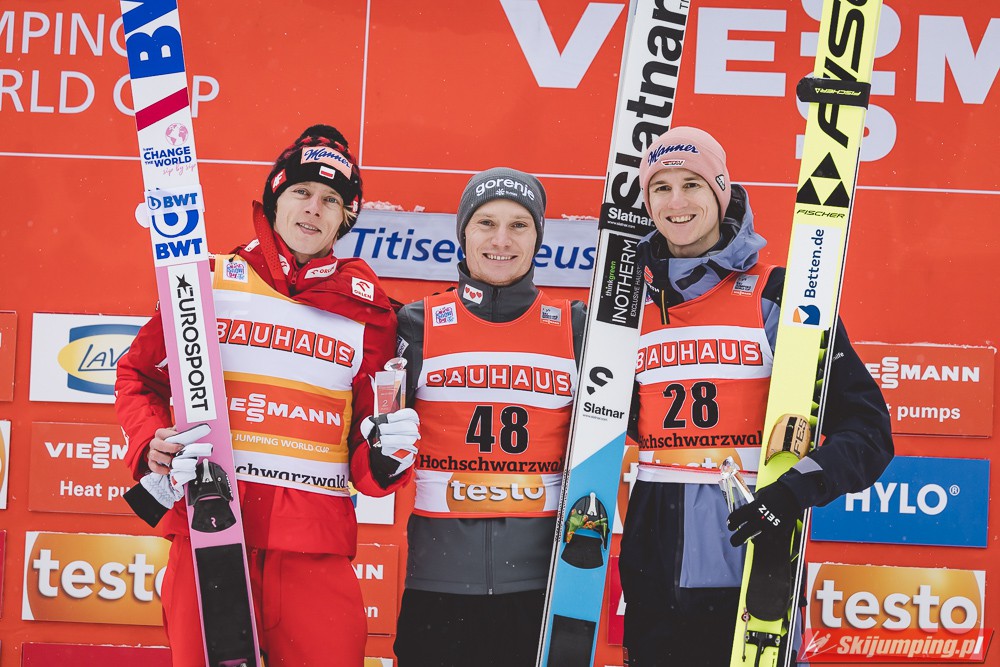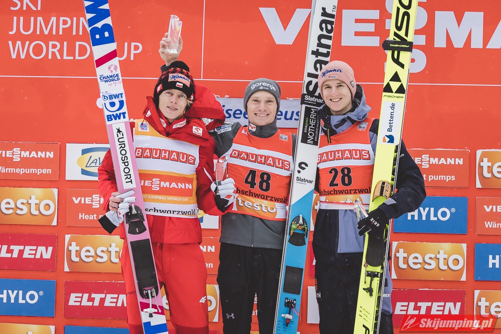 Dawid Kubacki po raz dwudziesty szósty w karierze, a trzeci w obecnym sezonie stanął na podium zawodów indywidualnych Pucharu Świata. Dla mistrza świata z Seefeld to również trzecie podium wywalczone w Titisee-Neustadt. Lider Pucharu Świata ma w swoim dorobku siedem zwycięstw, sześć drugich oraz trzynaście trzecich miejsc. To także 241. indywidualne polskie podium w zawodach tej rangi.