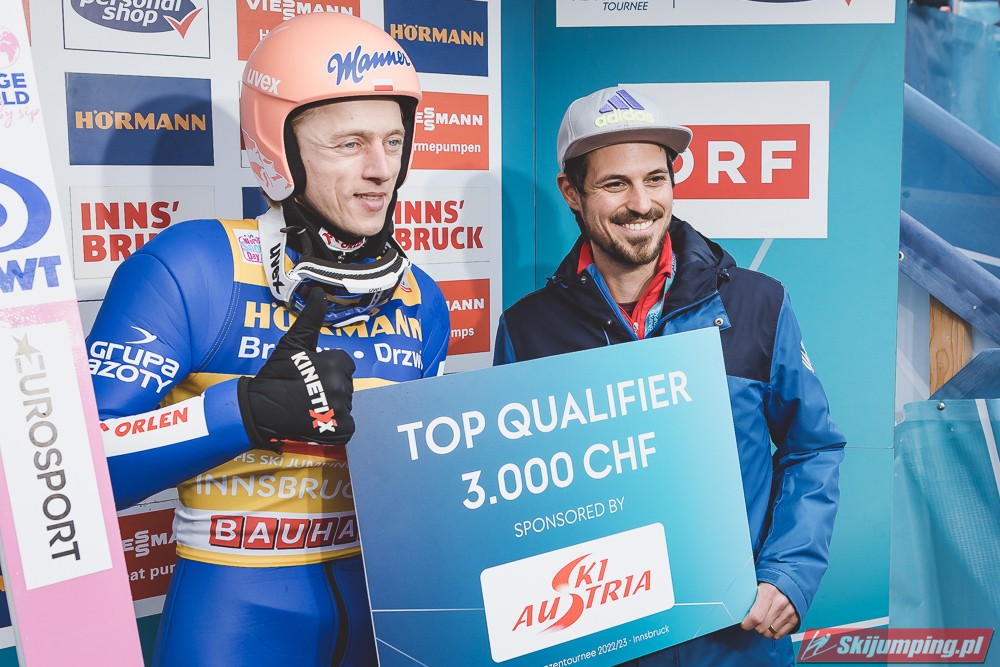 Wtorkowe kwalifikacje na Bergisel zakończyły się polskim dubletem. Zwycięzcą rundy został Dawid Kubacki. Lider Pucharu Świata poszybował na 128 metr i okazał się lepszy o 4 punkty od drugiego Kamila Stocha (126 m). Trzecie miejsce zajął Anze Lanisek (121 m) przed norweskim duetem - Mariusem Lindvikiem (122,5 m) i Johannem Andre Forfangiem (122 m).