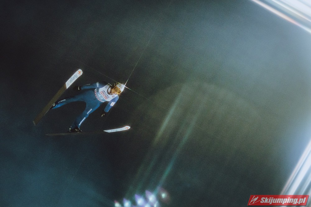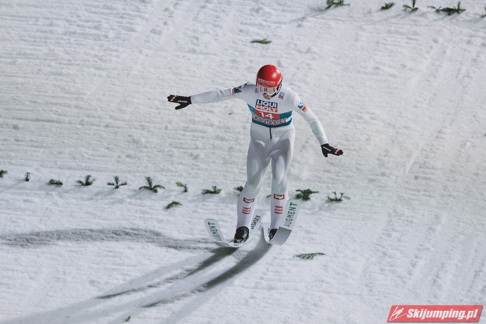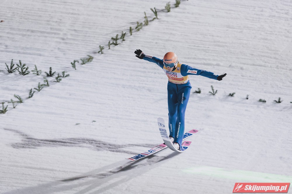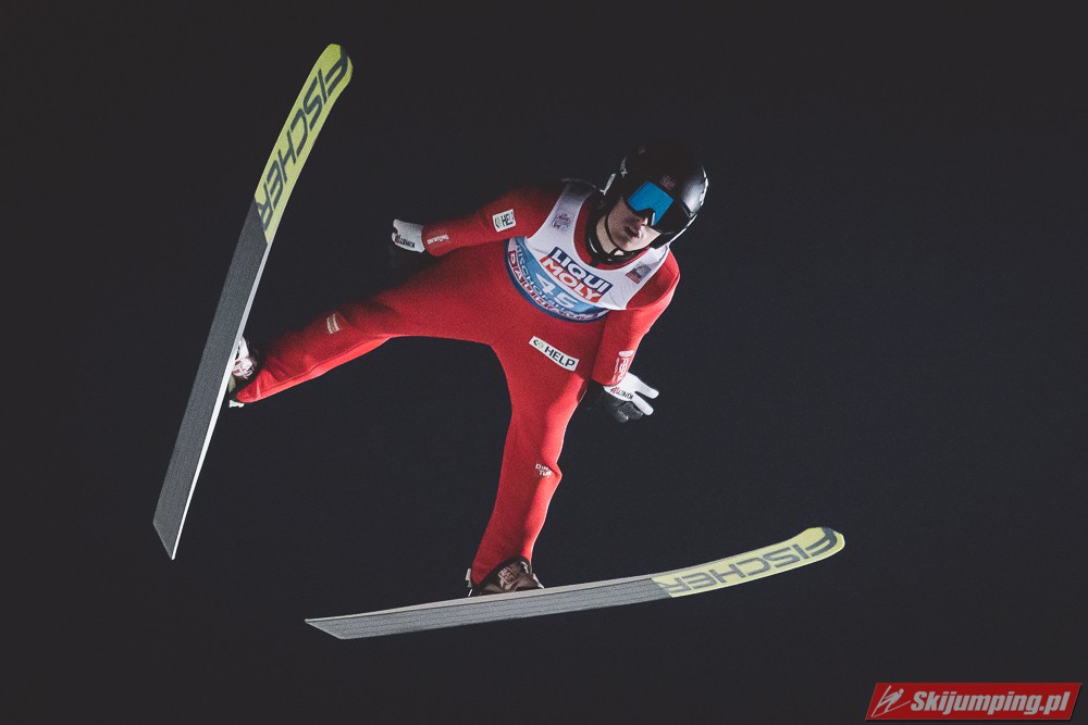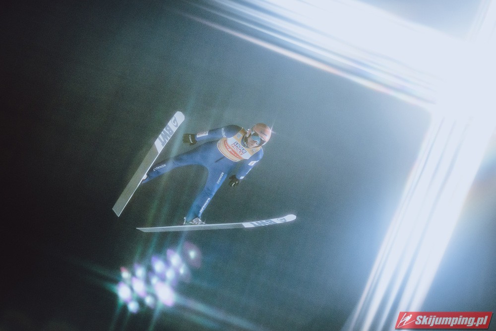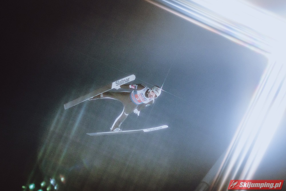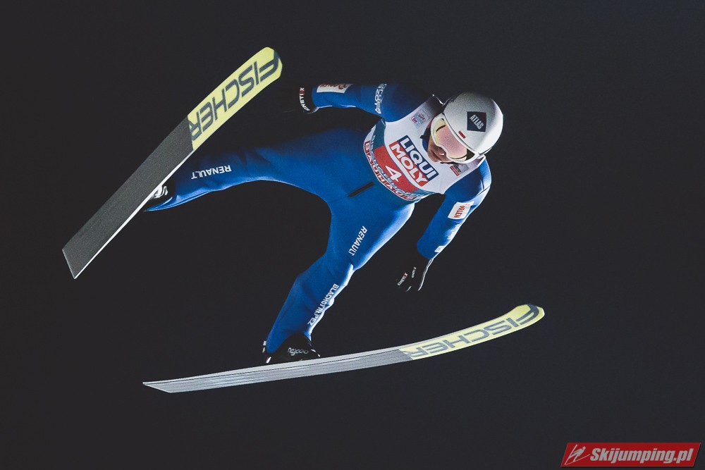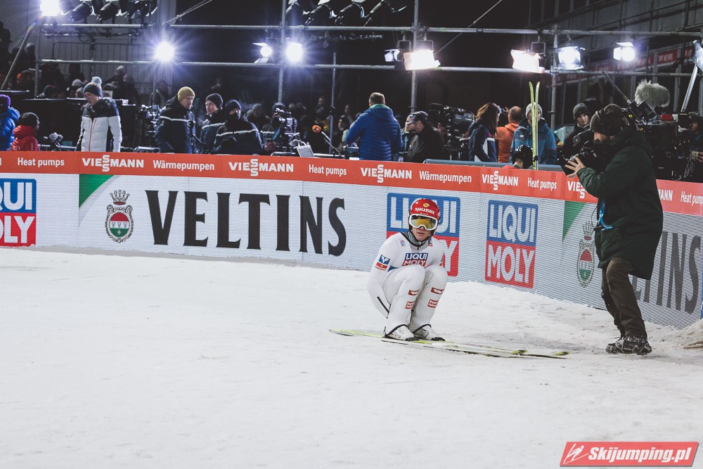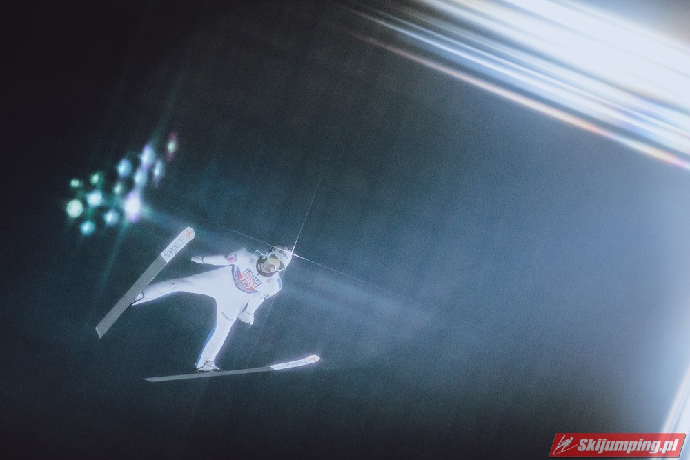 Myślę że jego skok nie był ani centa słabszy jakościowo niż Laniska. Ciężkie warunki zrobiły te 3,8 punktu różnicy. Co niestety będzie ciężko odrobić, jeśli Dawid w drugiej serii nie będzie miał dużo lepszych warunków od Słoweńca. Ważne żeby przynajmniej podium było.