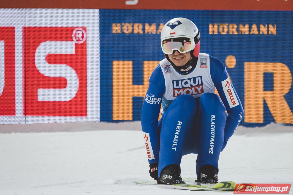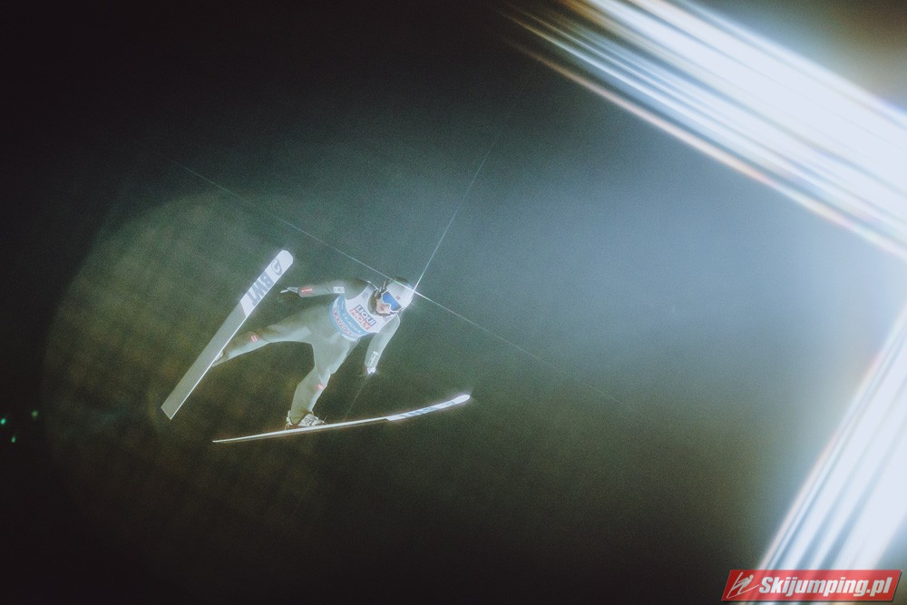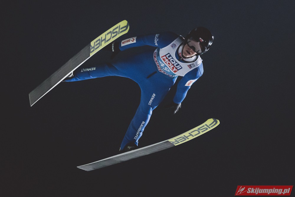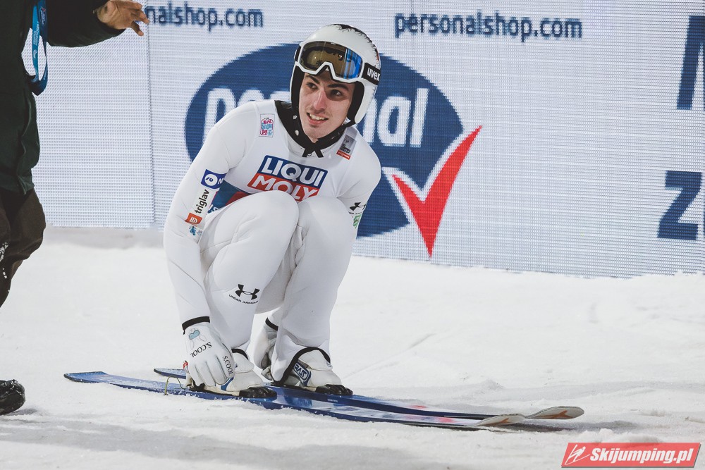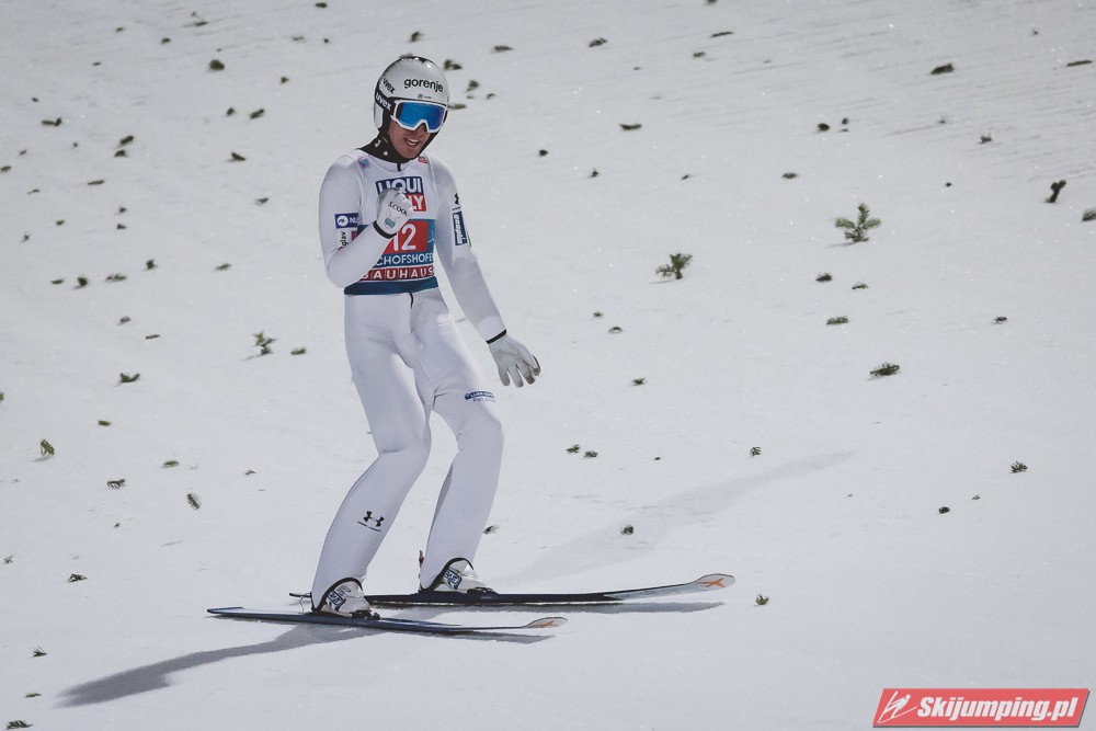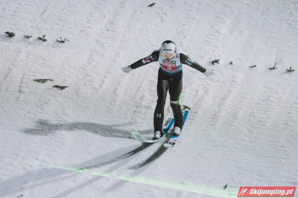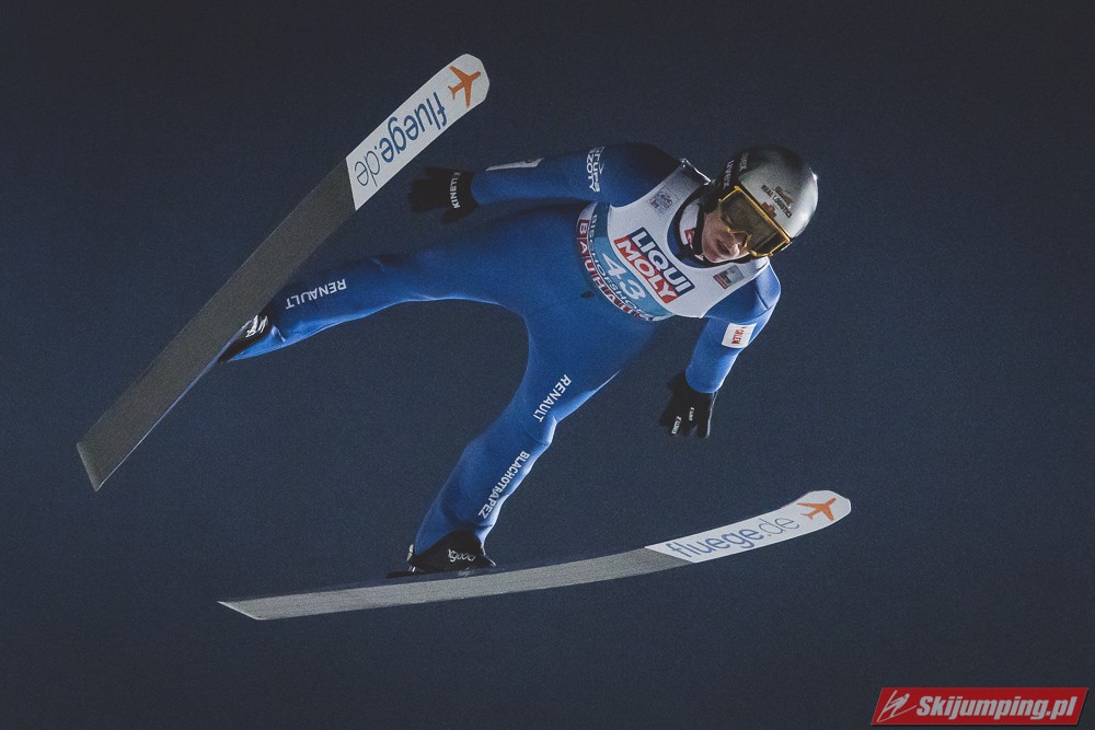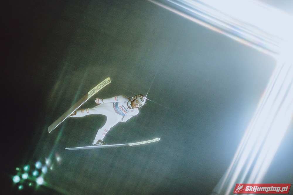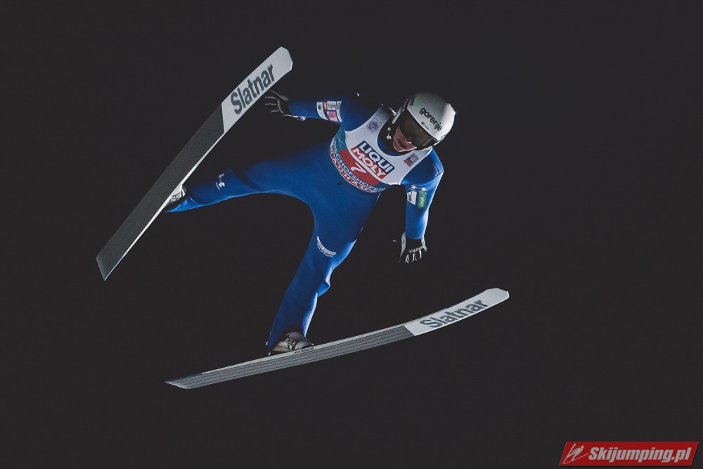 Myślę że jego skok nie był ani centa słabszy jakościowo niż Laniska. Ciężkie warunki zrobiły te 3,8 punktu różnicy. Co niestety będzie ciężko odrobić, jeśli Dawid w drugiej serii nie będzie miał dużo lepszych warunków od Słoweńca. Ważne żeby przynajmniej podium było.