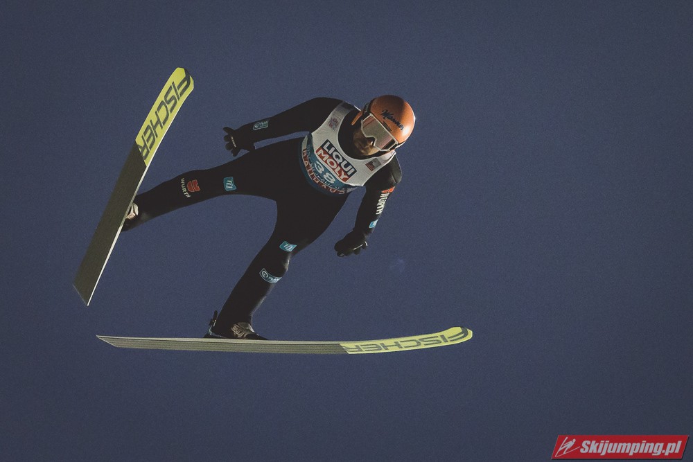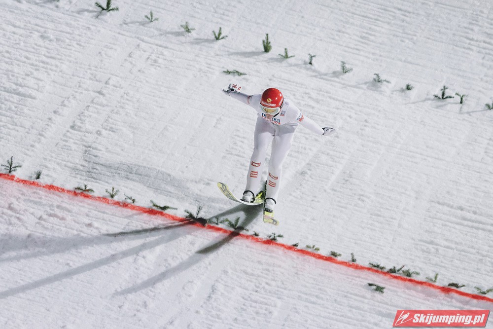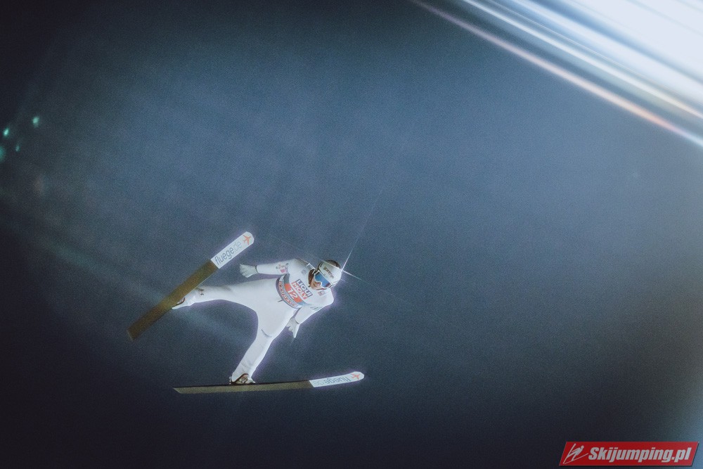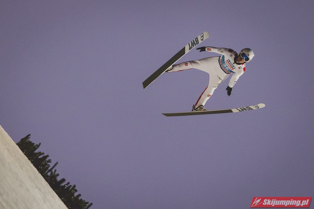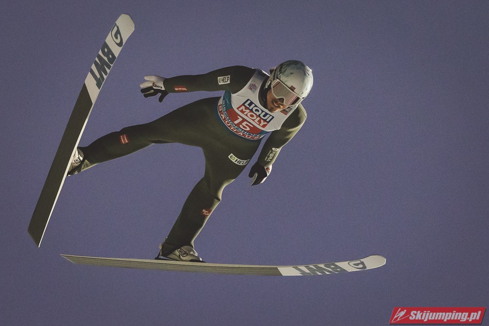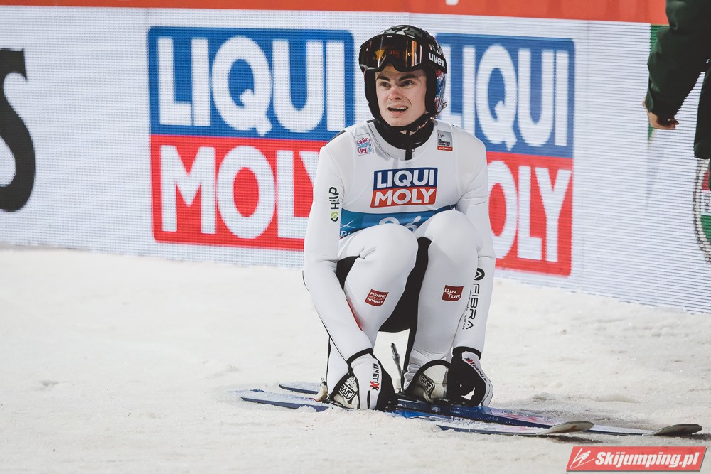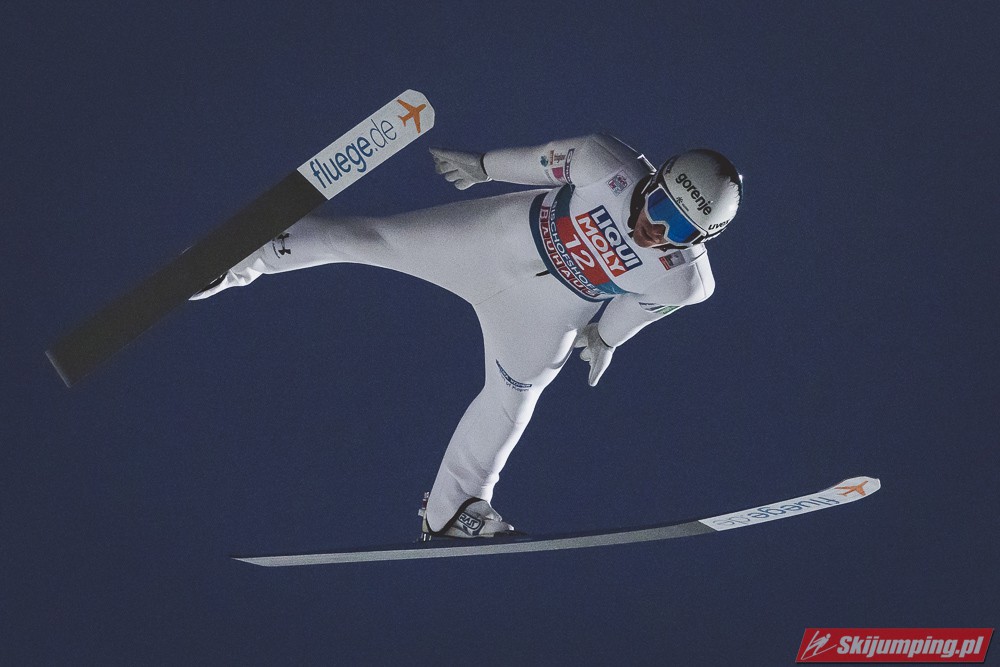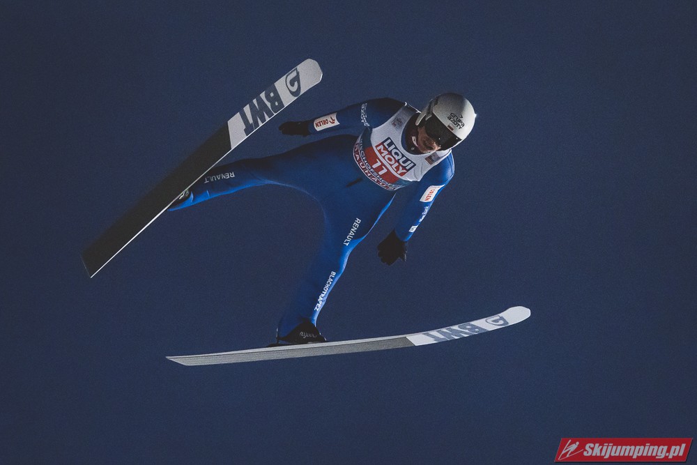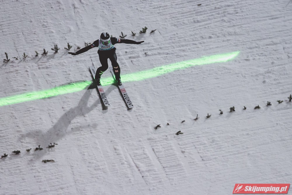 Myślę że jego skok nie był ani centa słabszy jakościowo niż Laniska. Ciężkie warunki zrobiły te 3,8 punktu różnicy. Co niestety będzie ciężko odrobić, jeśli Dawid w drugiej serii nie będzie miał dużo lepszych warunków od Słoweńca. Ważne żeby przynajmniej podium było.