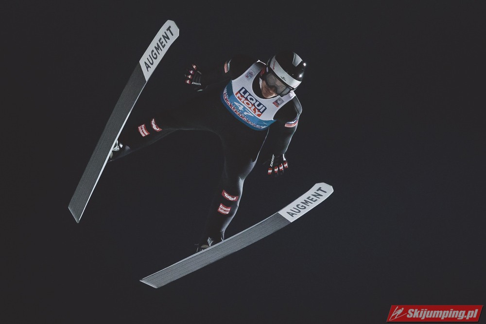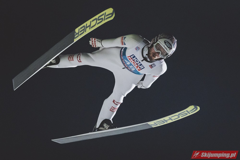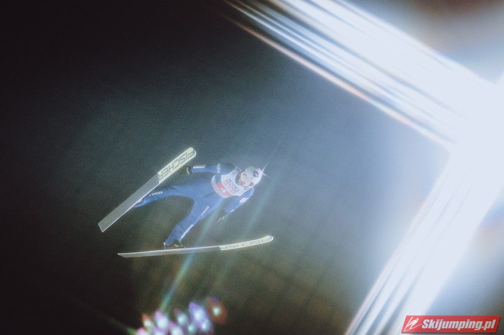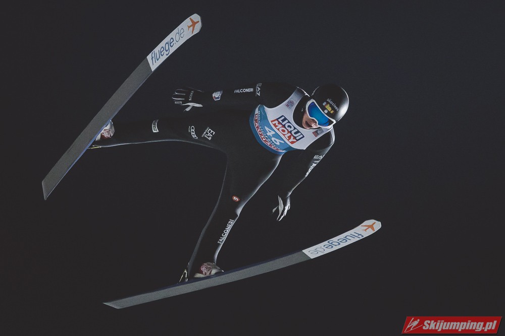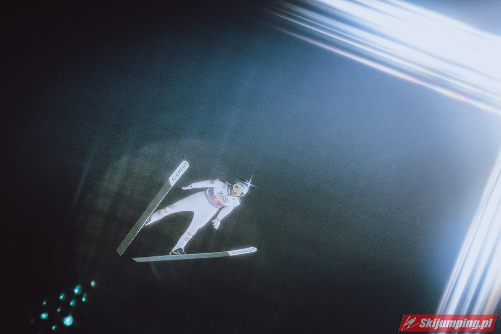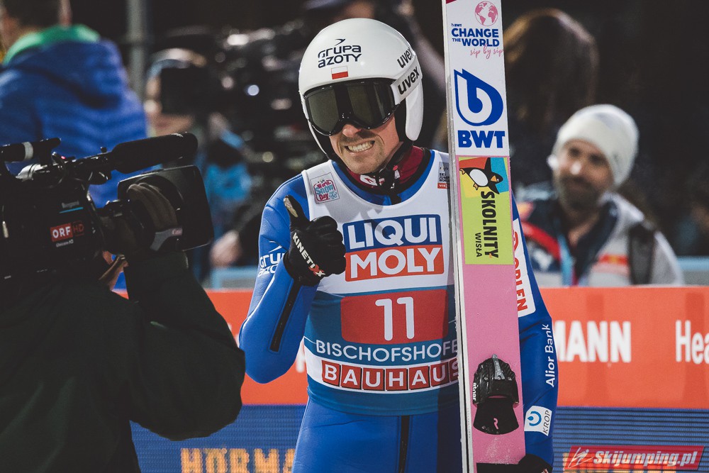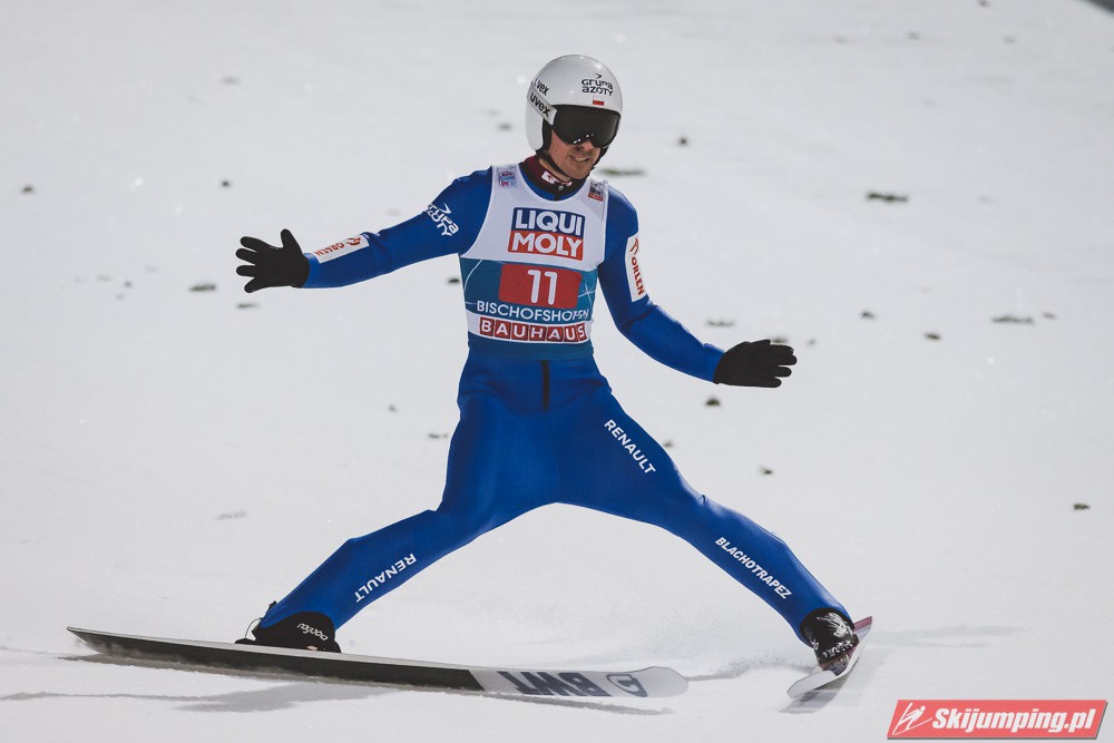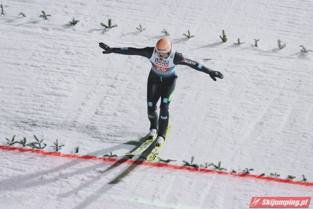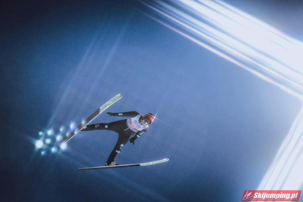 Myślę że jego skok nie był ani centa słabszy jakościowo niż Laniska. Ciężkie warunki zrobiły te 3,8 punktu różnicy. Co niestety będzie ciężko odrobić, jeśli Dawid w drugiej serii nie będzie miał dużo lepszych warunków od Słoweńca. Ważne żeby przynajmniej podium było.