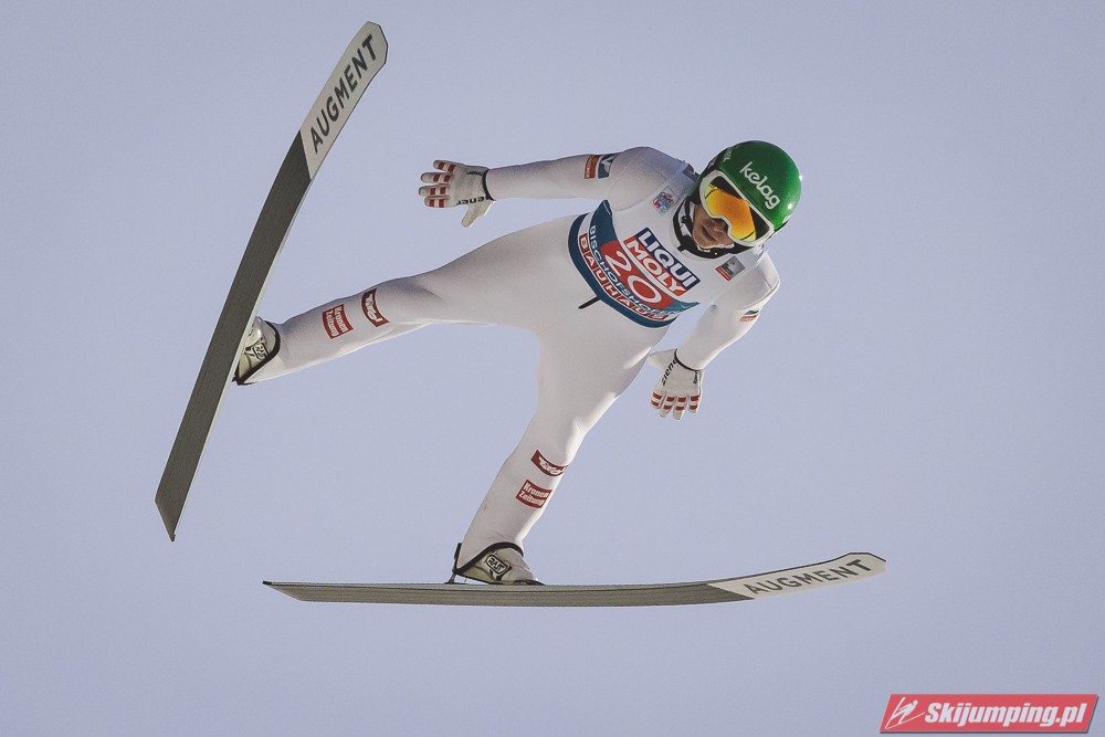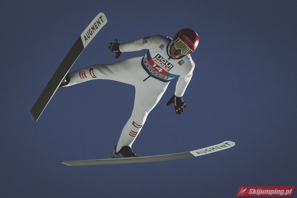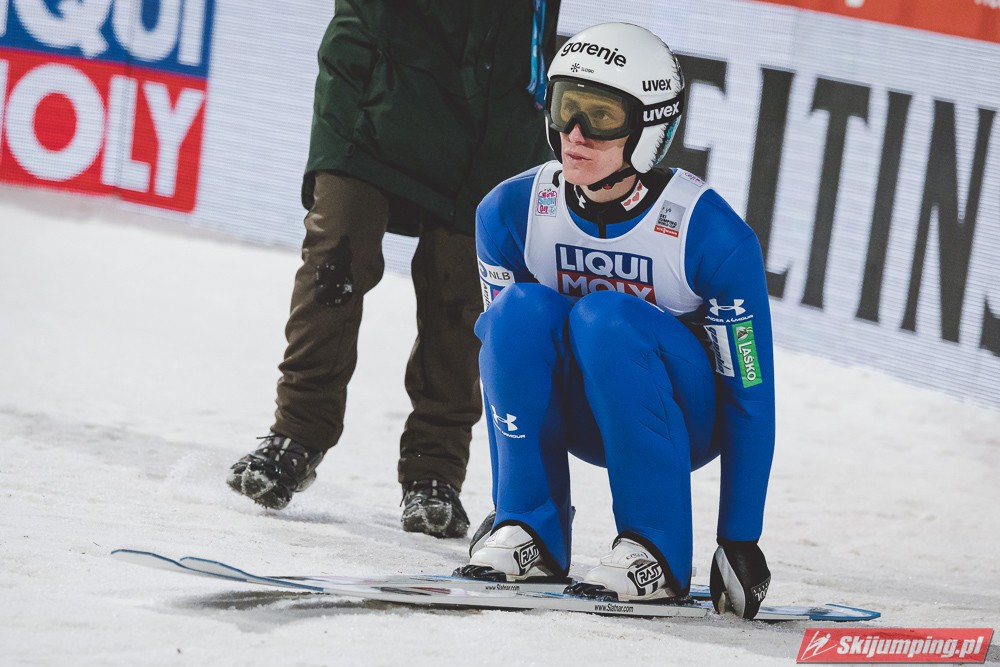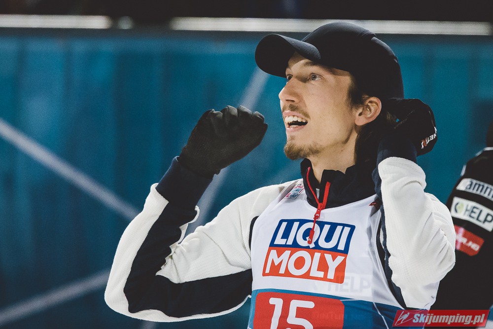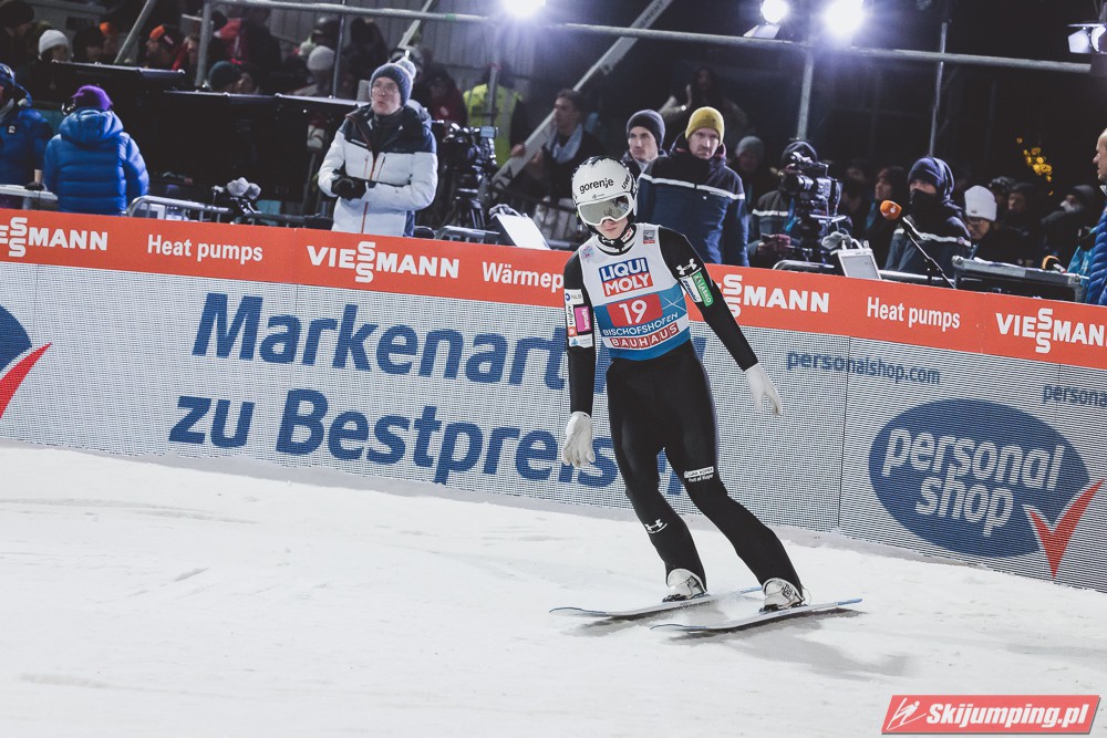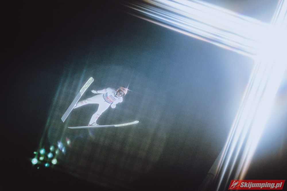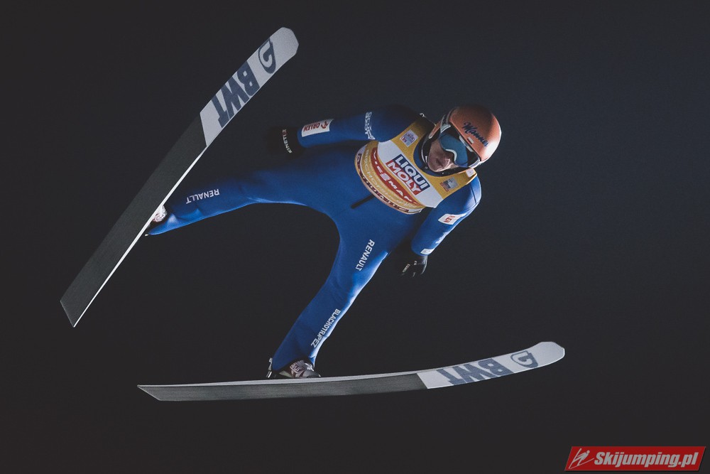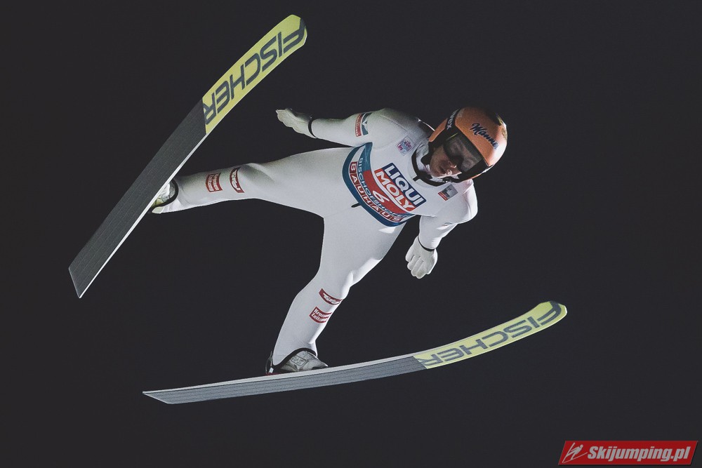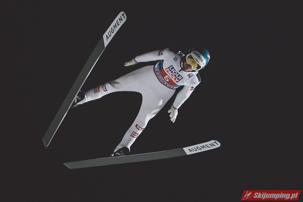 Myślę że jego skok nie był ani centa słabszy jakościowo niż Laniska. Ciężkie warunki zrobiły te 3,8 punktu różnicy. Co niestety będzie ciężko odrobić, jeśli Dawid w drugiej serii nie będzie miał dużo lepszych warunków od Słoweńca. Ważne żeby przynajmniej podium było.