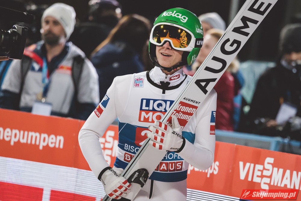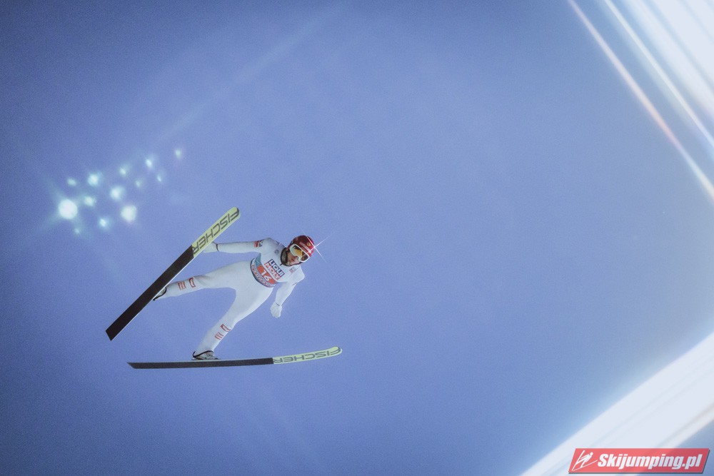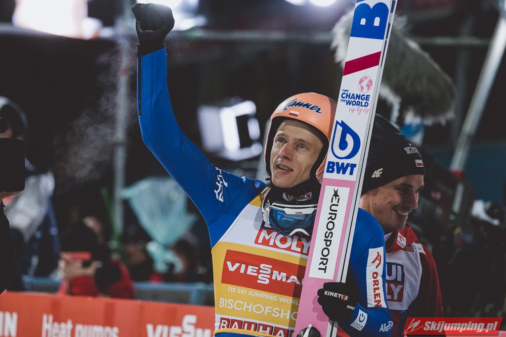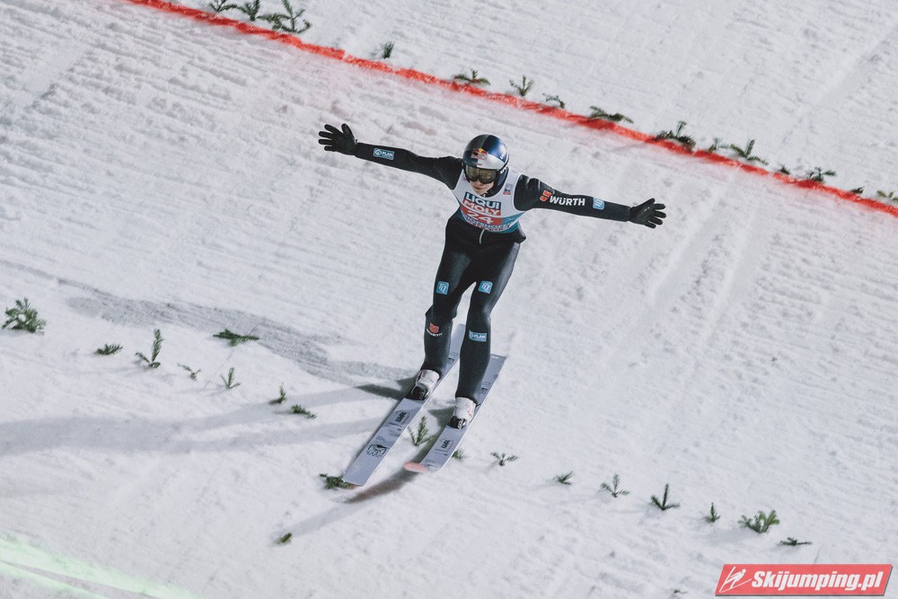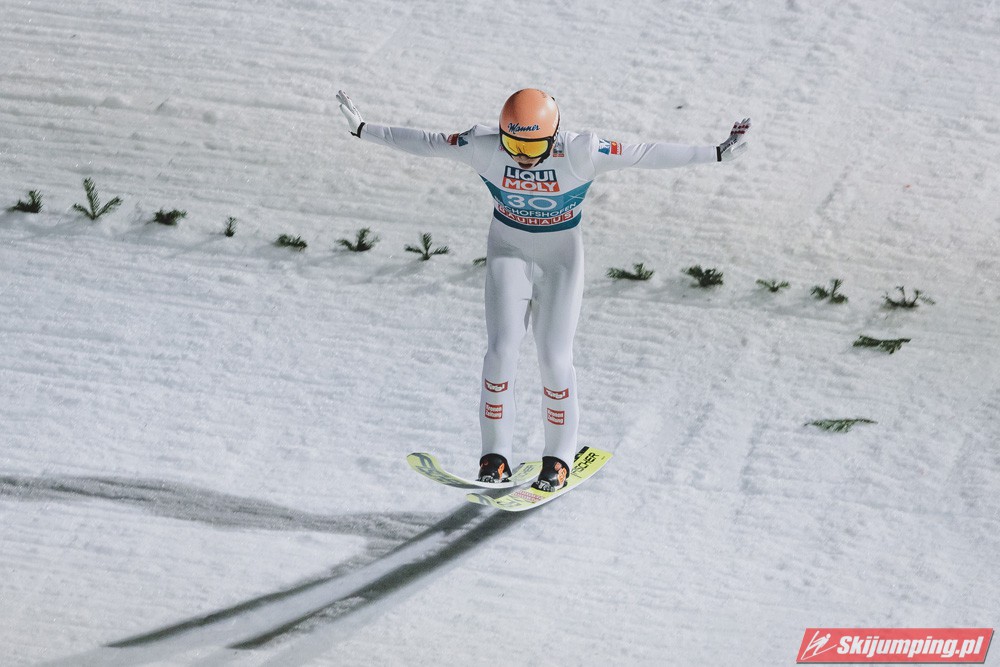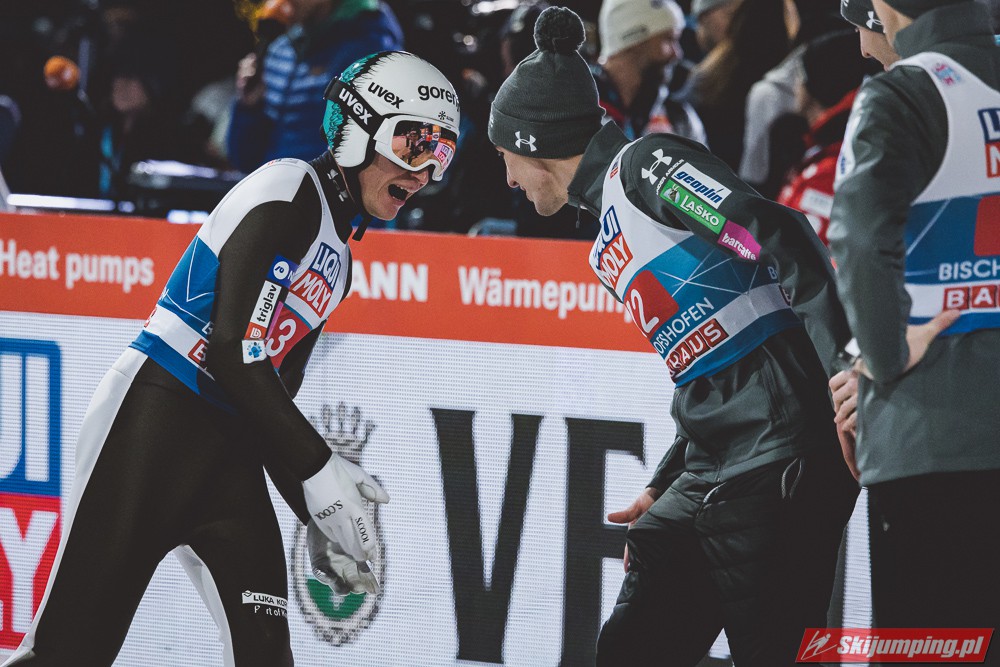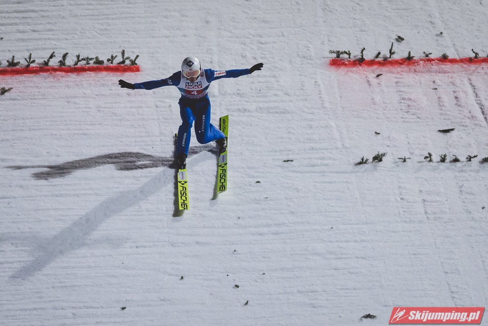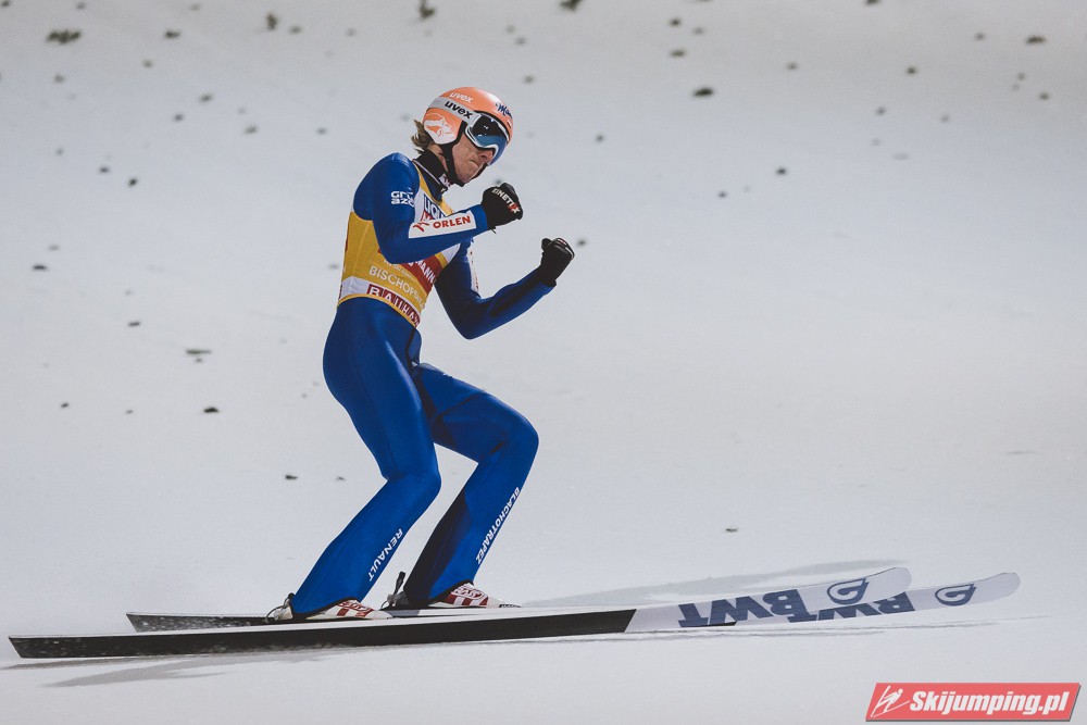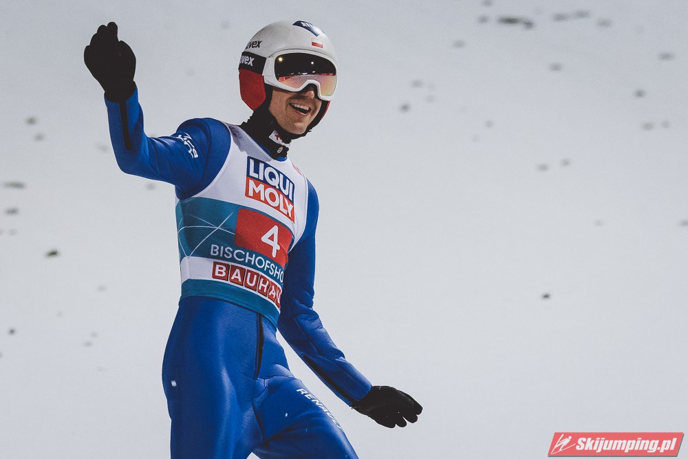 Myślę że jego skok nie był ani centa słabszy jakościowo niż Laniska. Ciężkie warunki zrobiły te 3,8 punktu różnicy. Co niestety będzie ciężko odrobić, jeśli Dawid w drugiej serii nie będzie miał dużo lepszych warunków od Słoweńca. Ważne żeby przynajmniej podium było.