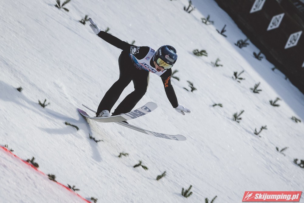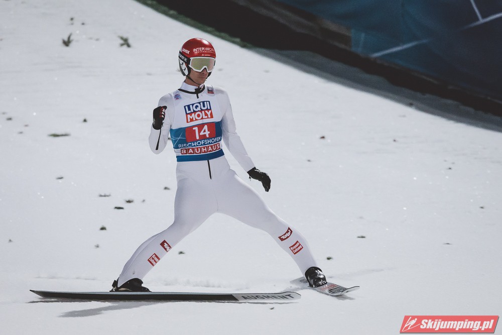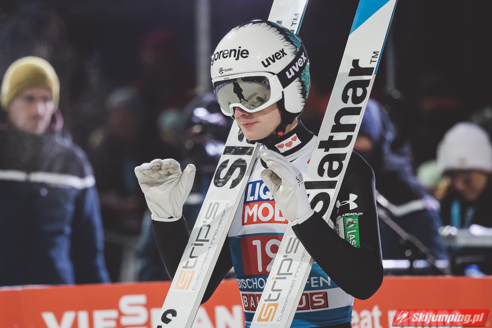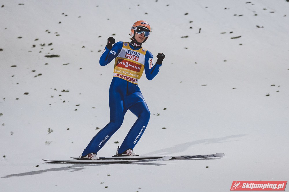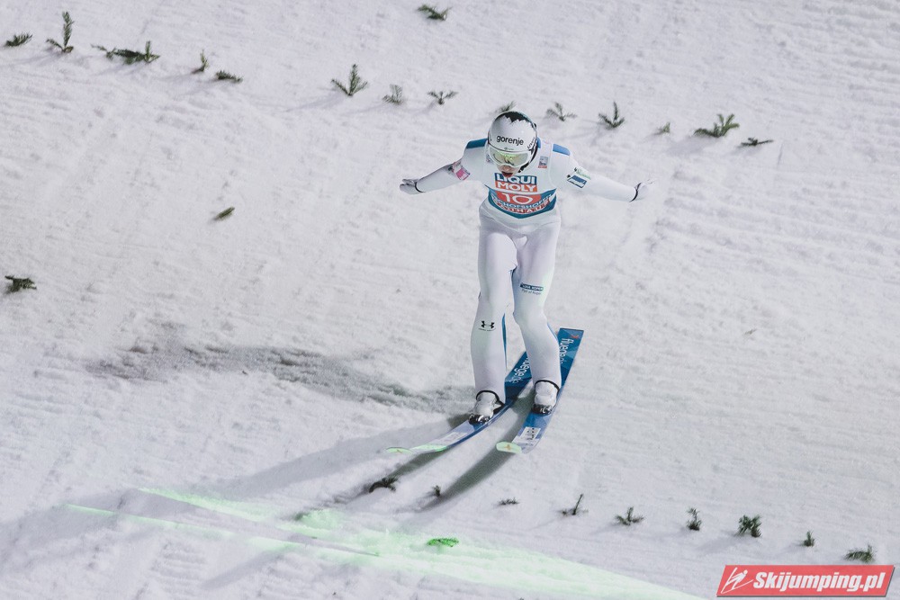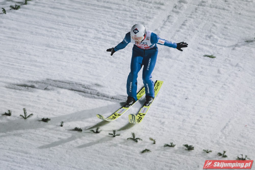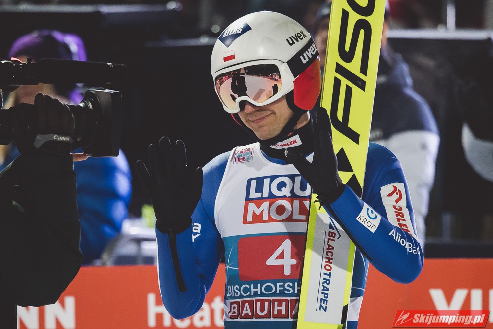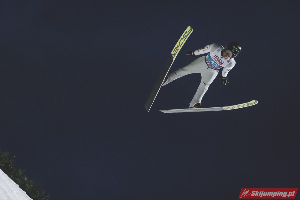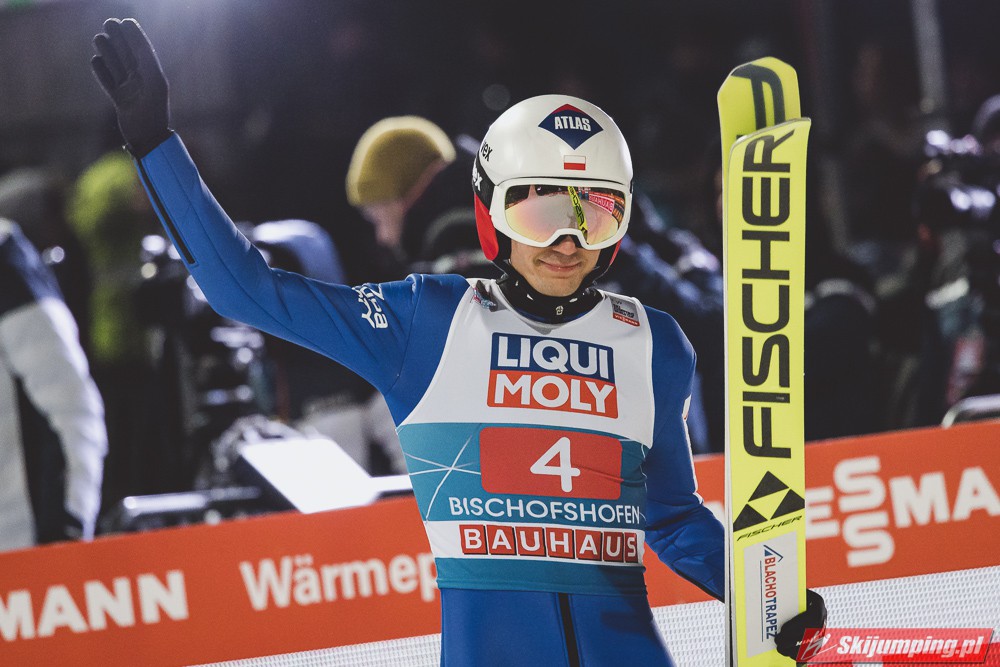 Myślę że jego skok nie był ani centa słabszy jakościowo niż Laniska. Ciężkie warunki zrobiły te 3,8 punktu różnicy. Co niestety będzie ciężko odrobić, jeśli Dawid w drugiej serii nie będzie miał dużo lepszych warunków od Słoweńca. Ważne żeby przynajmniej podium było.