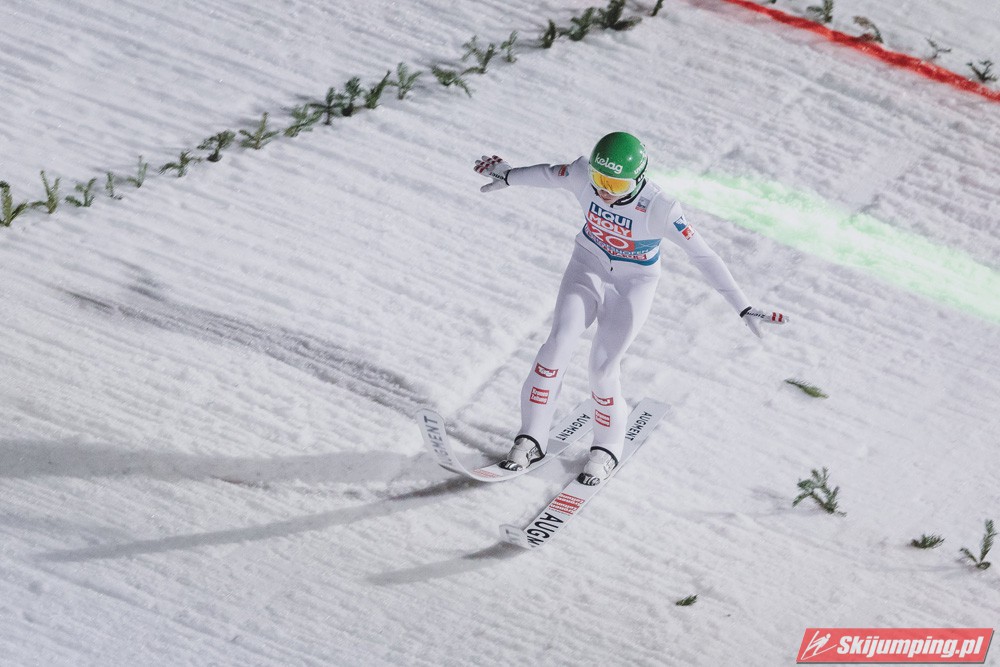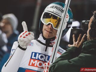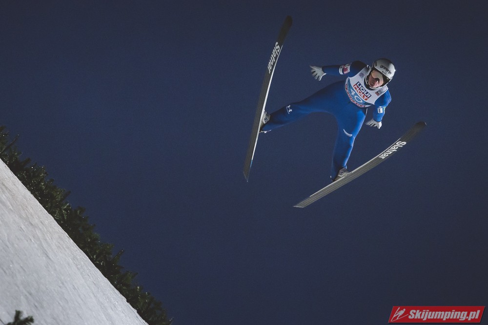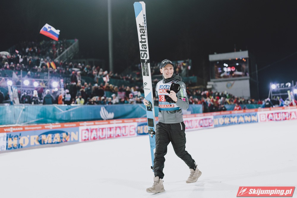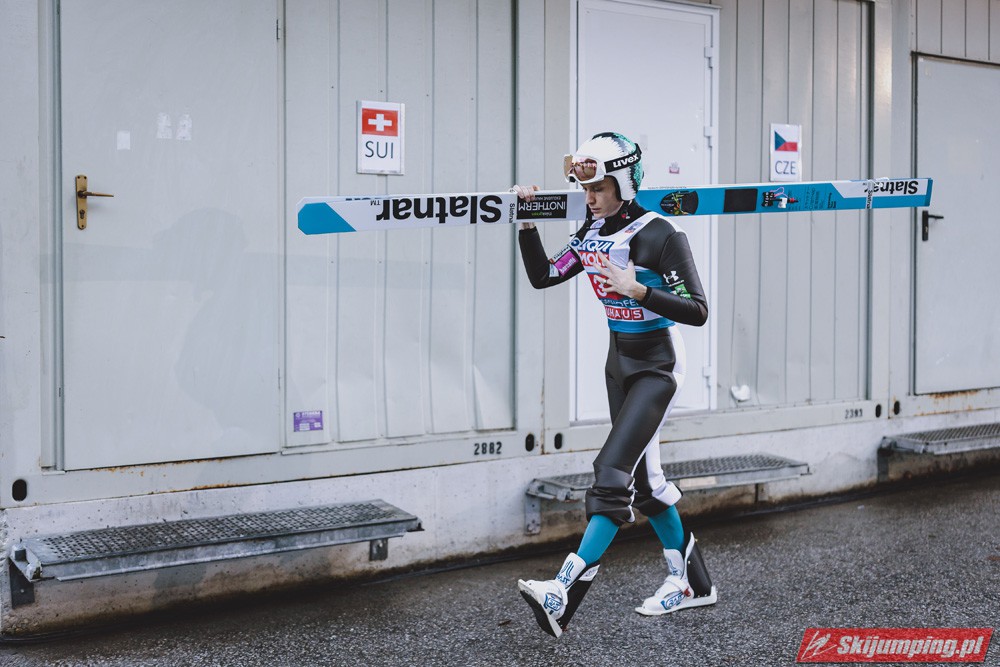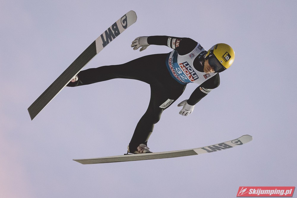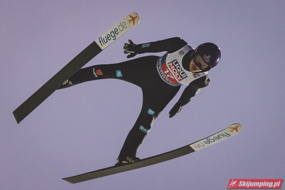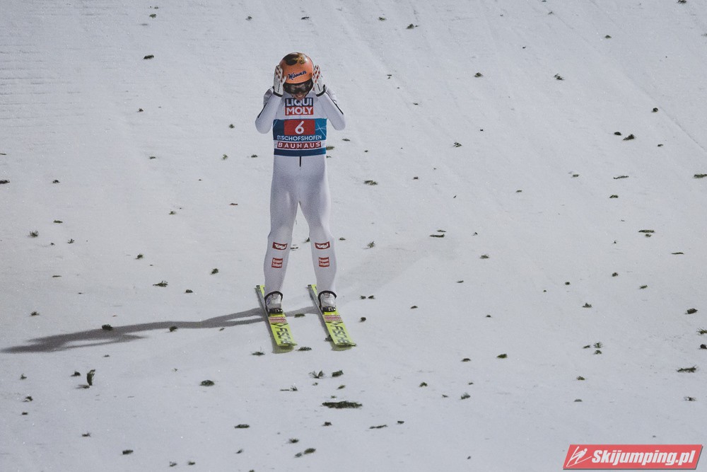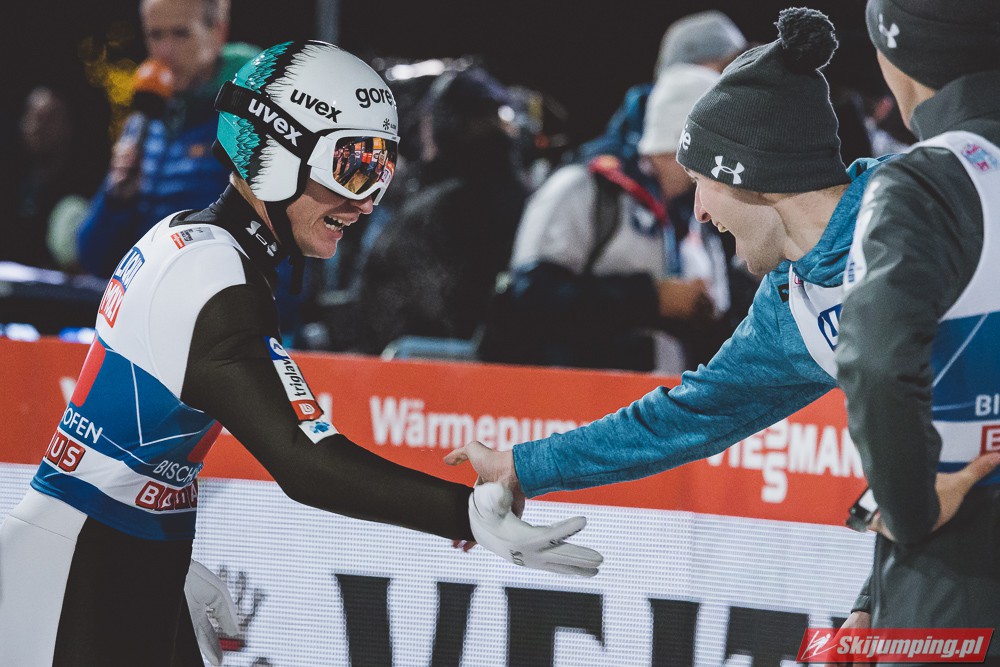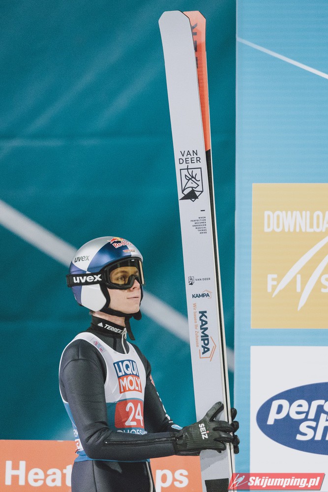 Myślę że jego skok nie był ani centa słabszy jakościowo niż Laniska. Ciężkie warunki zrobiły te 3,8 punktu różnicy. Co niestety będzie ciężko odrobić, jeśli Dawid w drugiej serii nie będzie miał dużo lepszych warunków od Słoweńca. Ważne żeby przynajmniej podium było.