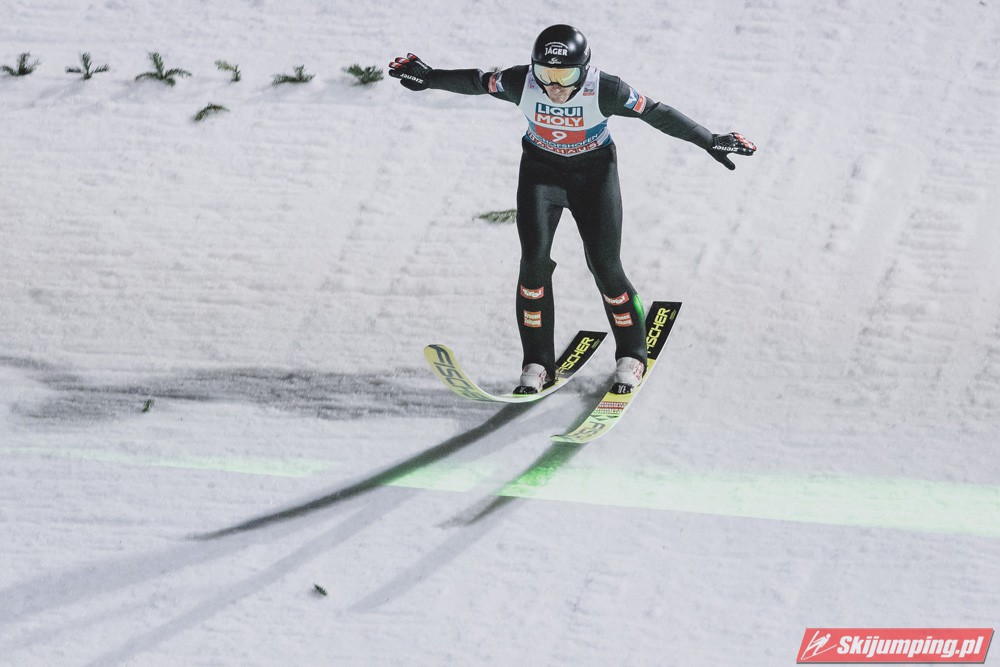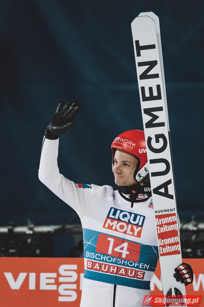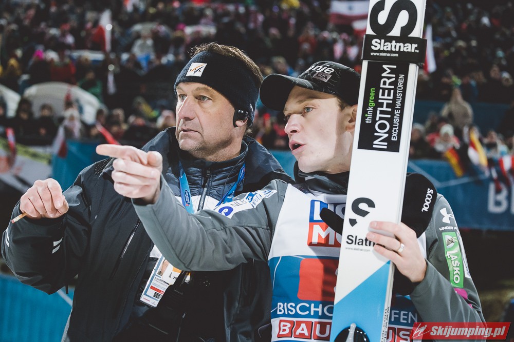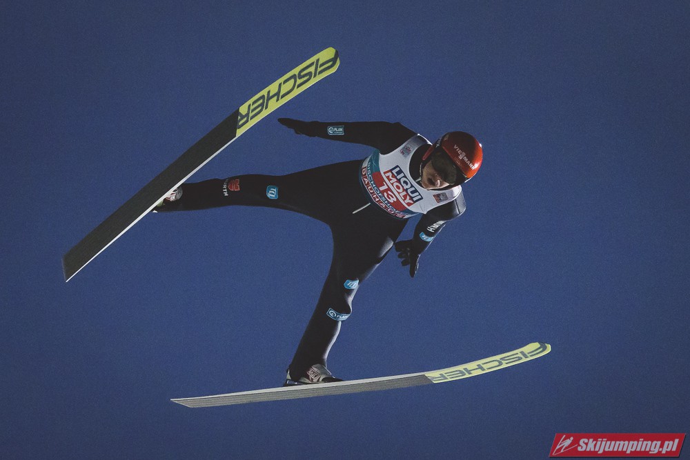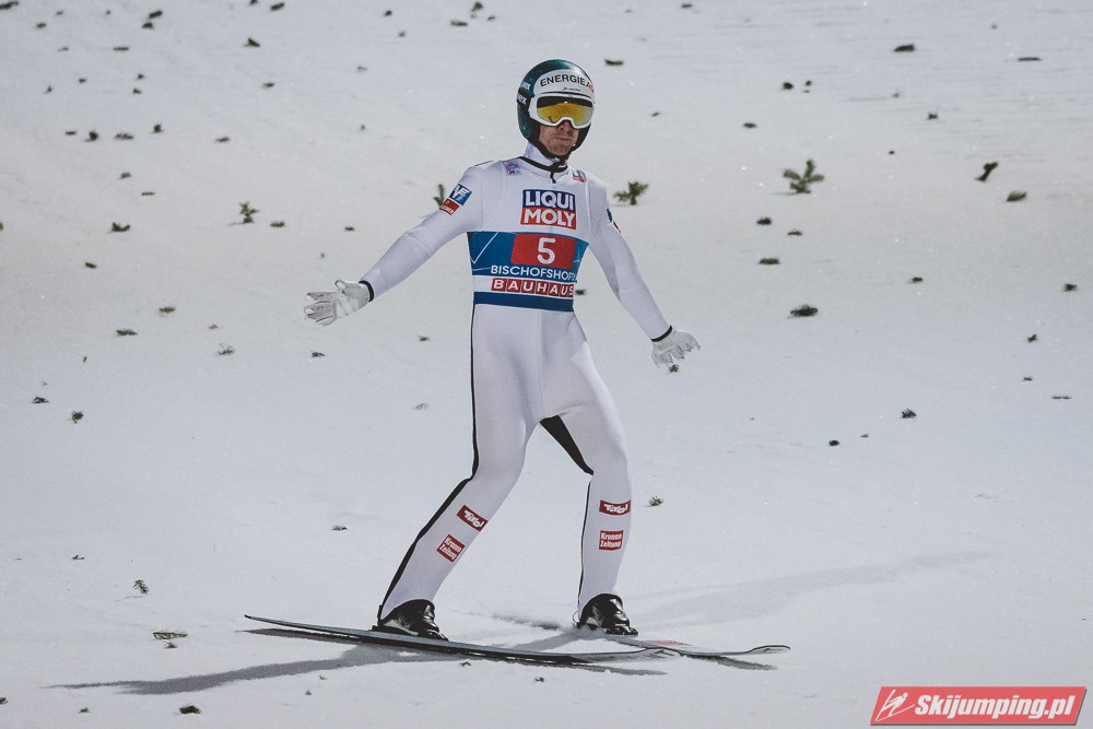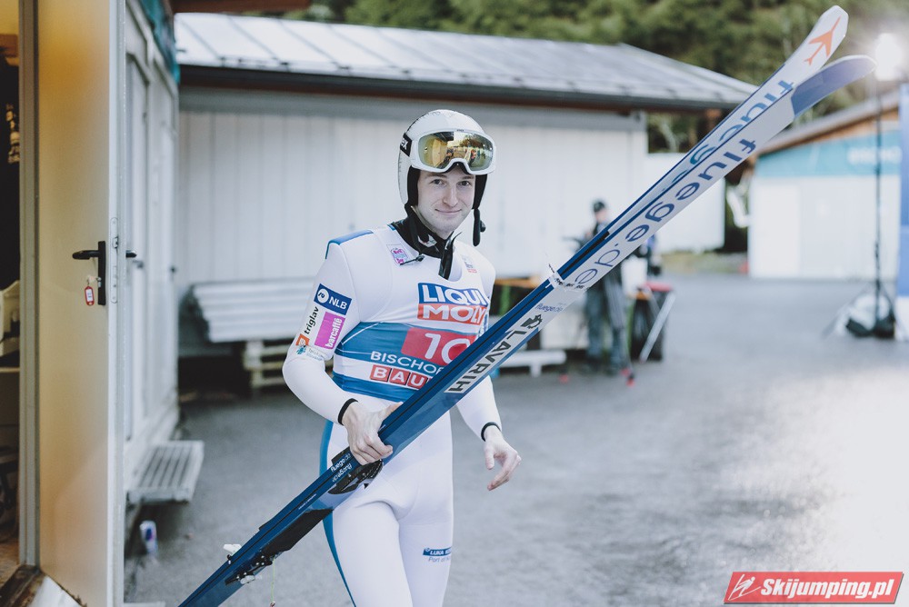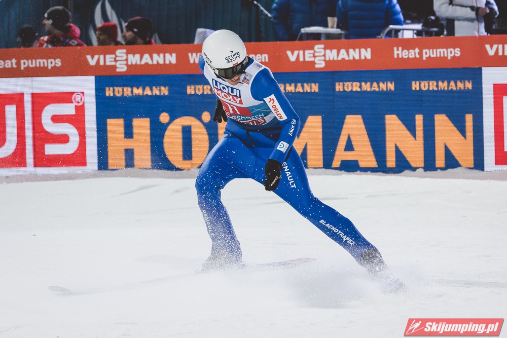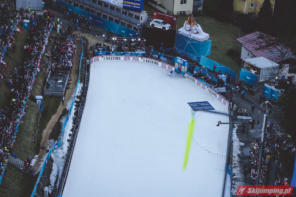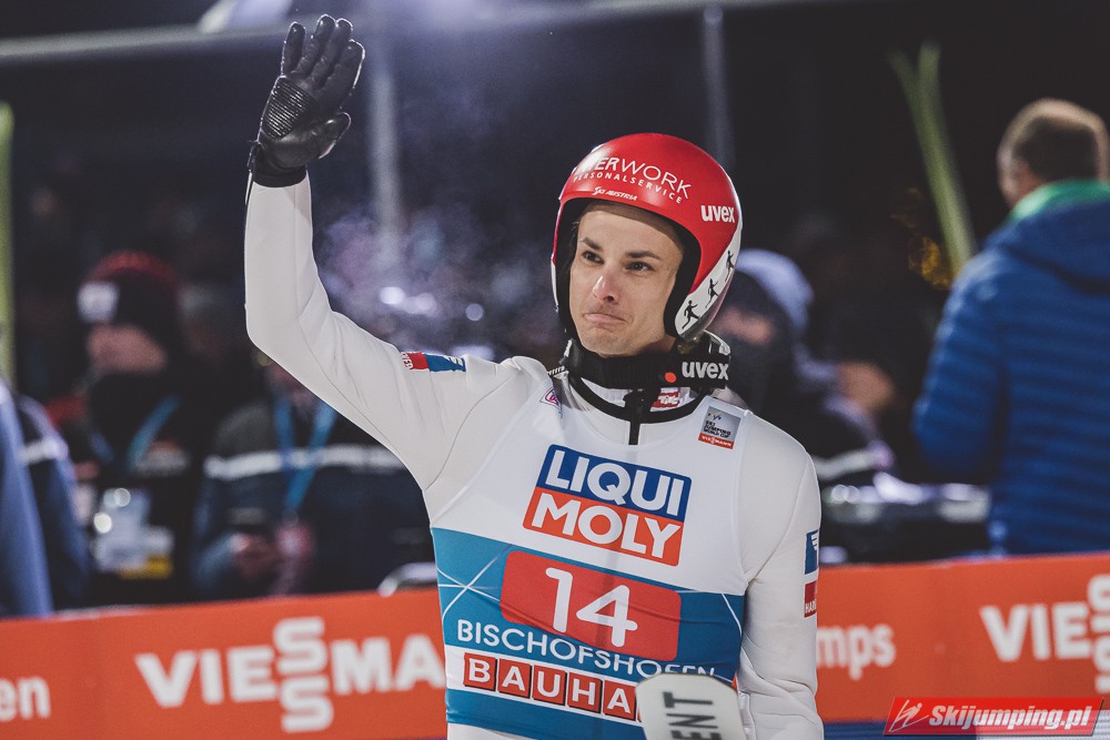 Myślę że jego skok nie był ani centa słabszy jakościowo niż Laniska. Ciężkie warunki zrobiły te 3,8 punktu różnicy. Co niestety będzie ciężko odrobić, jeśli Dawid w drugiej serii nie będzie miał dużo lepszych warunków od Słoweńca. Ważne żeby przynajmniej podium było.