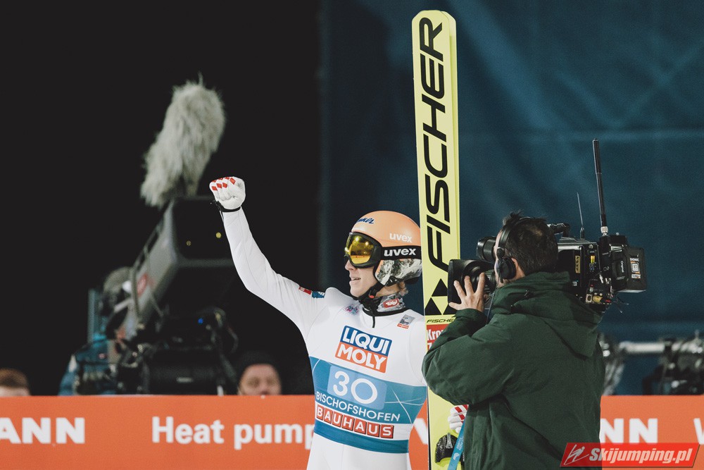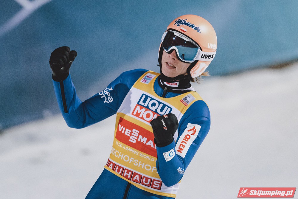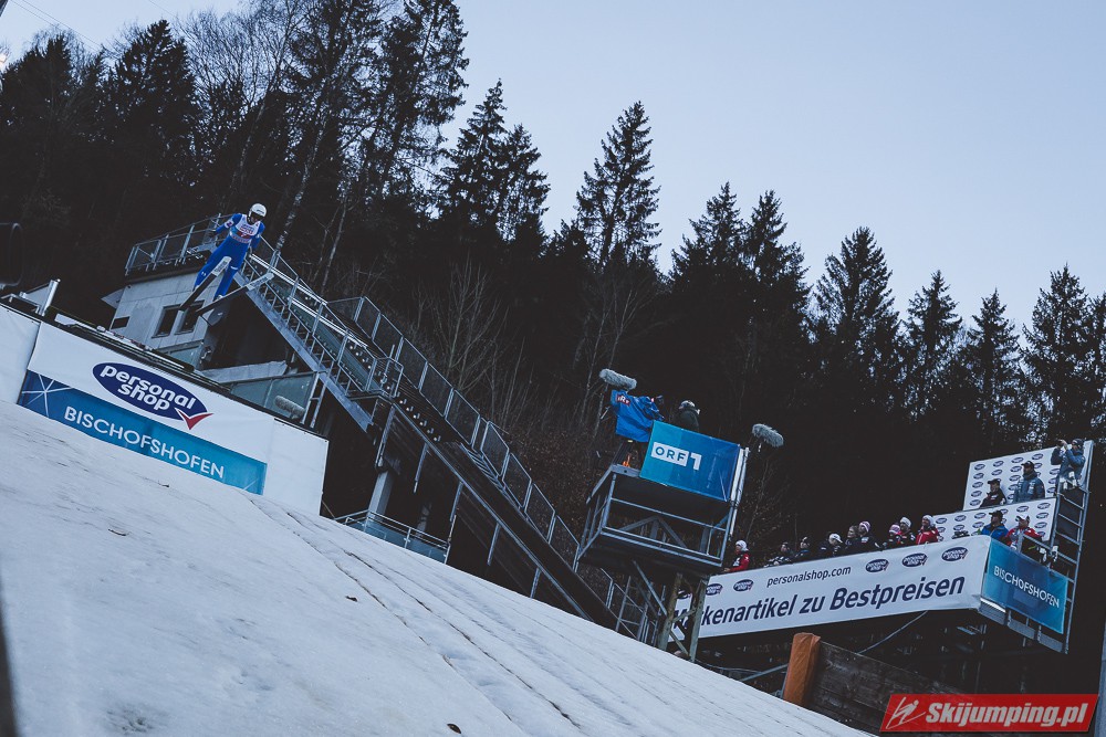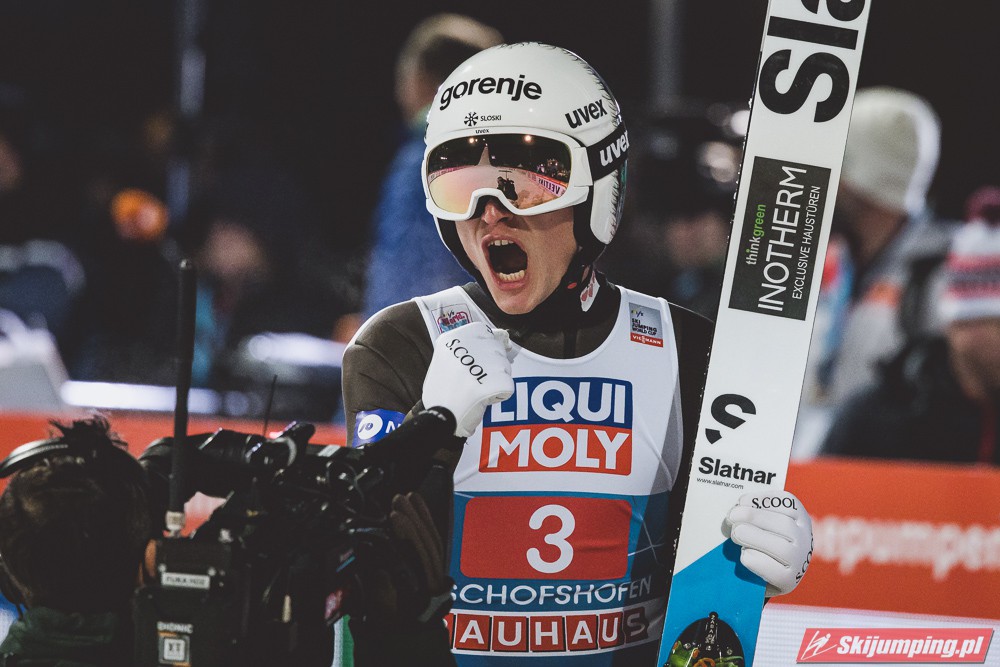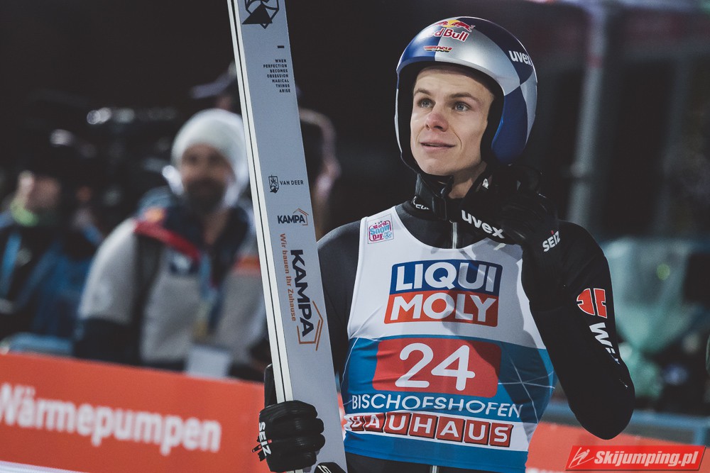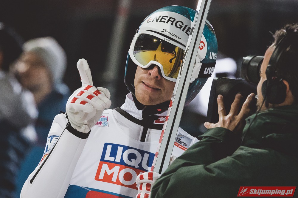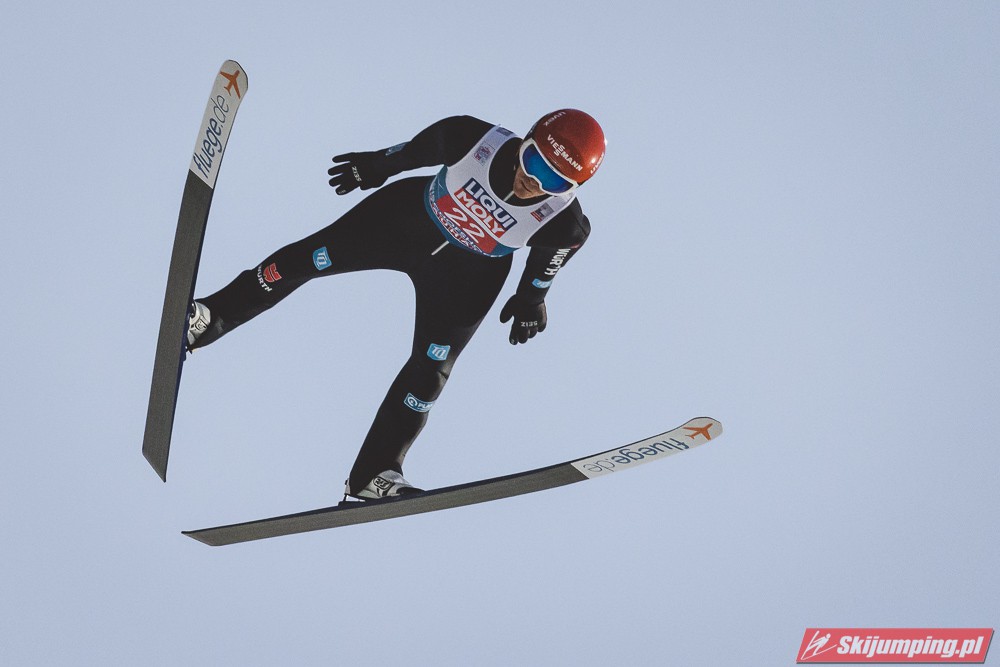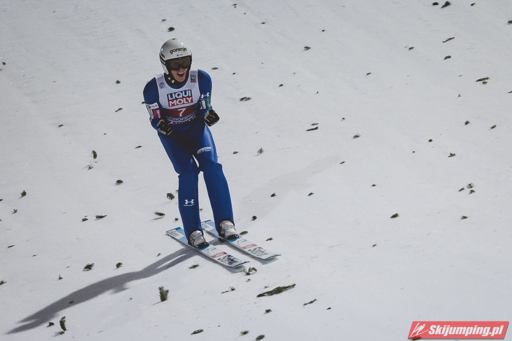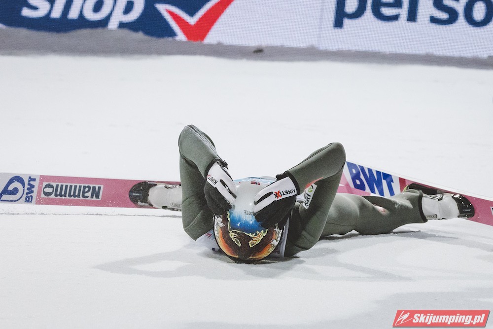 Myślę że jego skok nie był ani centa słabszy jakościowo niż Laniska. Ciężkie warunki zrobiły te 3,8 punktu różnicy. Co niestety będzie ciężko odrobić, jeśli Dawid w drugiej serii nie będzie miał dużo lepszych warunków od Słoweńca. Ważne żeby przynajmniej podium było.