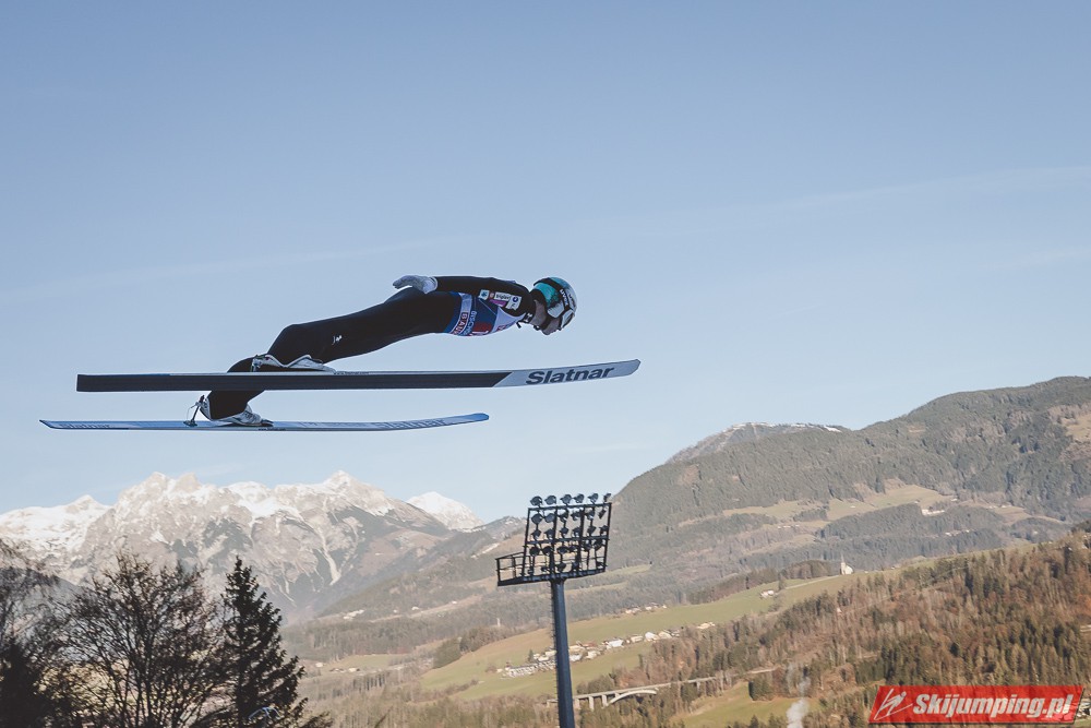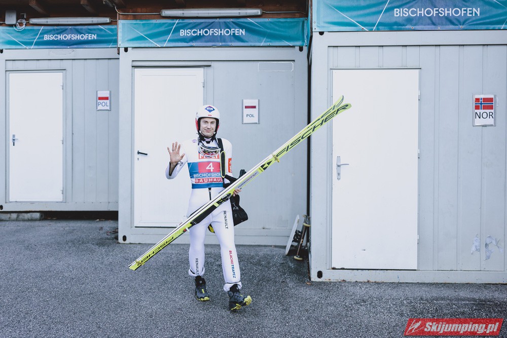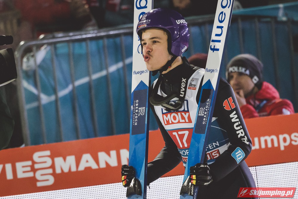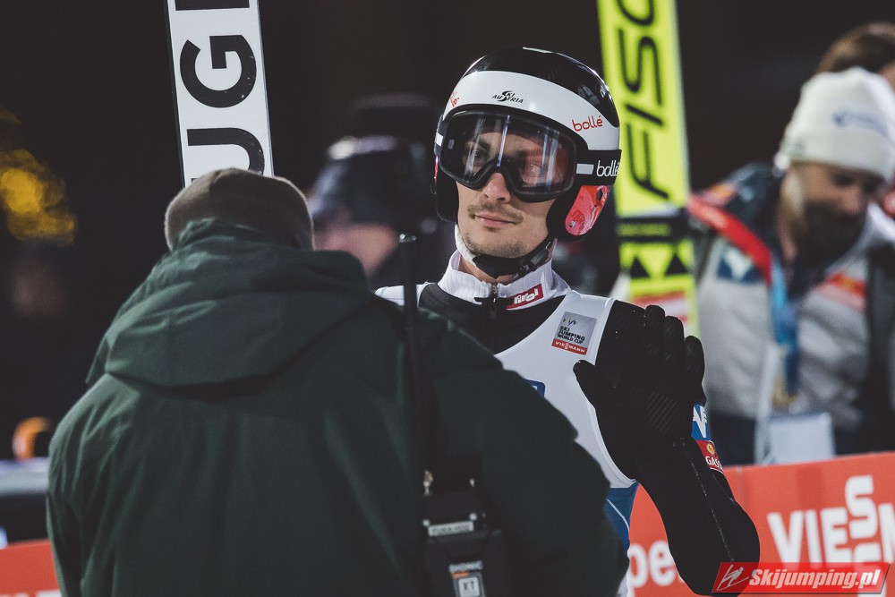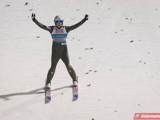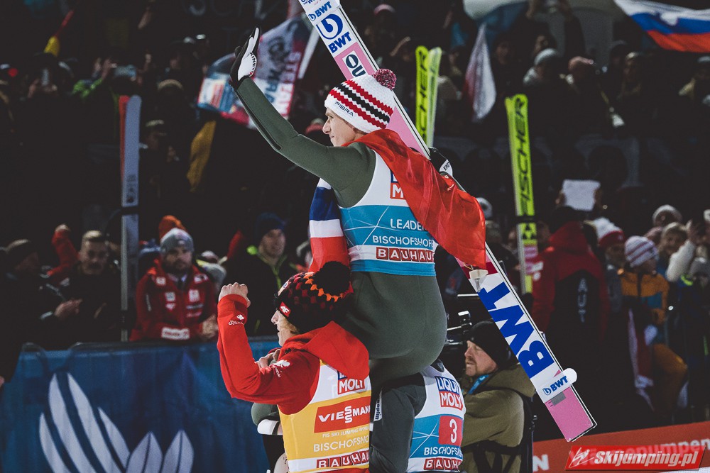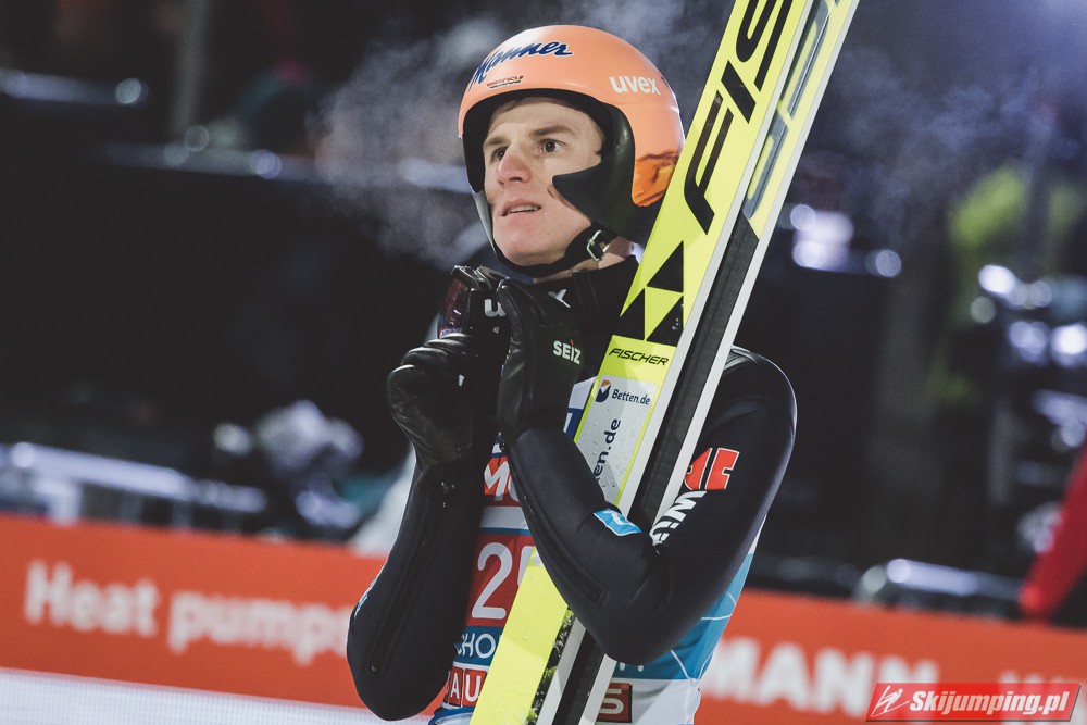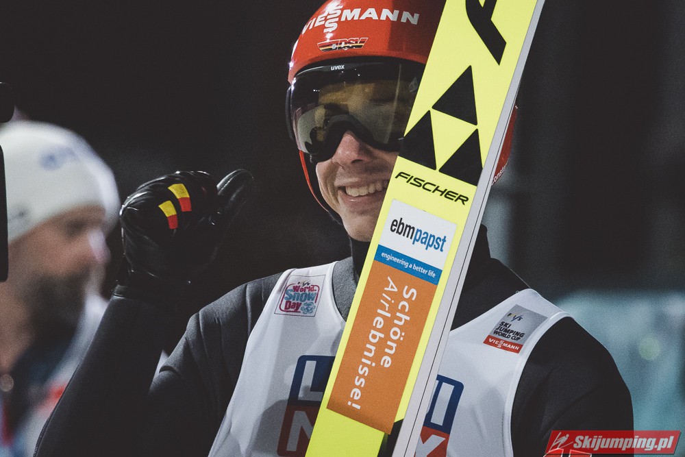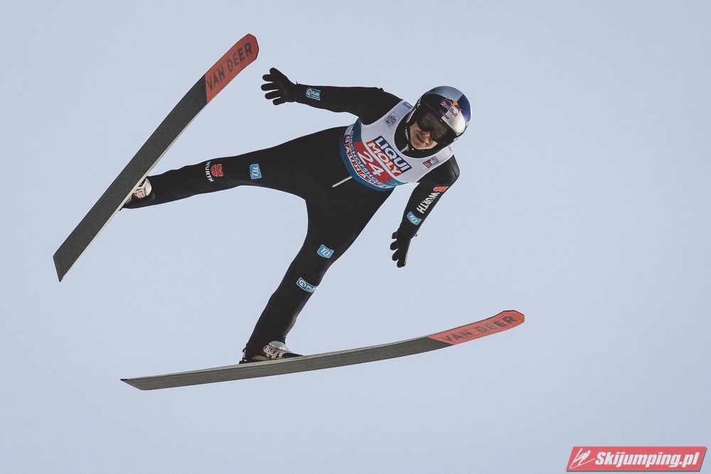 Myślę że jego skok nie był ani centa słabszy jakościowo niż Laniska. Ciężkie warunki zrobiły te 3,8 punktu różnicy. Co niestety będzie ciężko odrobić, jeśli Dawid w drugiej serii nie będzie miał dużo lepszych warunków od Słoweńca. Ważne żeby przynajmniej podium było.