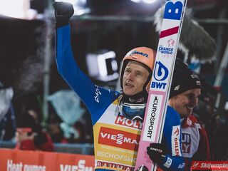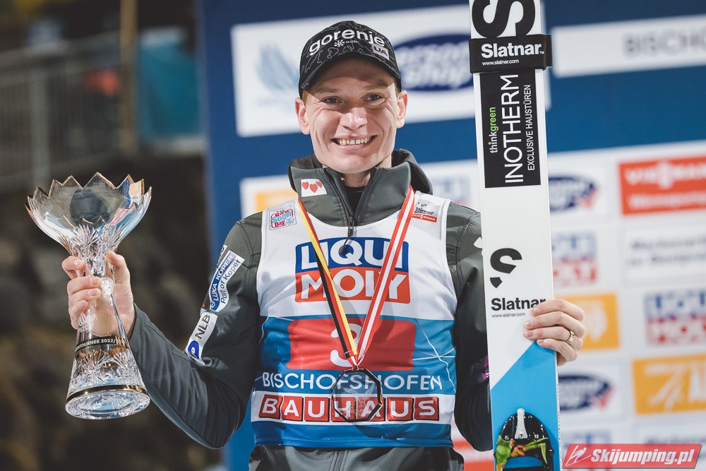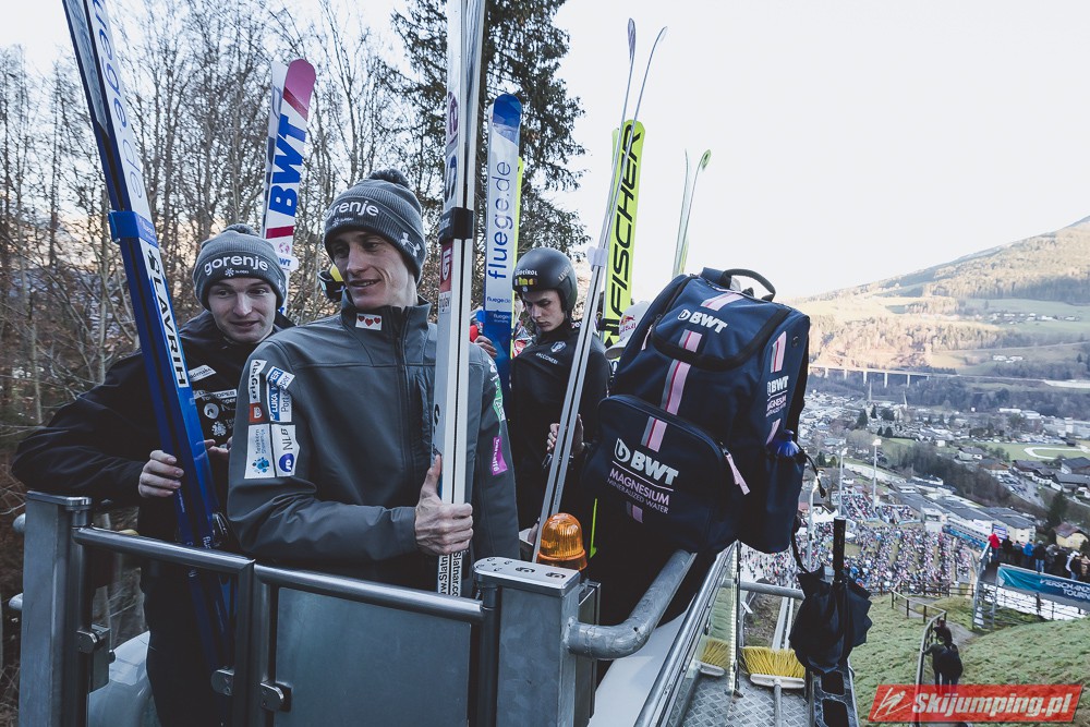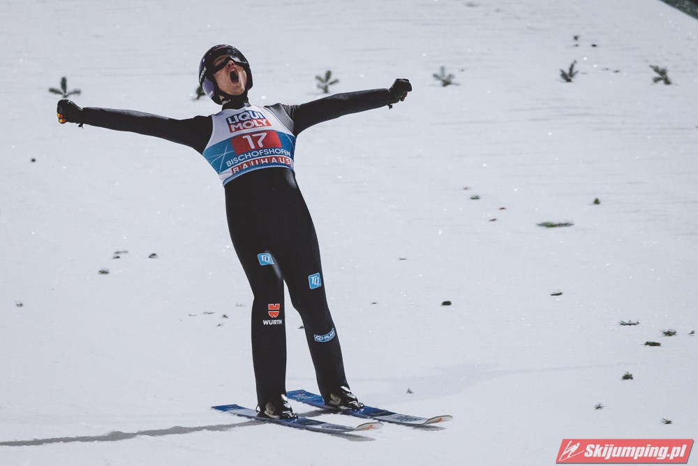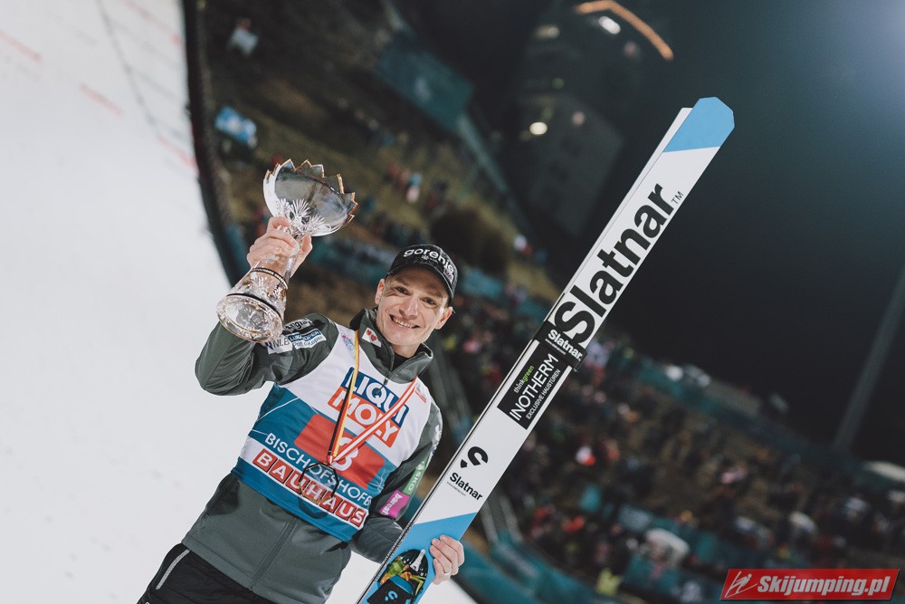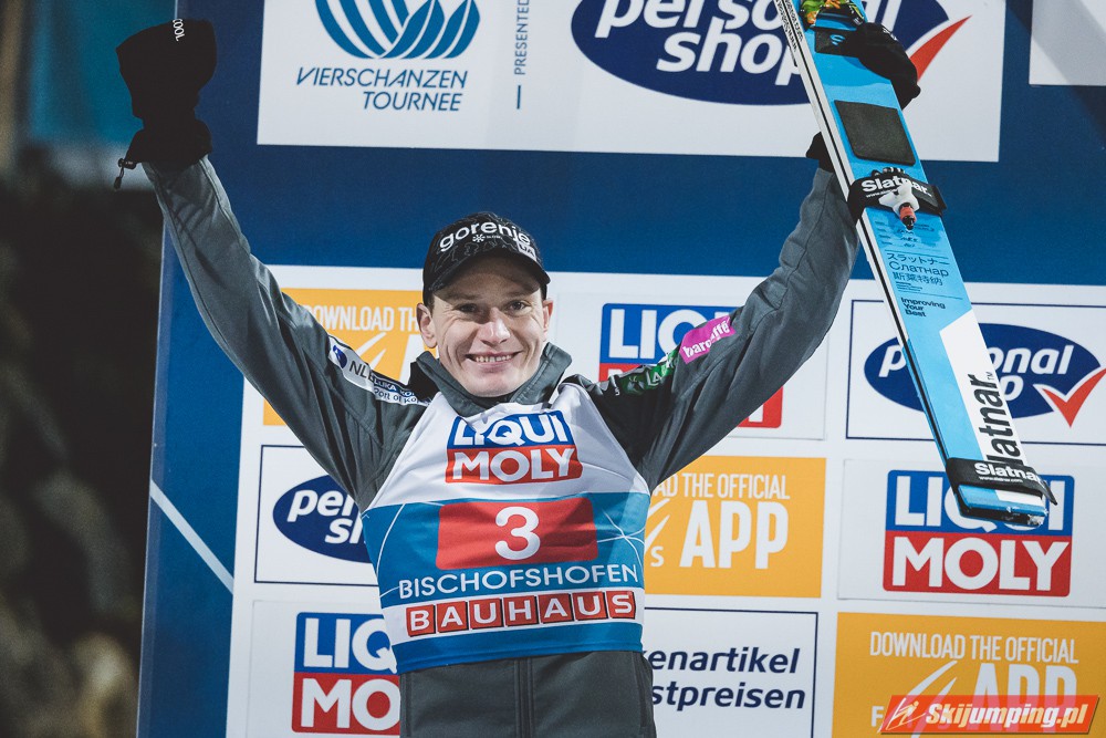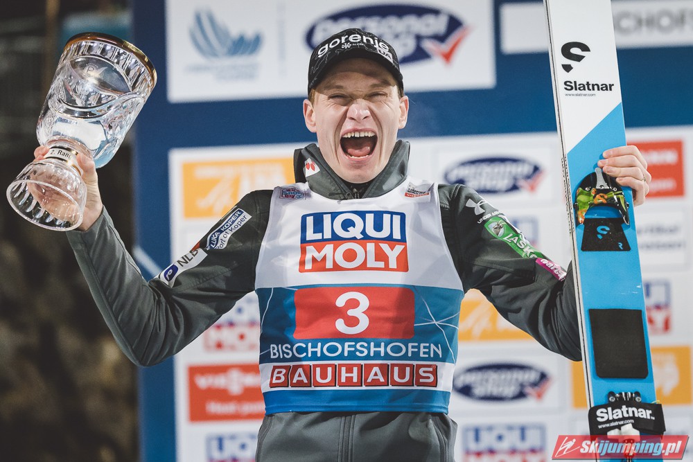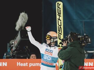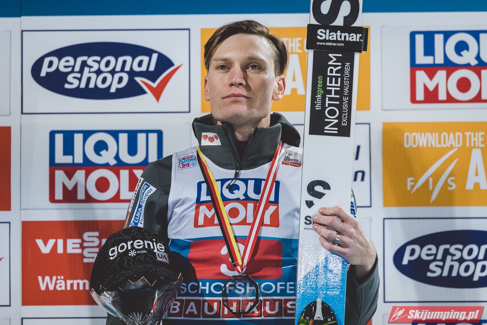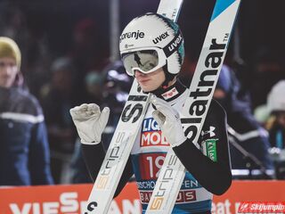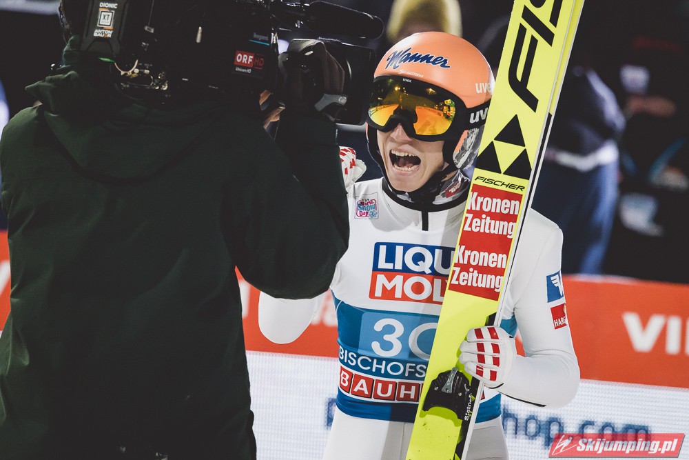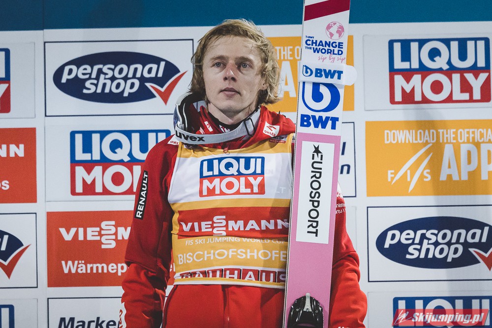 Myślę że jego skok nie był ani centa słabszy jakościowo niż Laniska. Ciężkie warunki zrobiły te 3,8 punktu różnicy. Co niestety będzie ciężko odrobić, jeśli Dawid w drugiej serii nie będzie miał dużo lepszych warunków od Słoweńca. Ważne żeby przynajmniej podium było.