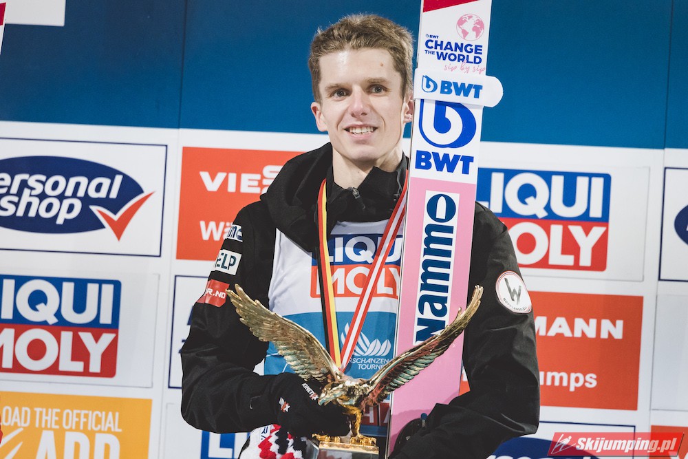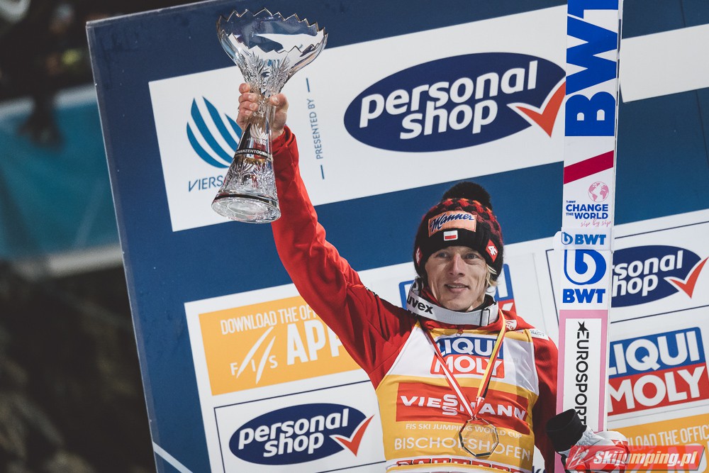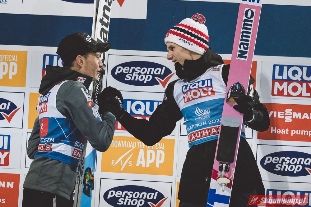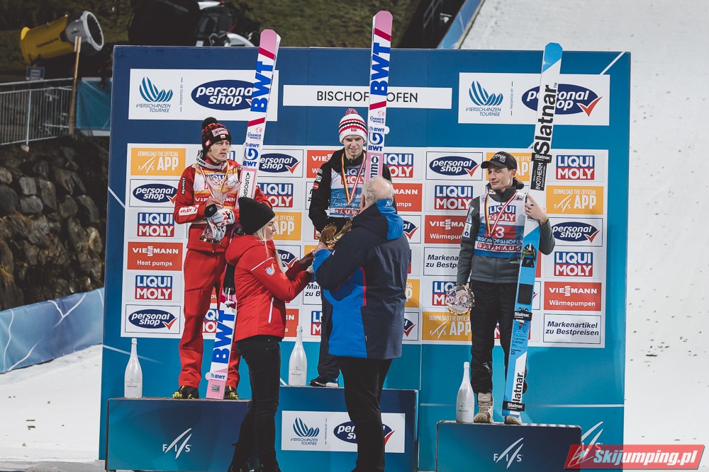 Dawid Kubacki po raz trzydziesty trzeci w karierze, dziesiąty w obecnym sezonie, zaś ósmy z rzędu stanął na podium zawodów Pucharu Świata. Dzisiejsza trzecia lokata lidera klasyfikacji generalnej to jubileuszowe, 250. polskie podium w zawodach indywidualnych PŚ oraz 50. polskie "pudło" w konkursach Turnieju Czterech Skoczni. Pod względem liczby miejsc w czołowej trójce zawodów zaliczanych do TCS, Kubacki (13 podiów) wyprzedził dziś Adama Małysza i Kamila Stocha (po 12).