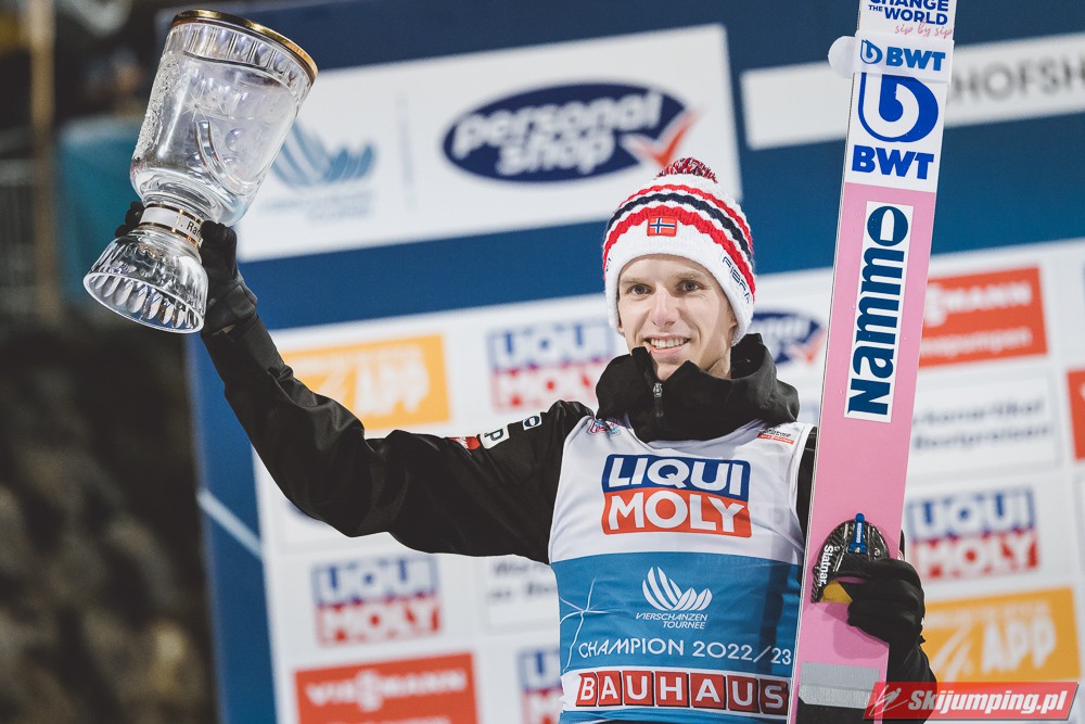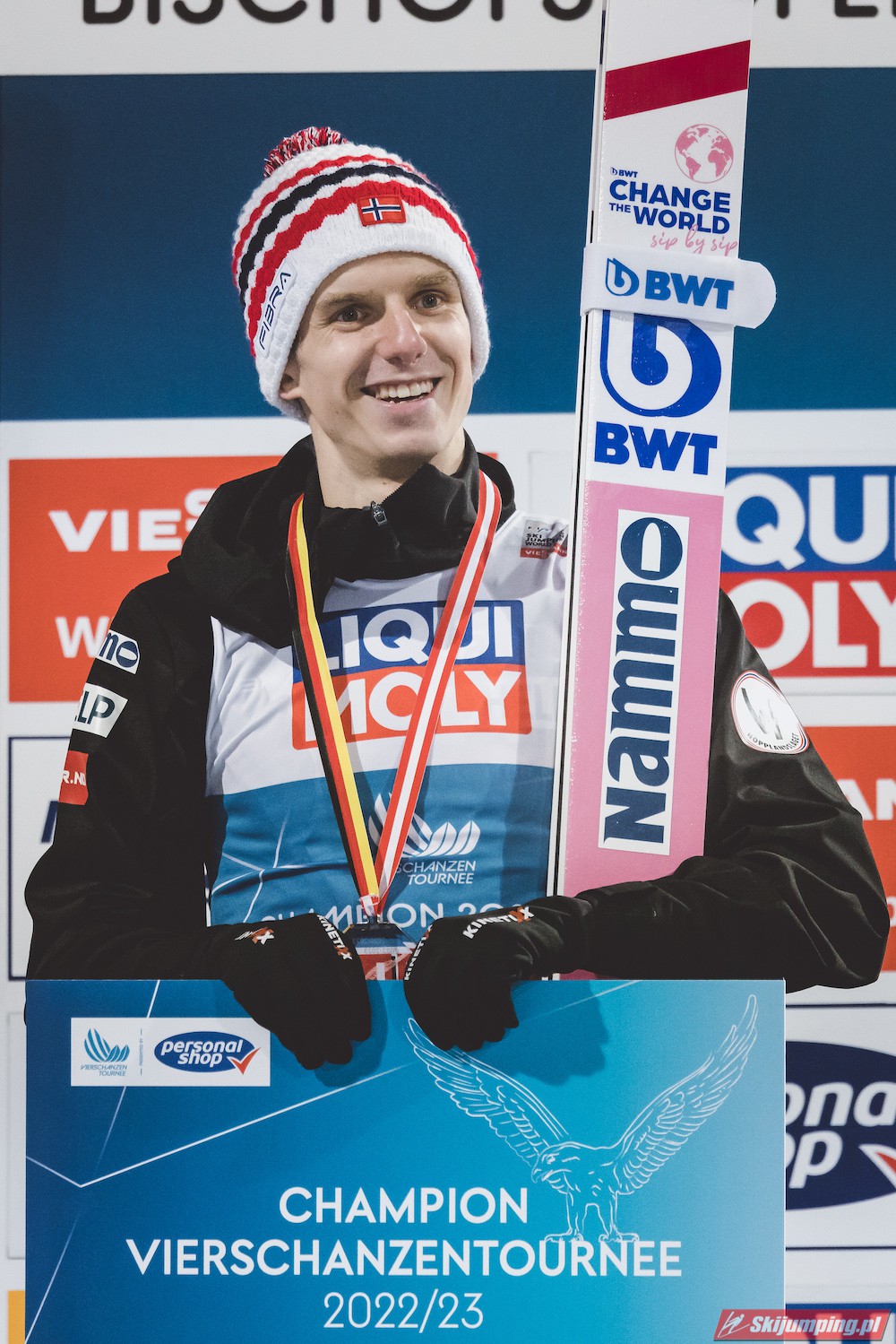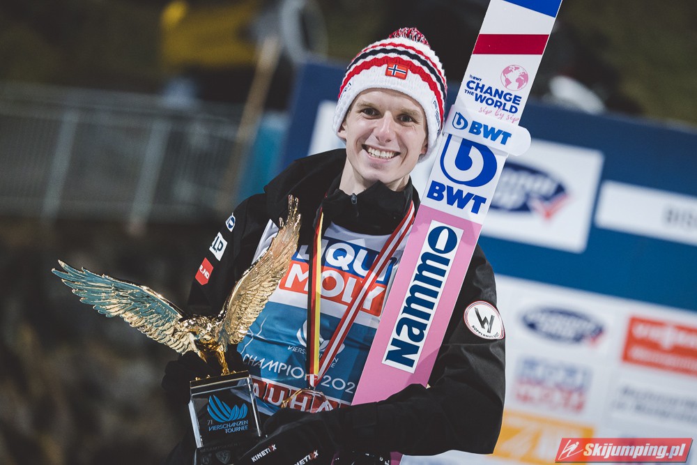 Po szesnastu latach przerwy Norwegia świętuje w Turnieju Czterech Skoczni! Halvor Egner Granerud przypieczętował triumf w 71. edycji niemiecko-austriackiej imprezy, odnosząc zwycięstwo w finałowych zawodach w Bischofshofen (HS142). Norweg poszybował na odległość 139,5 m oraz 143,5 m. Drugie miejsce zajął Słoweniec Anze Lanisek, a trzecie - Dawid Kubacki. Polak ukończył cały turniej na drugiej pozycji.