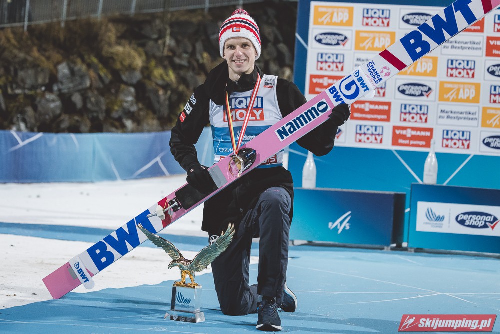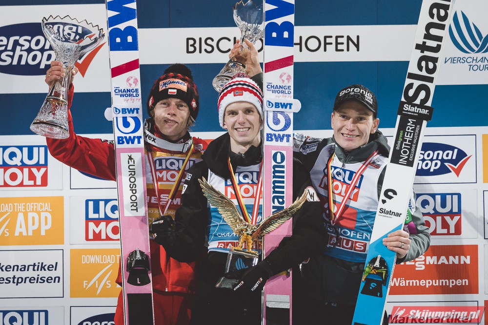 W klasyfikacji generalnej Pucharu Świata prowadzi Dawid Kubacki (930 pkt.) przed Anze Laniskiem (822 pkt.) i Halvorem Egnerem Granerudem (796 pkt.). Piąty jest Piotr Żyła (549 pkt.), a na dziewiąte miejsce awansował Kamil Stoch (265 pkt.).