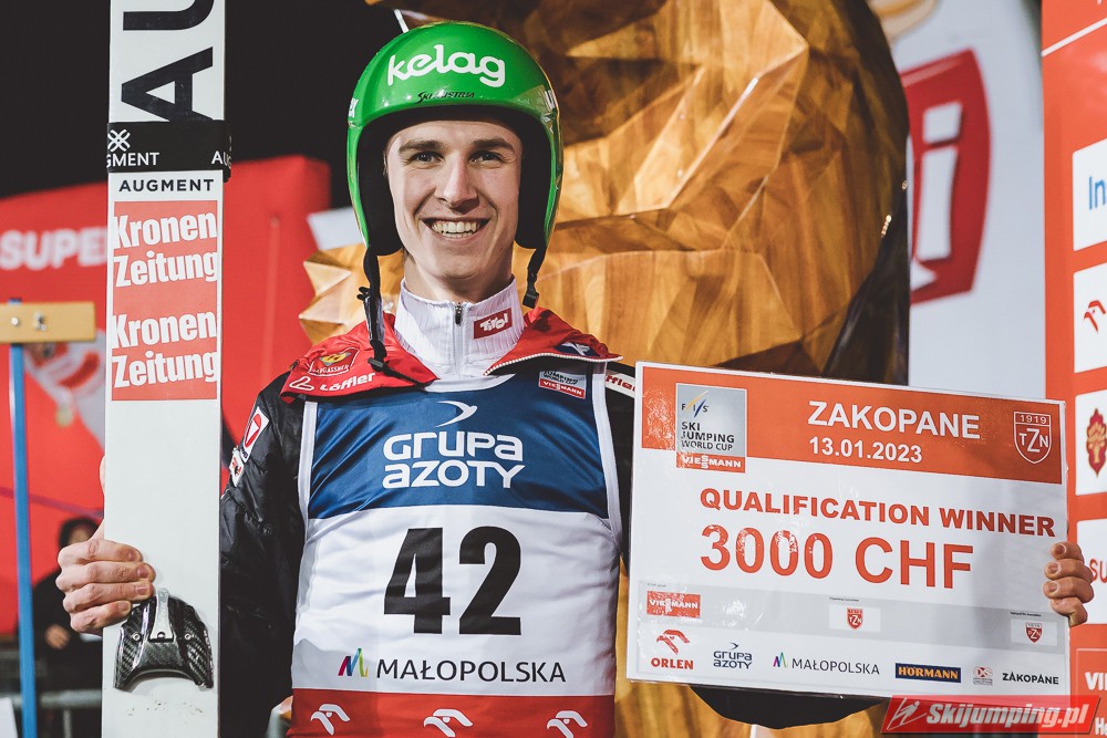 Daniel Tschofenig zwyciężył w piątkowych kwalifikacjach do niedzielnego konkursu indywidualnego Pucharu Świata na Wielkiej Krokwi (HS140) w Zakopanem. Reprezentant Austrii poszybował na odległość 138,5 metra. Drugie miejsce zajął Dawid Kubacki (128 m). Polacy w komplecie awansowali do zawodów.