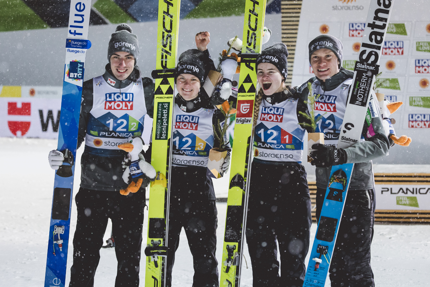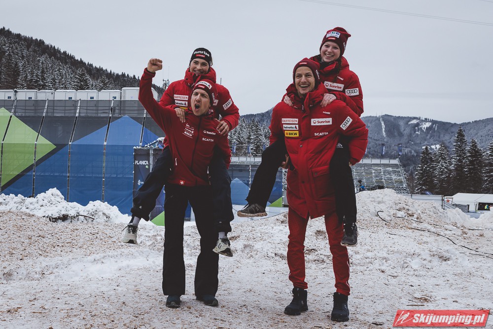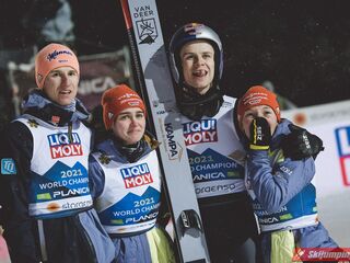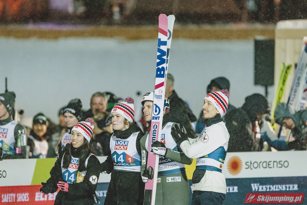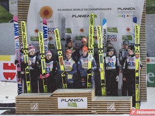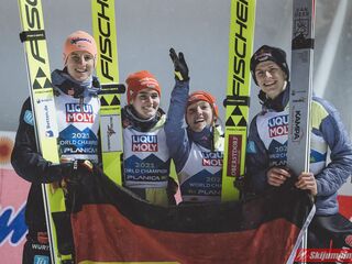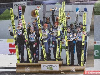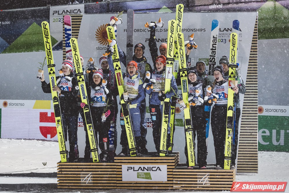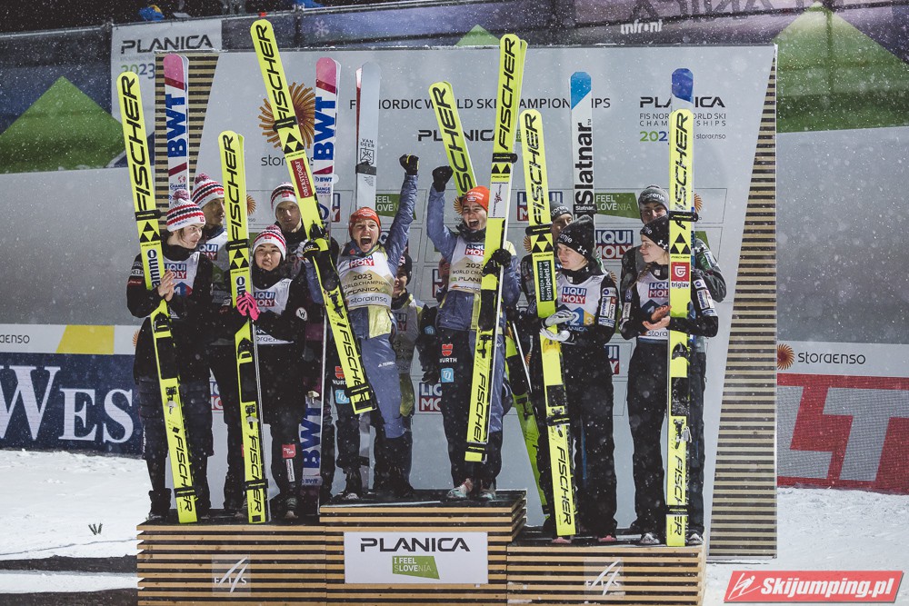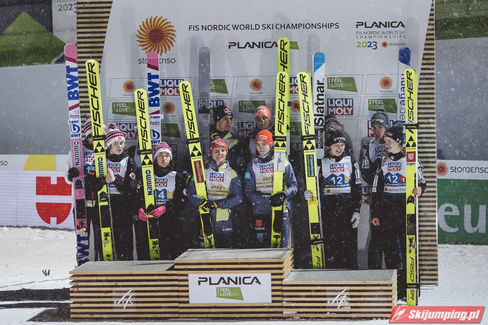 Tym samym Niemcy po raz piąty z rzędu zwyciężyli w konkursie drużyn mieszanych na mistrzostwach świata, w których są niepokonani od czempionatu w Falun w 2015 roku. Dla Kathariny Althaus to już trzeci złoty medal na MŚ w Planicy, po sukcesach w konkursie indywidualnym oraz drużynowym na normalnej skoczni.