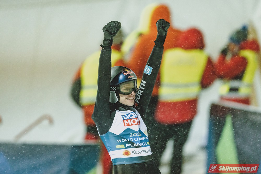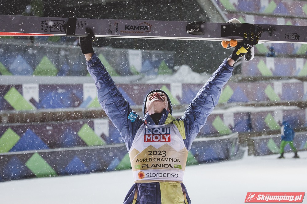 Polski skoczek powtórzył swój sukces z 2021 roku. Raz jeszcze pokazał, że w mistrzostwach świata na skoczni normalnej czuje się doskonale. Gospodarze jednak, czyli Słoweńcy, wciąż jeszcze nie przetrawili gorzkiej pigułki, że to nie oni sięgnęli po najwyższe laury.