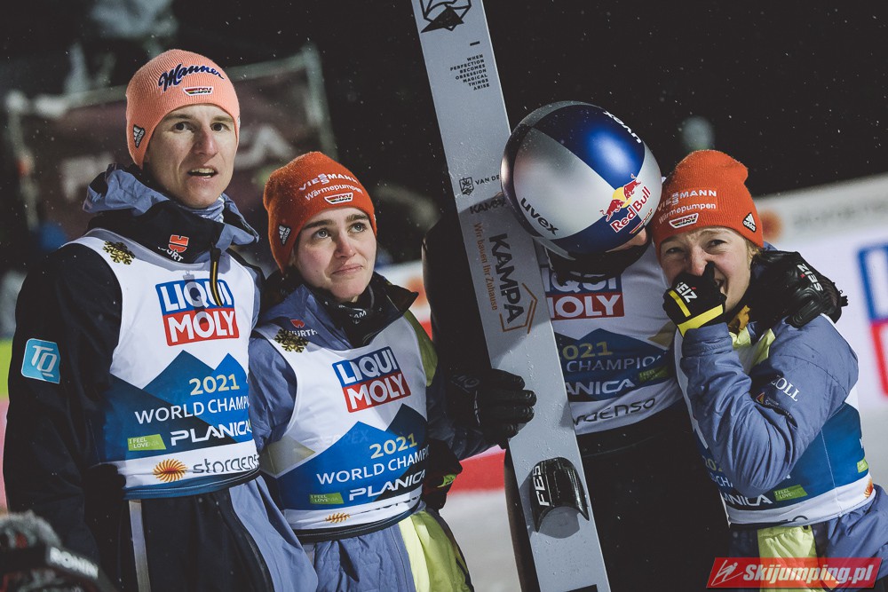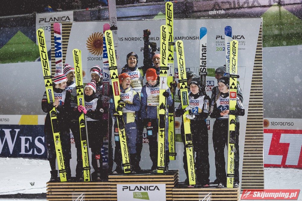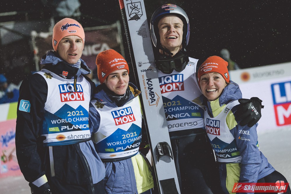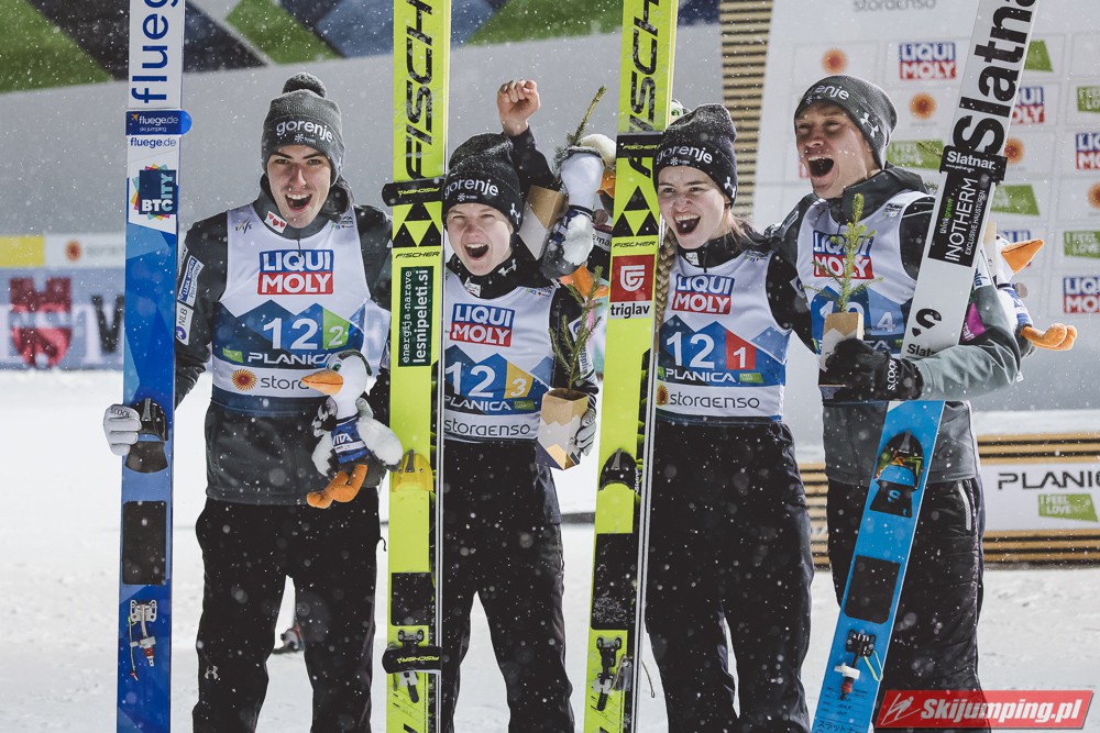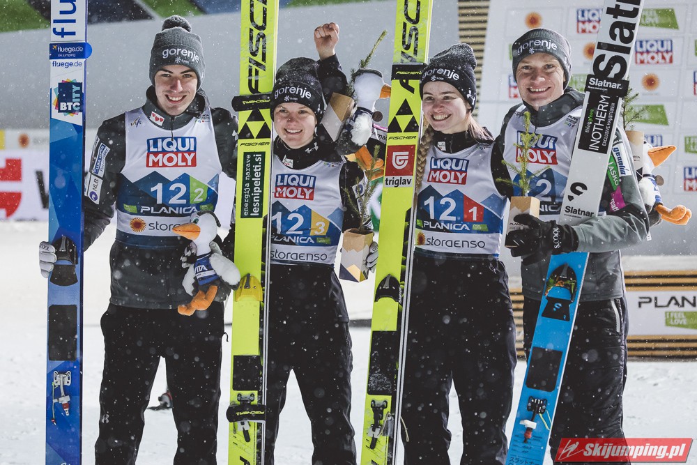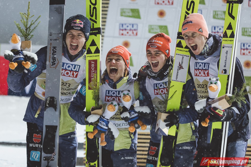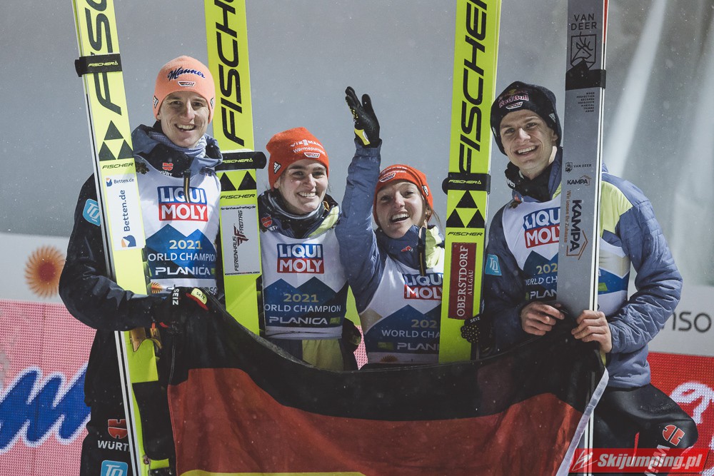 Reprezentacja Niemiec obroniła tytuł mistrzów świata drużyn mieszanych, który dzierżą nieprzerwanie od 2015 roku. Selina Freitag, Karl Geiger, Katharina Althaus i Andreas Wellinger triumfowali w niedzielnym konkursie na Srednjej Skakalnicy (HS102) w Planicy. Srebro wywalczyła Norwegia, a brąz Słowenia. Polska zakończyła zawody na ósmej pozycji.