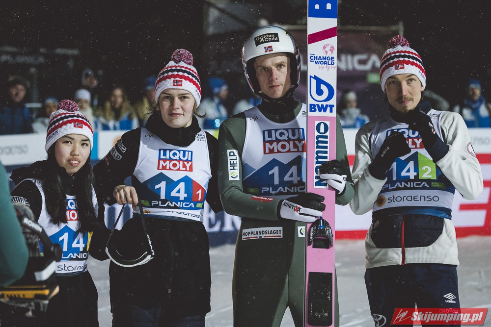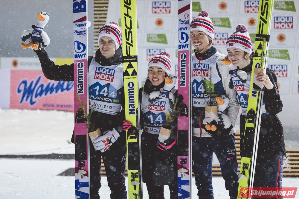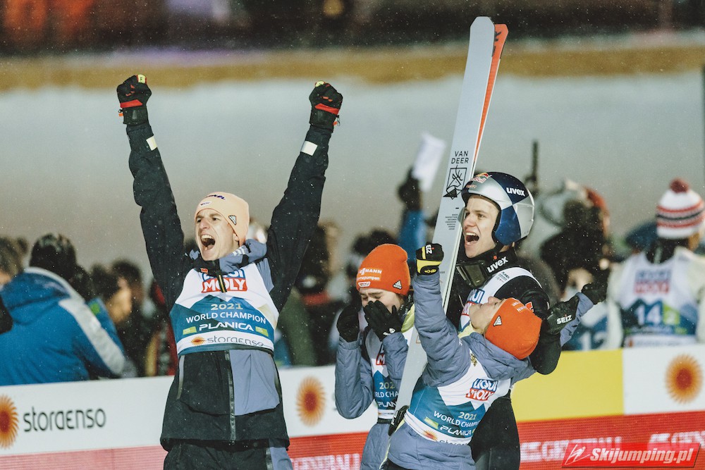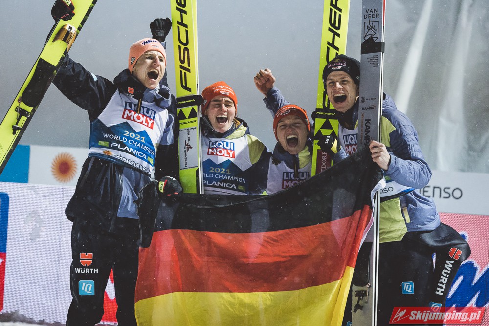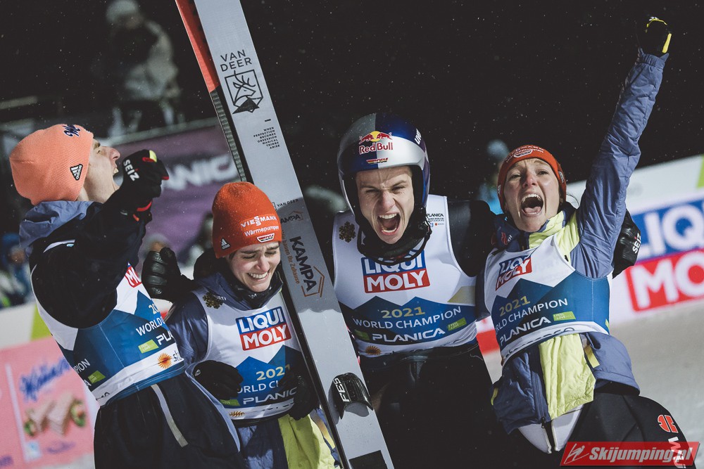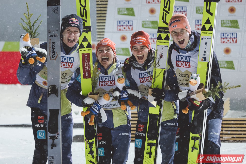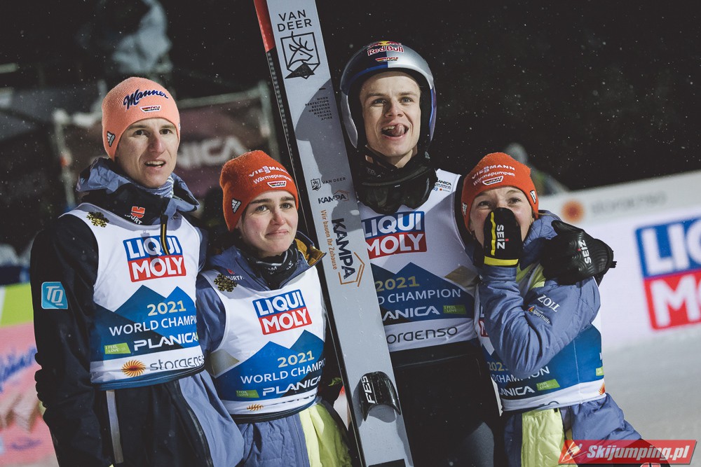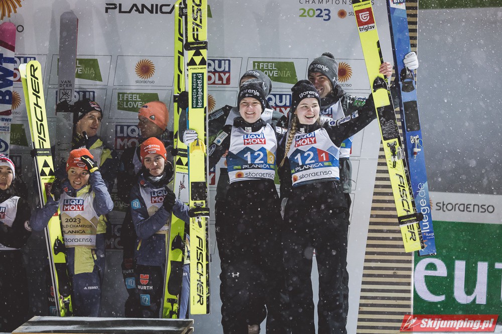 Reprezentacja Niemiec obroniła tytuł mistrzów świata drużyn mieszanych, który dzierżą nieprzerwanie od 2015 roku. Selina Freitag, Karl Geiger, Katharina Althaus i Andreas Wellinger triumfowali w niedzielnym konkursie na Srednjej Skakalnicy (HS102) w Planicy. Srebro wywalczyła Norwegia, a brąz Słowenia. Polska zakończyła zawody na ósmej pozycji.
