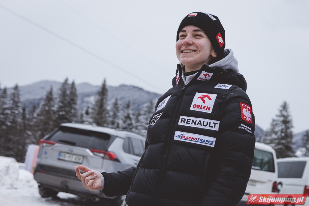 Dla mnie też wygląda na pracowitą (chociażby fakt, że tak późno zaczęła skakać i mimo wszystko jest najlepszą skoczkinią w PL), ale i na bardzo konkretną i stanowczą, czasami być może aż za bardzo. Zwłaszcza z K. Karpiel w kadrze musiały tworzyć ciekawą mieszankę charakterów...