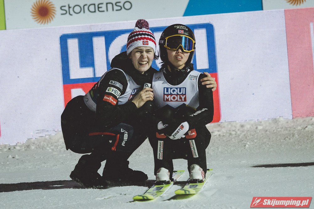 Wśród pań górą była Katharina Althaus (94,5 m i 102 m) przed Evą Pinkelnig (98 m i 102 m) i Anną Odine Stroem (97 m i 91 m). Nicole Konderla i Kinga Rajda zajęły dwie ostatnie pozycje wśród zawodniczek startujących w obu konkursowych seriach.