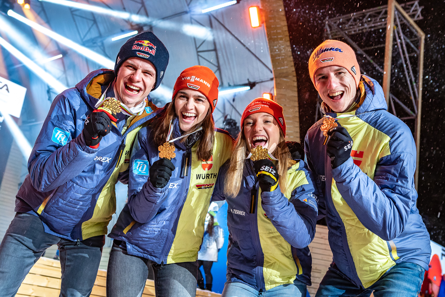Światowy czempionat przyniósł naszym zachodnim sąsiadom dwa indywidualne medale. Andreas Wellinger został wicemistrzem świata na normalnym obiekcie, a tuż za nim uplasował się Karl Geiger. Wspomniana dwójka dodatkowo dołożyła się do złotego medalu Niemców w konkursie drużyn mieszanych.