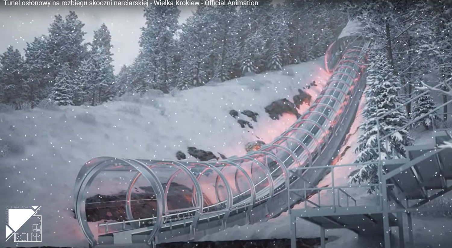 Pracownia Archigeum z Bydgoszczy sformalizowała współpracę z Instytutem Lotnictwa w Warszawie, który przeprowadzi w oparciu o makietę i modele trójwymiarowe niezbędne badania aerodynamiczne. Pomysł opracowania tunelu osłonowego zyskał wcześniej aprobatę Międzynarodowej Federacji Narciarskiej FIS, której delegaci dostrzegli szansę na rozwiązanie problemów, mających miejsce na rozbiegu skoczni narciarskiej.