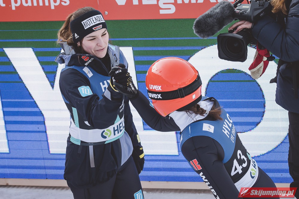 Należało się jej to zwycięstwo. Biedna tak się napłakała w tej Planicy. Ale i dla niej słońce wyszło. Teraz jest jedną z głównych kandydatek do wygrania Raw Air. Althaus i przede wszystkim Pinkelnig mocno spuściły z tonu. Gdyby Niemka wczoraj i dziś nie zawaliła drugich skoków to jeszcze nawet mogłaby powalczyć o KK. A tak to pzoostaje ostra walka Stroem i Klinec o trzecie miejsce. -
