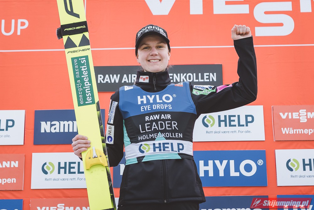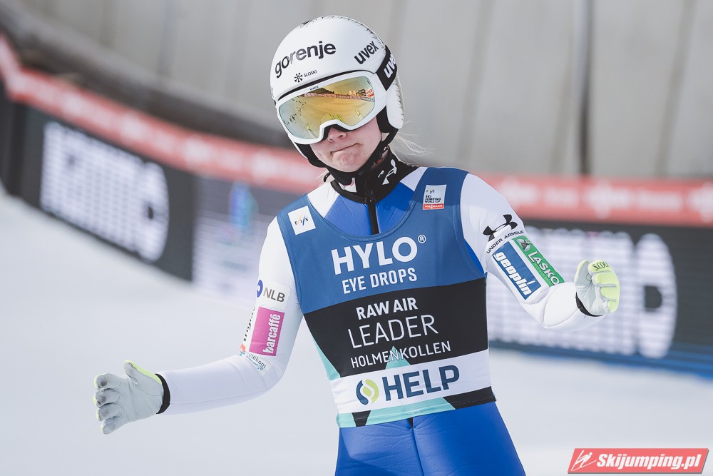 Ema Klinec wygrała niedzielny konkurs Raw Air pań na skoczni Holmenkollbakken (HS134) w Oslo i umocniła się na prowadzeniu w klasyfikacji generalnej turnieju. Reprezentantka Słowenii zwyciężyła po skokach na odległość 125 m oraz 134,5 m. Drugie miejsce zajęła Chiara Kreuzer, a trzecie Anna Odine Stroem.