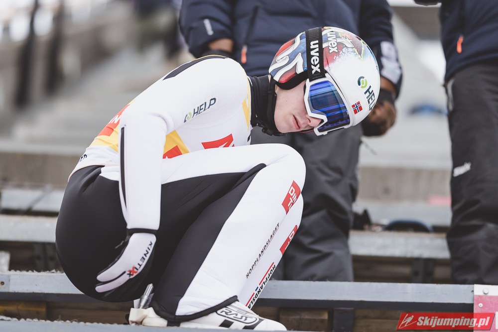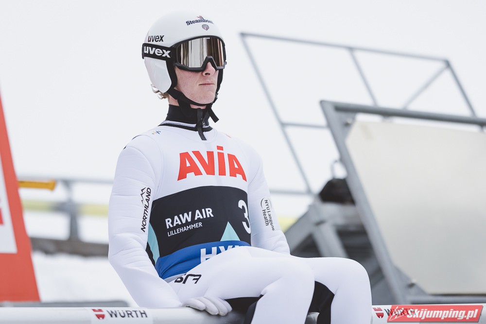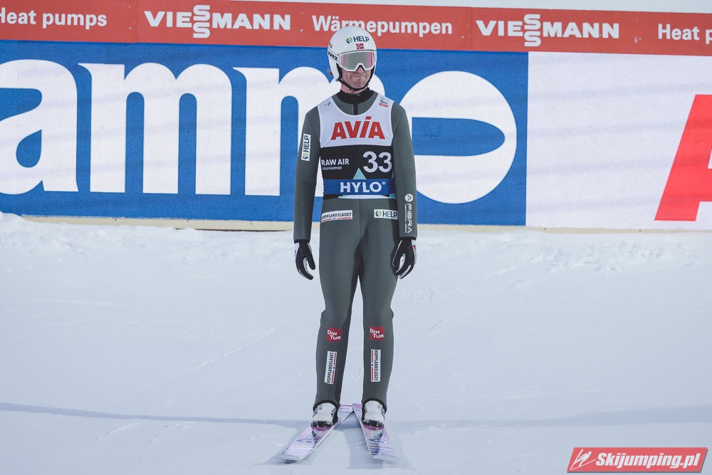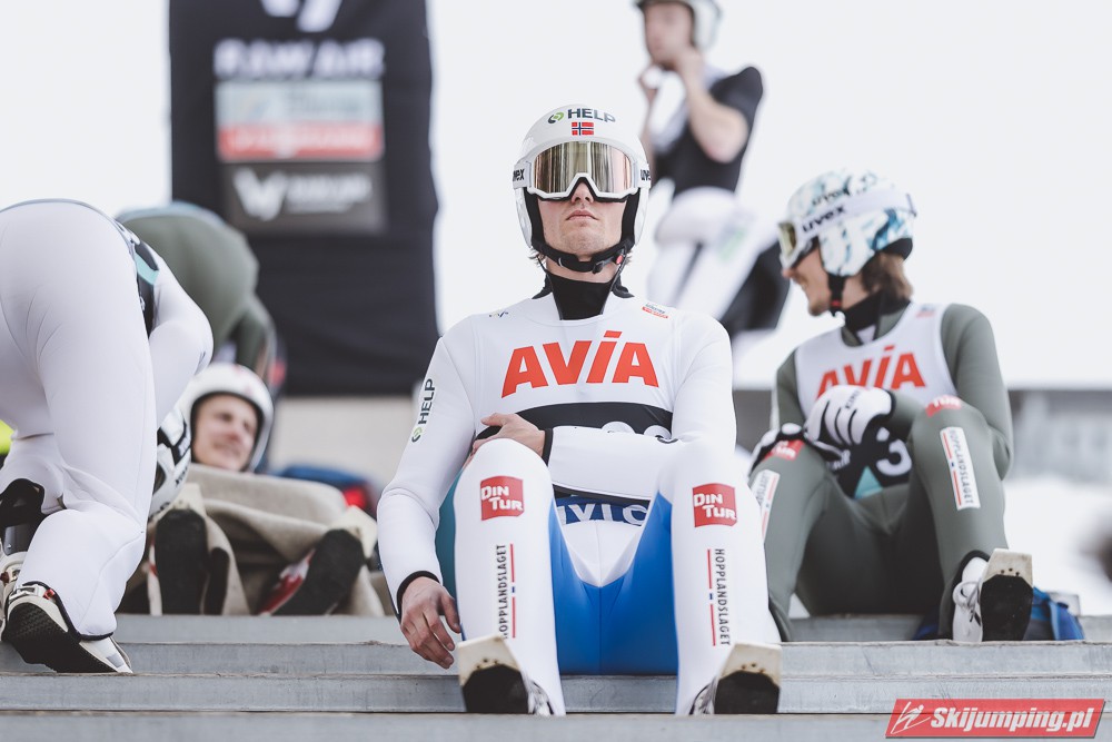 Lider Pucharu Świata i Raw Air, Halvor Egner Granerud po skoku na 133 metr zajmował siódmą lokatę, przed Danielem Andre Tande (131,5 m) oraz Michaelem Hayboeckiem (130 m). Czołową dziesiątkę zamykał Kristoffer Eriksen Sundal (130 m), a drugą dziesiątkę otwierał Kamil Stoch (130 m).
