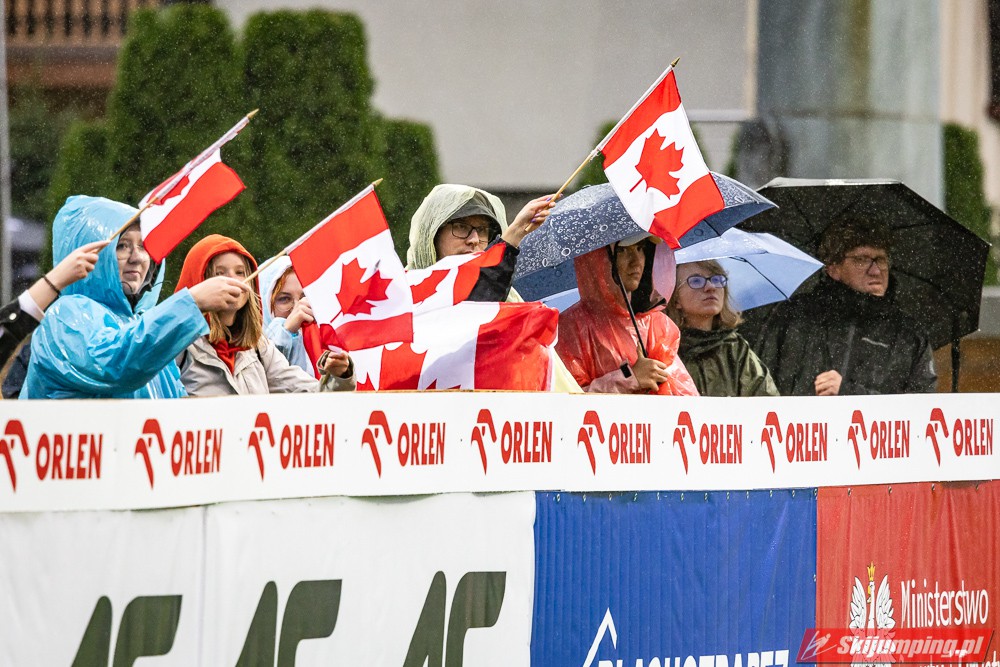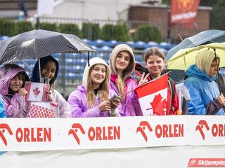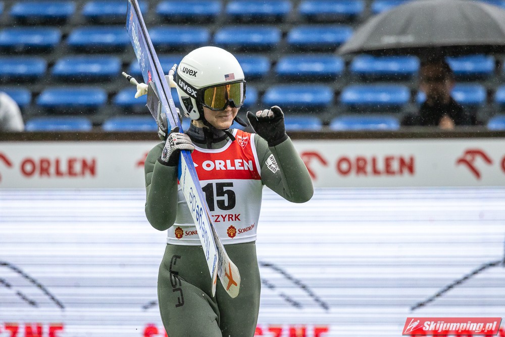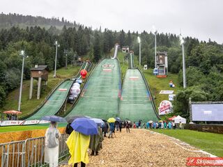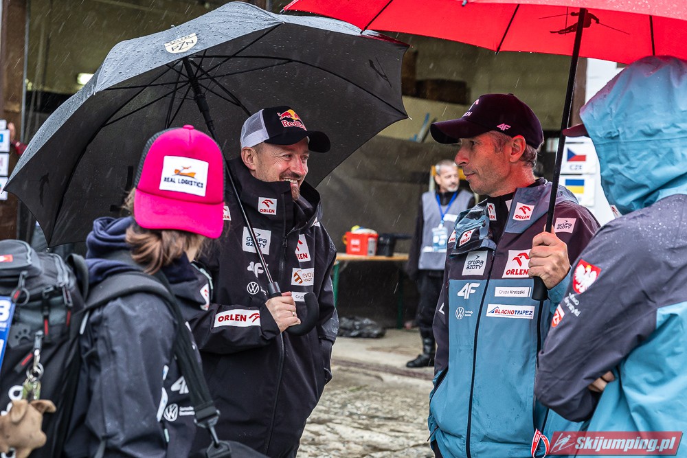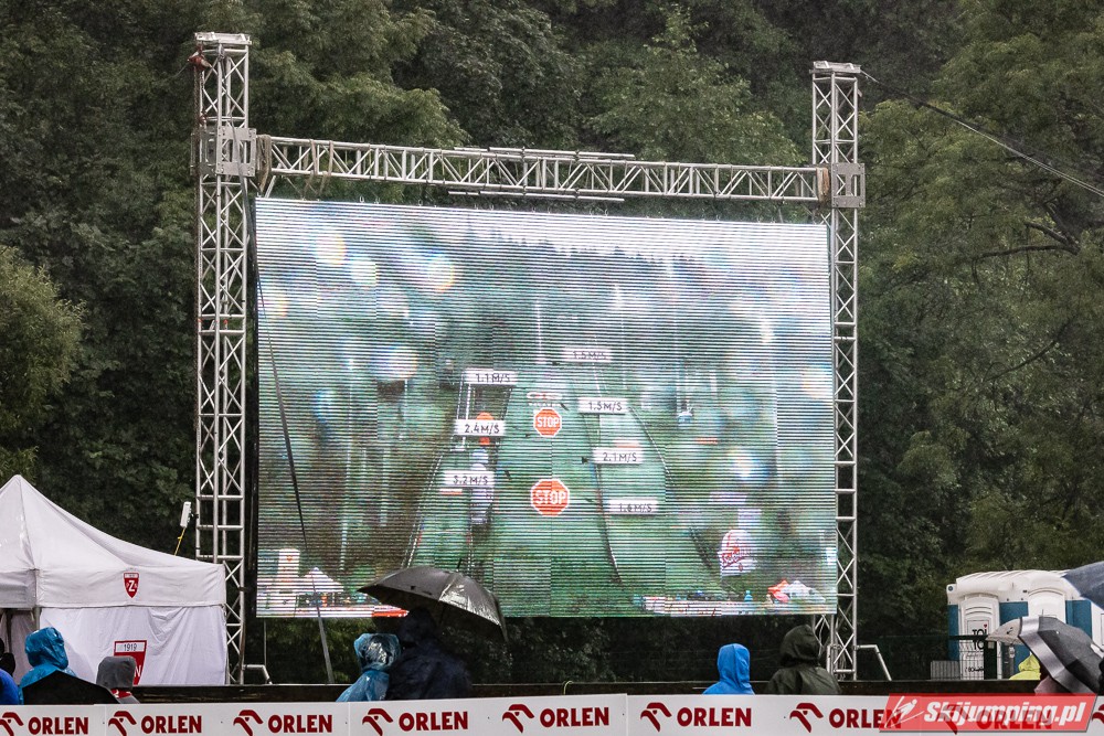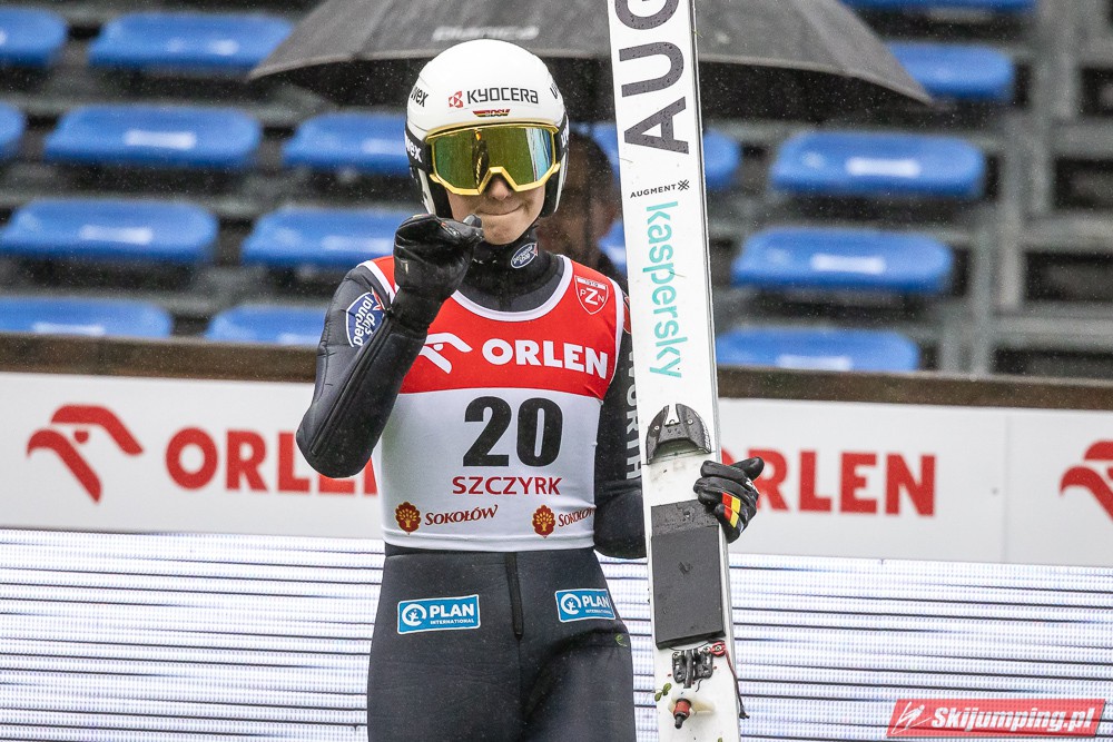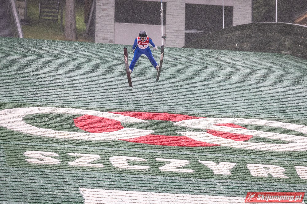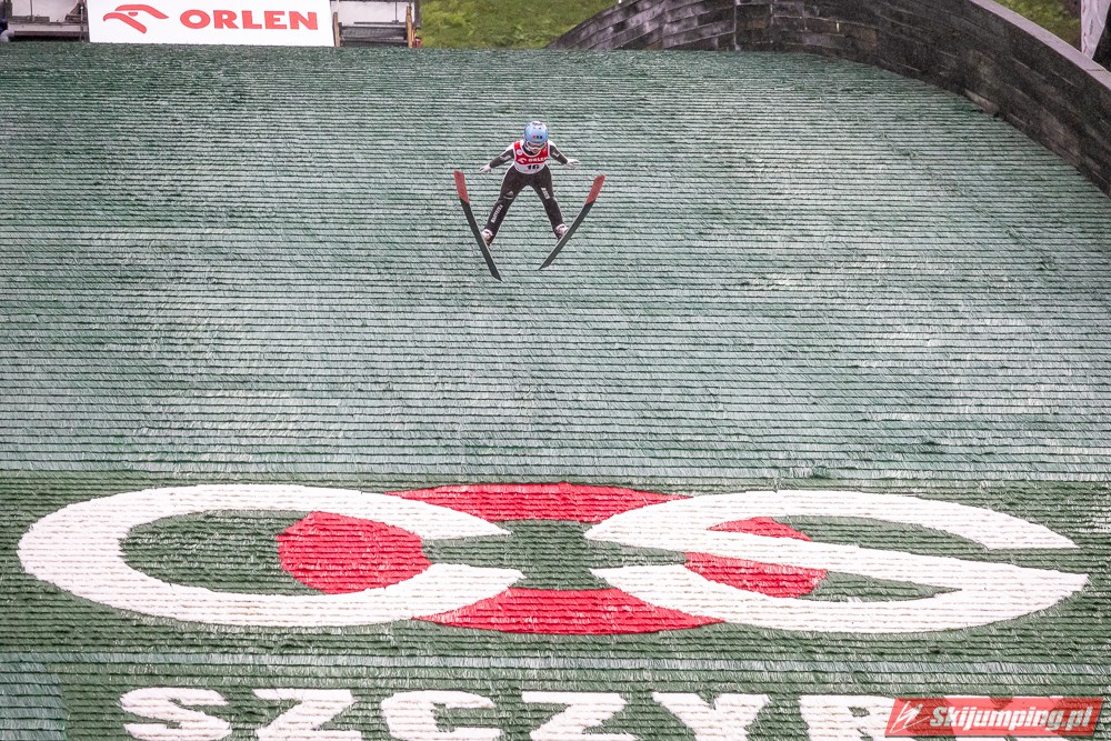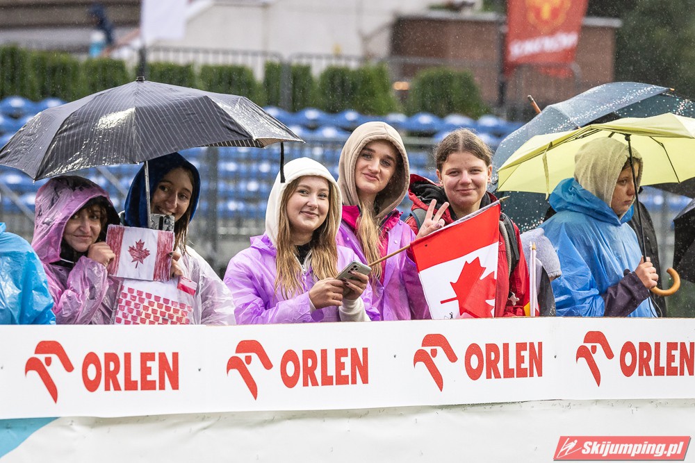 Widziałem wszystkie zawody i panów, i pań w Szczyrku, będąc obecnym na skoczni. O ile to, że dziś na konkurs kobiet zostali tylko najwytrwalsi, mnie nie dziwi, bo pogoda nie dopisała, ponadto odwołano serię próbną i drugą serię konkursową panów, o tyle wczoraj niska frekwencja na zawodach pań była dla mnie rozczarowaniem. Trzeba jednak napisać, że również na zawodach mężczyzn trybuny nie tylko nie były pełne, ale bardzo wiele im do zapełnienia brakowało. Czyżby wysokie ceny biletów zrobiły swoje? 250 złotych za miejsca siedzące wobec 60 złotych za miejsca stojące za weekend to duża różnica. A dziś i tak prawie wszyscy stali, mało kto chciał siedzieć w czasie takiej ulewy.