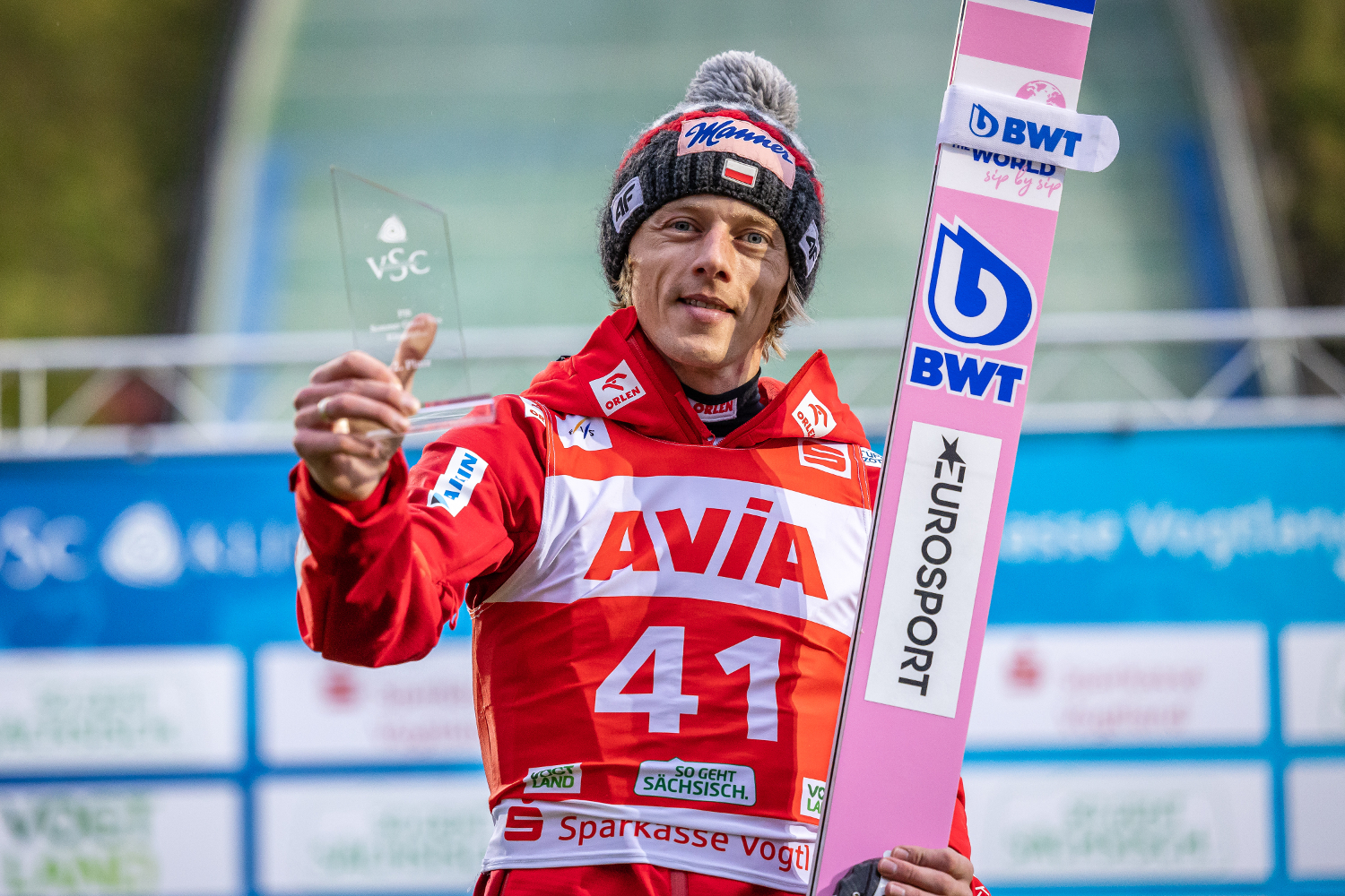 – To nie jest coś, co by mi przeszkadzało w rywalizacji i skakaniu. Myślę, że po tym dniu mogę być z siebie zadowolony, choć oba skoki konkursowe były spóźnione. Nie tak bardzo, ale spóźnione. Przez to mogły być troszkę lepsze, ale wolę skupiać się na pozytywach. Pierwsza część pchania, która była w stanie oprzeć się o próg, była na tyle efektywna, że to rotowało, co dawało prędkość i wysokość za progiem. Pół metra spóźnienia na progu? Może to kwestia zmęczenia, przez co nogi nie są wystarczająco szybkie, ale to jest do dopracowania – komentuje Dawid Kubacki, który na Sparkasse Vogtland Arenie (HS140) uzyskał 138,5 oraz 136,5 metra.