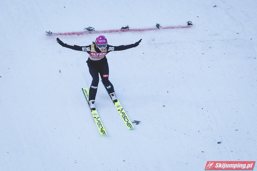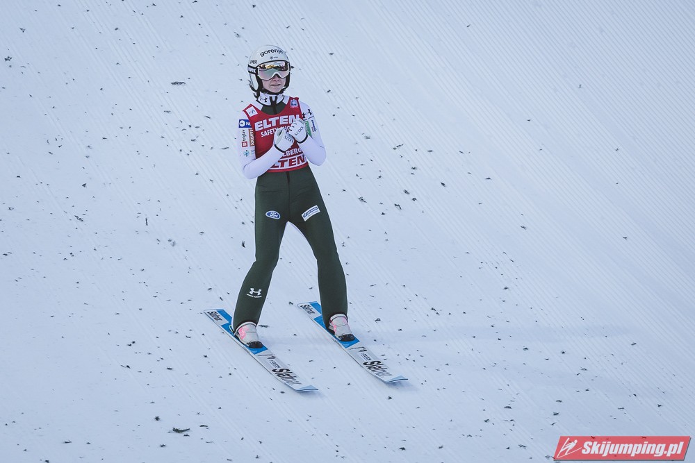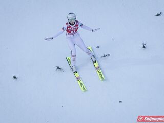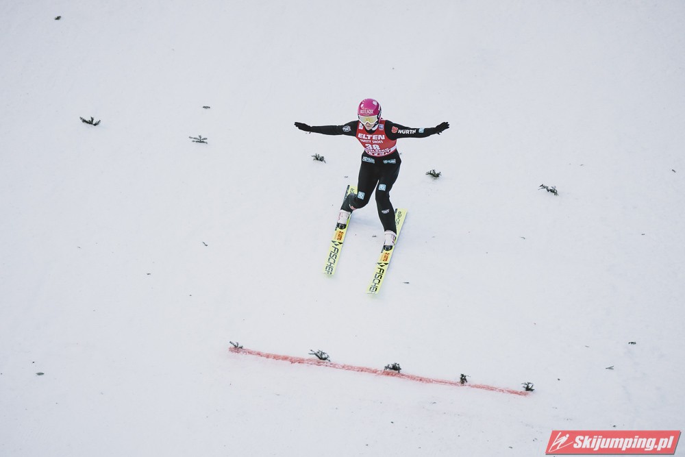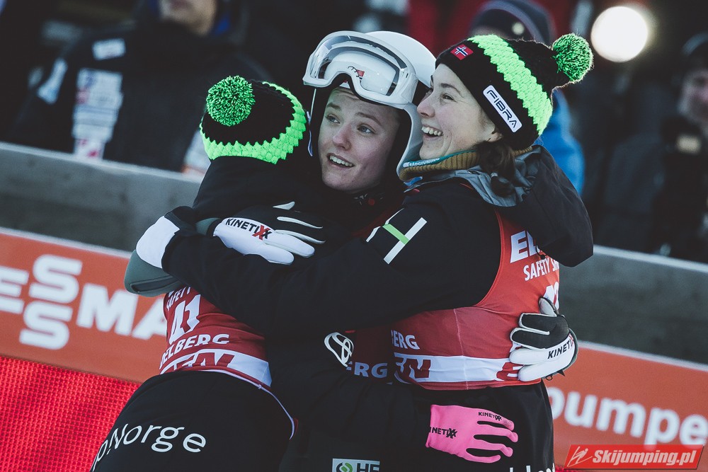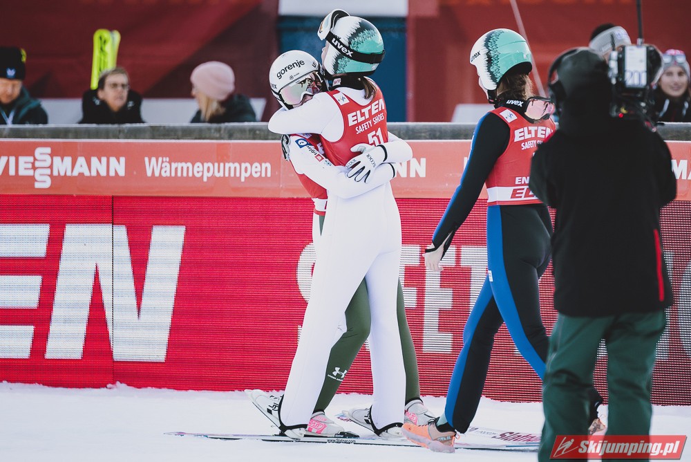 Pierwsze zwycięstwo sezonu dla dynastii, brawo Nika! Zwycięstwo trochę wydrukowane, ale drugim skokiem pokazała, że miejsce w ścisłym topie jej się należy. Brawo dla Kvandal, w końcu wszystko zagrało (poza telemarkiem, ale dla niej każde pewne lądowanie to sukces). Brawo dla Klinec, dwie znakomite bomby w ciężkich warunkach. Dwie dominatorki dziś raczej w cieniu, zwłaszcza Loutitt blado - oby w Ga-Pa wrócił błysk. Mocny występ Finek, poza cichą bohaterką Rationaho (życiówka! trzecia nota finału!) Kykkanen wypada najlepiej od lat.