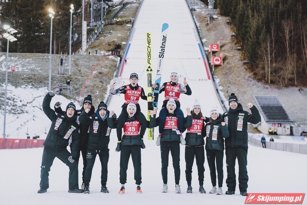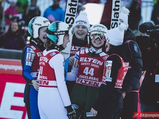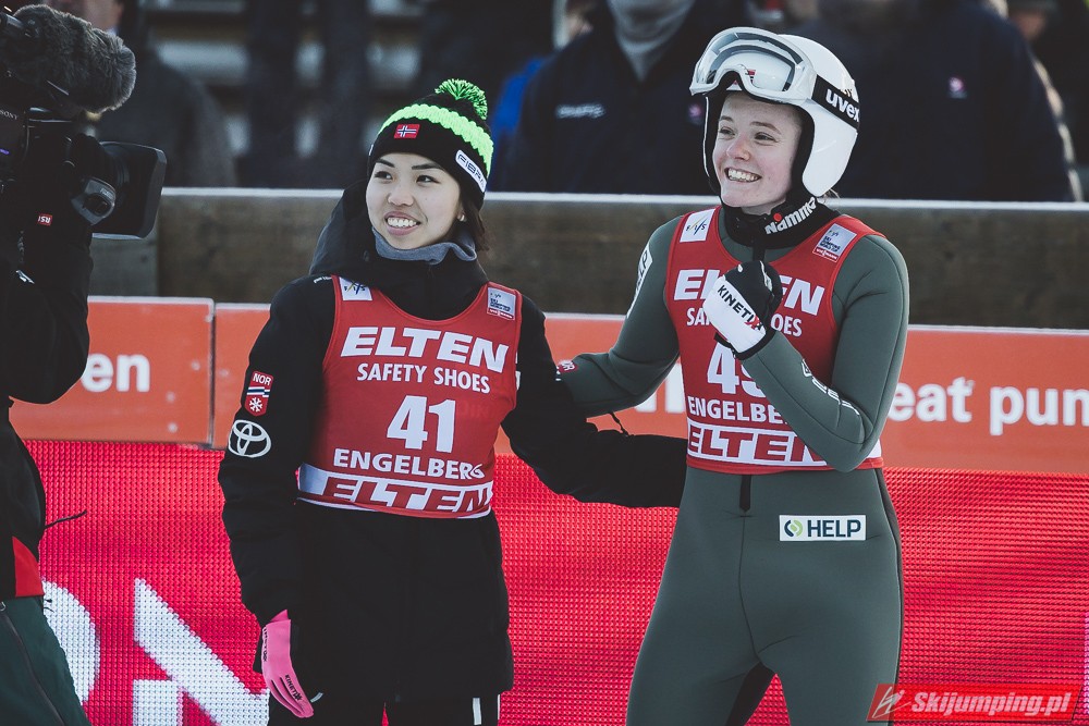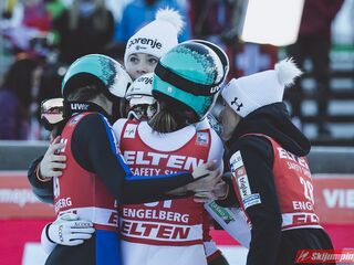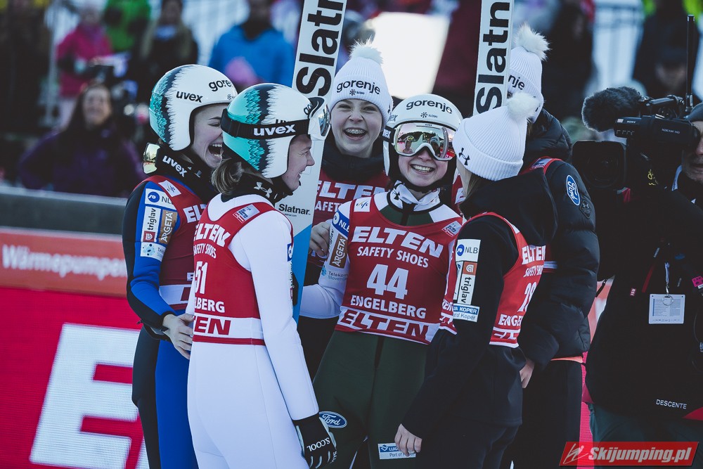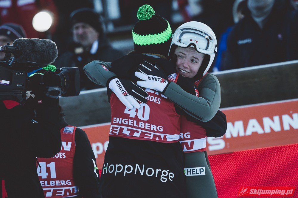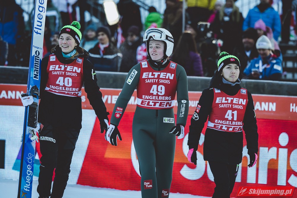 Pierwsze zwycięstwo sezonu dla dynastii, brawo Nika! Zwycięstwo trochę wydrukowane, ale drugim skokiem pokazała, że miejsce w ścisłym topie jej się należy. Brawo dla Kvandal, w końcu wszystko zagrało (poza telemarkiem, ale dla niej każde pewne lądowanie to sukces). Brawo dla Klinec, dwie znakomite bomby w ciężkich warunkach. Dwie dominatorki dziś raczej w cieniu, zwłaszcza Loutitt blado - oby w Ga-Pa wrócił błysk. Mocny występ Finek, poza cichą bohaterką Rationaho (życiówka! trzecia nota finału!) Kykkanen wypada najlepiej od lat.