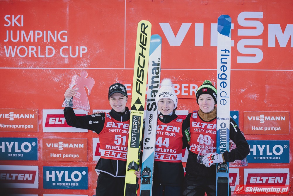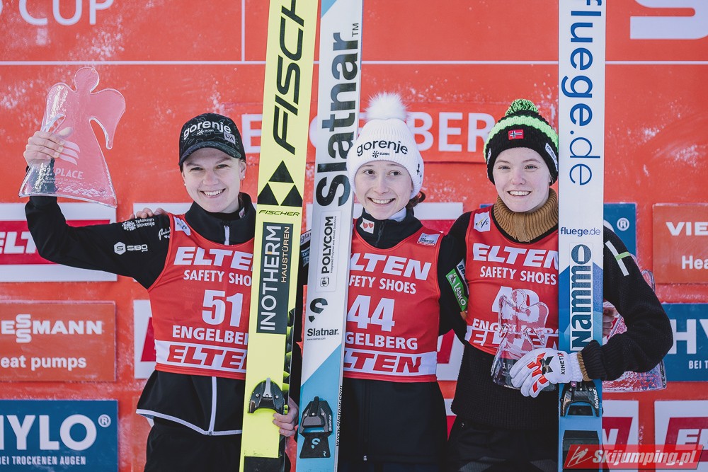 Nika Prevc odniosła pierwsze w karierze zwycięstwo w zawodach Pucharu Świata pań. Reprezentantka Słowenii triumfowała w sobotnim konkursie na Gross-Titlis-Schanze (HS140) w Engelbergu po skokach na odległość 136,5 m oraz 129,5 m. Druga była Ema Klinec, a trzecia Eirin Maria Kvandal.
