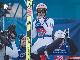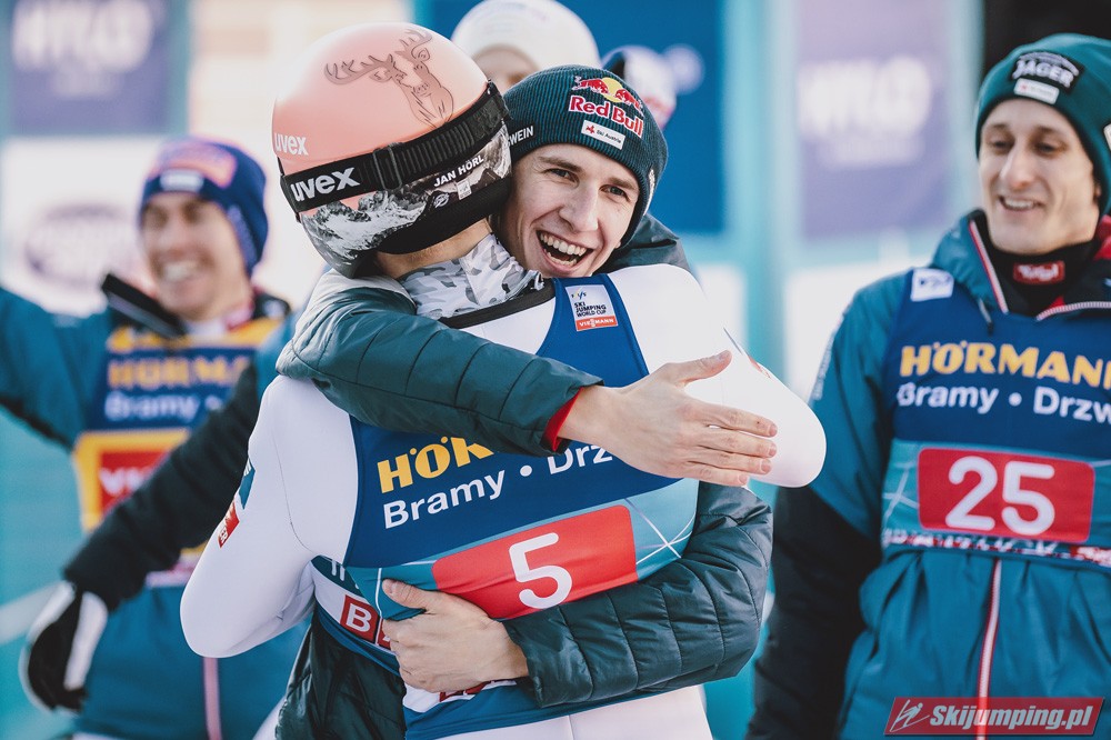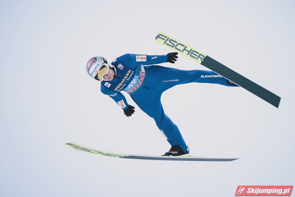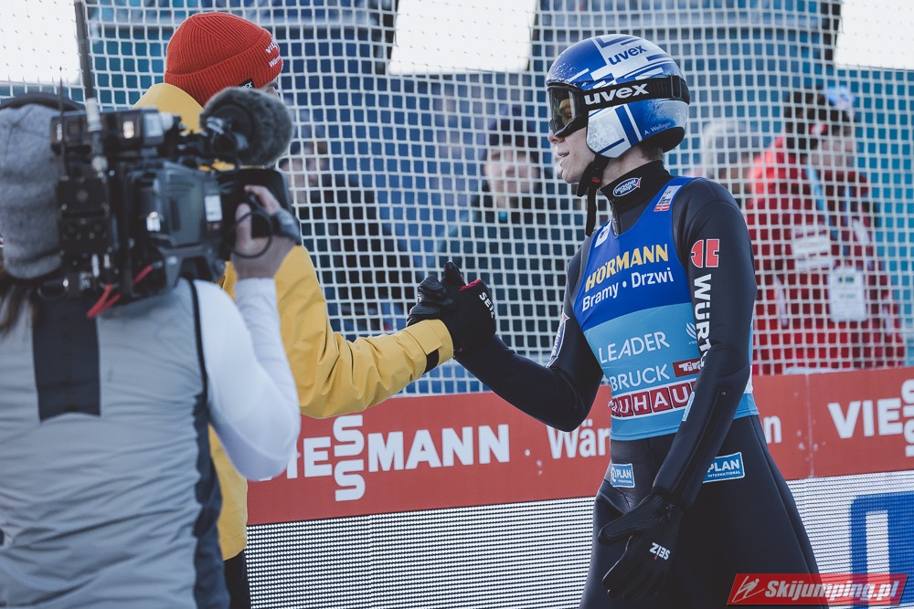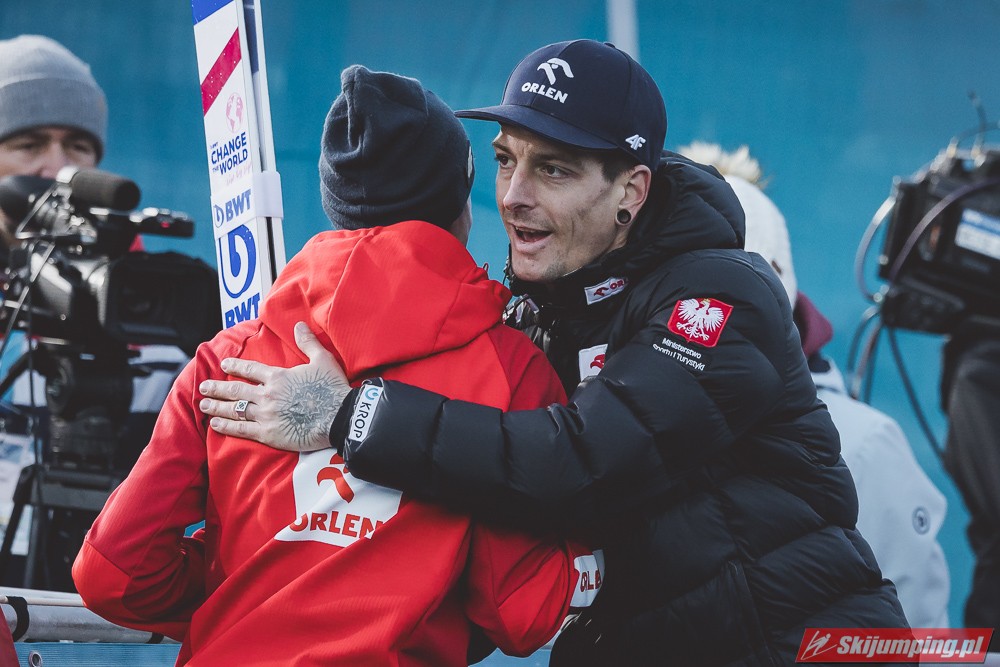 Dobry konkurs zaliczyli też Słoweńcy, Kos tuż za podium, cały czas pnie się w górę w generalce PŚ, do TOP10 brakuje mu 66 punktów, jeśli cały czas byłby w tak dobrej formie to nie wykluczone, że do tej dyszki awansuje, aczkolwiek spadek formy po TCS też by mnie nie zdziwił. Lanisek dużo słabiej niż w kwalach, ale konkurs dobry, Zajc również udane zawody, co konkurs to wyżej, ciekawe czy w Bischofshofen to podtrzyma, Pero nadspodziewanie słabo, nie awansował nawet do drugiej serii. Życiowa lokata Nikaido, z takim tempem niedługo powinno być TOP10 w którymś konkursie. Koudelka zaliczył najlepszy konkurs od prawie 4 lat, dobrze, że dzięki Romanowi czeskie skoki jeszcze całkiem nie upadły. Słaby konkurs Norwegów, ilościowo dobrze, bo pięciu w serii finałowej, ale najlepszy Lindvik dopiero na 15 miejscu, na plusik dużo lepsze miejsce Graneruda niż w niemieckich konkursach, może w Bischofshofen będzie w stanie powalczyć o TOP10. Dla Polaków był to najlepszy konkurs w tym sezonie, po pierwszej serii była nawet szansa na podium, bo Żyła był 4, ale w drugiej serii spartolił swój skok co chyba nikogo nie zdziwiło. Bardzo ładnie zaprezentował się Stoch, szczególnie w drugiej serii, ta próba dawała 9 notę tej serii, widać, że u Kamila wszystko idzie w dobrym kierunku, może za niedługo wpadnie jakaś lokata w TOP10. Zniszczoł znowu z punktami, mam nadzieję, że będzie to szło w podobnym kierunku jak w przyszłym sezonie, kiedy się przełamał i prawie co konkurs była seria finałowa z częstymi lokatami w drugiej dziesiątce. Wąsek ledwo awansował po bardzo słabym skoku, ale ten drugi już nie wyglądał tak źle.