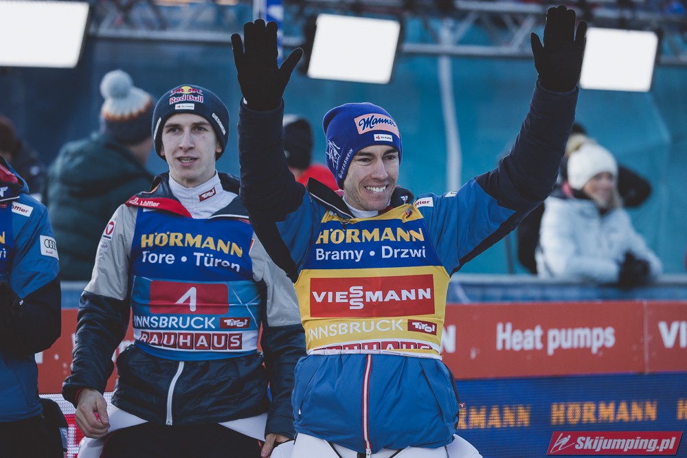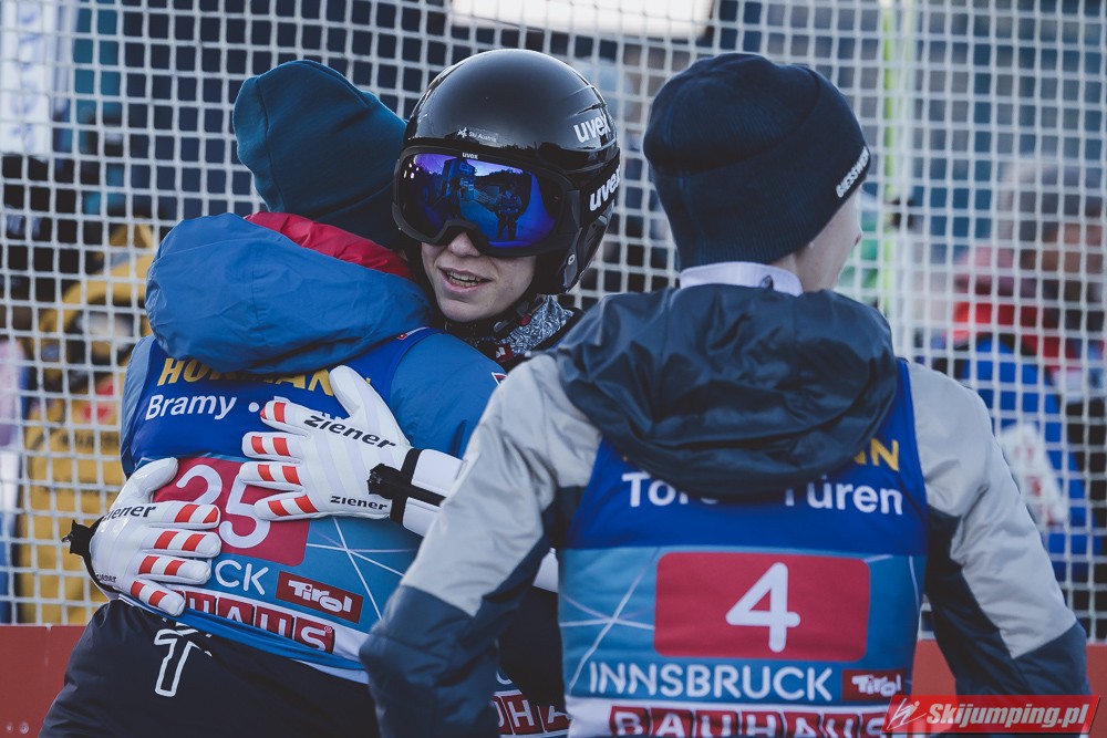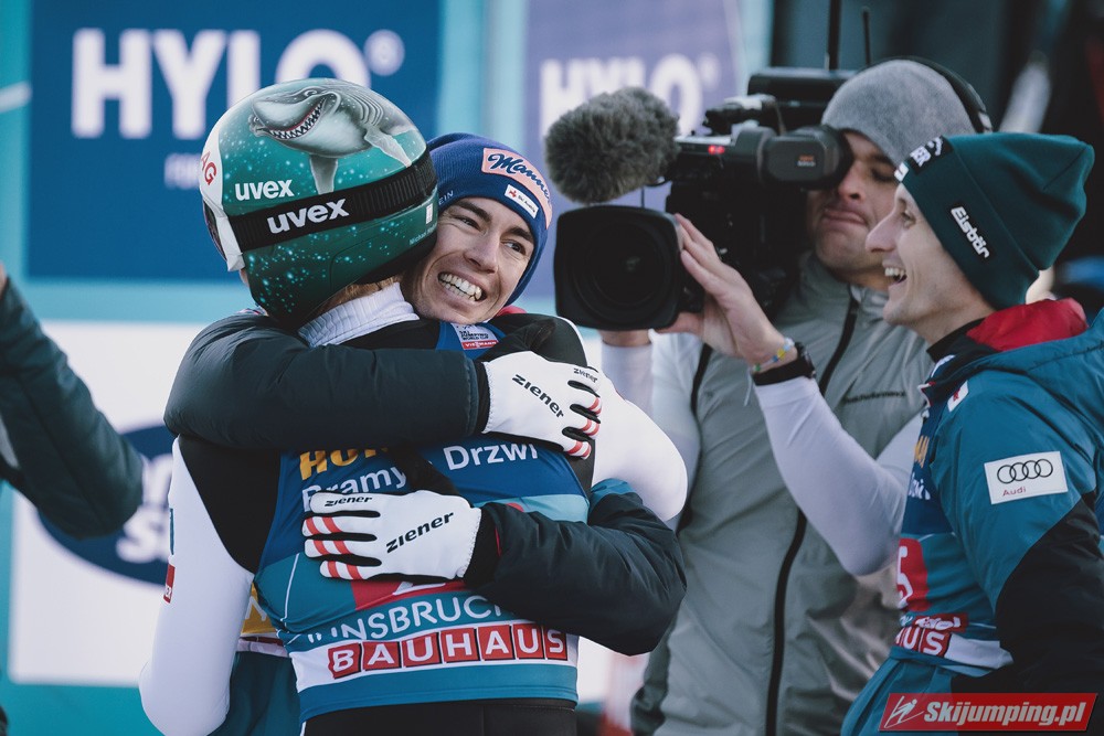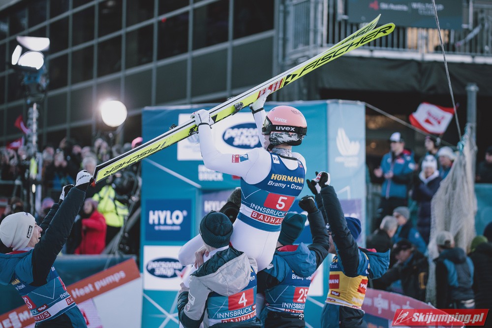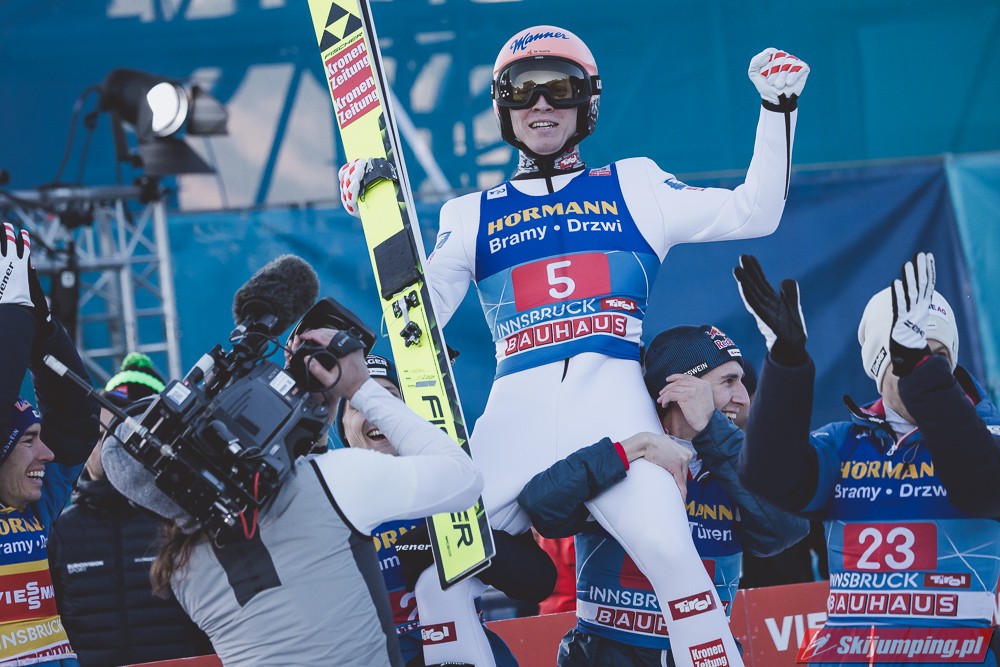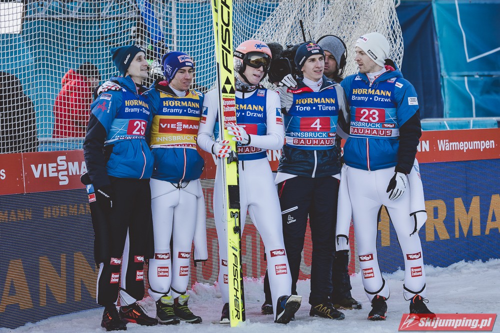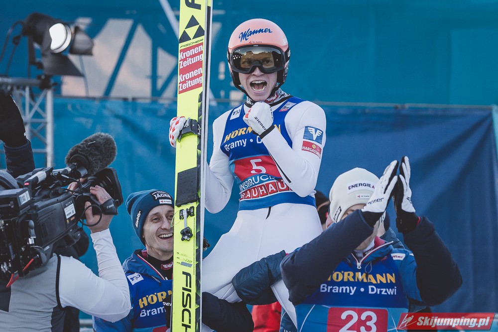 Kapitalny konkurs dla Austriaków, Hoerl drugi raz w karierze wygrywa i to teraz przed własną publicznością, wielkie osiągnięcie dla niego. Na dodatek awansował na 3 miejsce w PŚ i TCS wyprzedzając swojego rodaka Krafta, ale przewaga to nieco ponad 10 punktów, jak Kraft będzie miał swój dobry dzień to jak najbardziej jest w stanie to odrobić. Hayboeck wraca na podium po prawie 4 latach przerwy, ale należało mu się, bo już tyle razy był strasznie blisko tego pudła, ale zawsze czegoś brakowało. Kraft znowu na miejscu 6, pierwszy skok był nieco słabszy, drugi już dużo lepszy. Tschofenig wraca do TOP10 po miesiącu przerwy, ciekawe czy to zasługa skoczni czy po prostu wraca do dobrej formy. Aigner pierwszy raz w tym sezonie kończy zmagania w TOP10, ciekaw jestem składu Austriaków na PolSki turniej, pewniakami są na pewno Kraft, Hoerl, Hayboeck no i moim zdaniem powinien być nim też Embacher, który zaliczył bardzo dobry debiut i przecież to on najprawdopodobniej wywalczy dodatkowe miejsce. Zostaje jeszcze trzech kandydatów, Fettner, który ogólnie jest w bardzo dobrej formie, ale tu w Innsbrucku konkurs nie poszedł po jego myśli, no i Tschofenig i Aigner. Gdyby nie ten udany konkurs Tschofeniga to stawiałbym na to, że jego zabraknie, a tak to trzeba poczekać do Bischofshofen. Ale mimo wszystko Fettner chyba też ma pewne miejsce, więc powinno się to rozstrzygnąć między Tschofenigiem, a Aignerem. W walce o zwycięstwo w TCS dalej nic nie jest rozstrzygnięte, Ryoyu objął prowadzenie, ale przewaga to tylko 4,8 punktów nad drugim Wellingerem, kto wie czy Ryoyu nie wygra turnieju zajmując 4 razy drugie miejsce, aczkolwiek nie wykluczone, że Japończyk wygra ten ostatni konkurs, Andi oczywiście też nie jest bez szans, jedno jest pewne, w Bischofshofen na pewno będzie bardzo ciekawie i oby była to walka do ostatniego skoku.