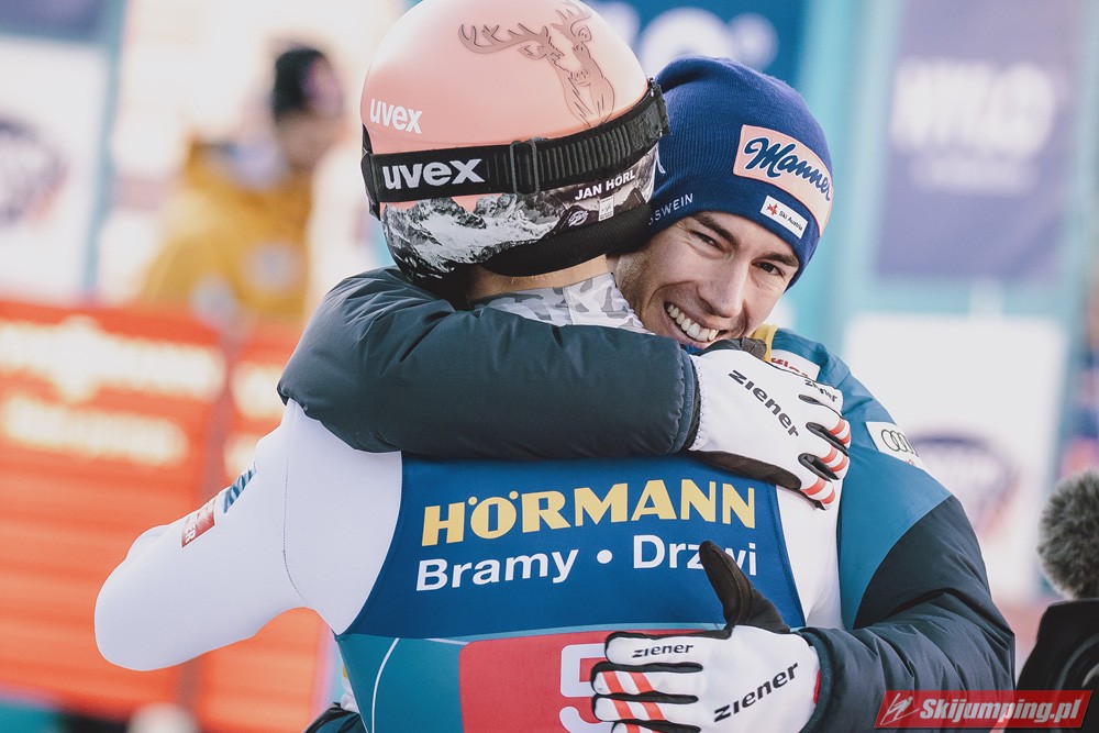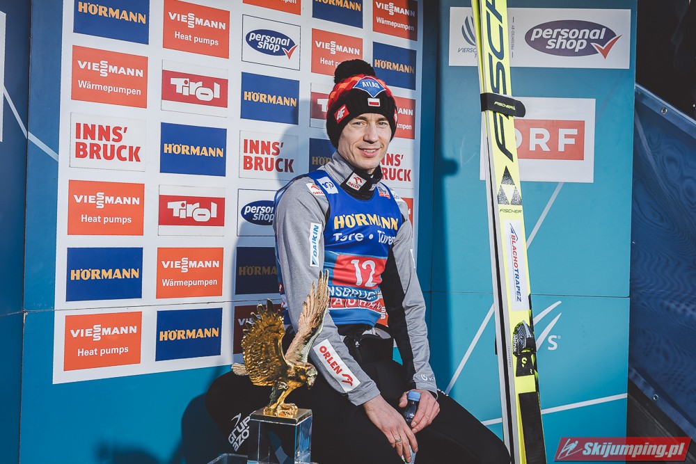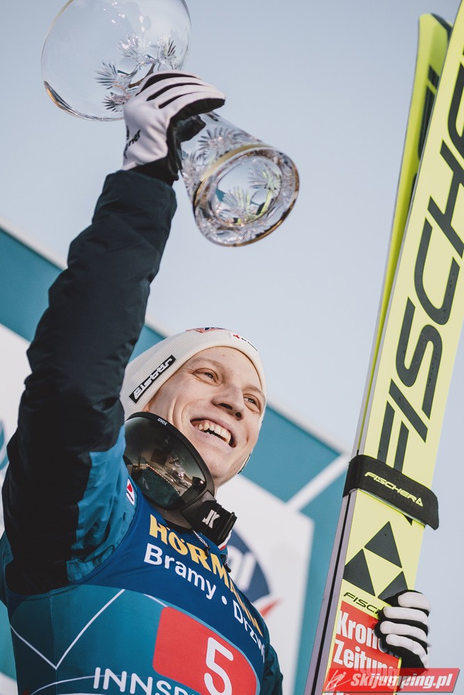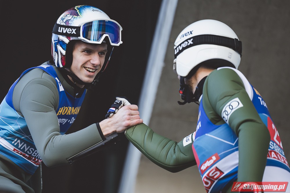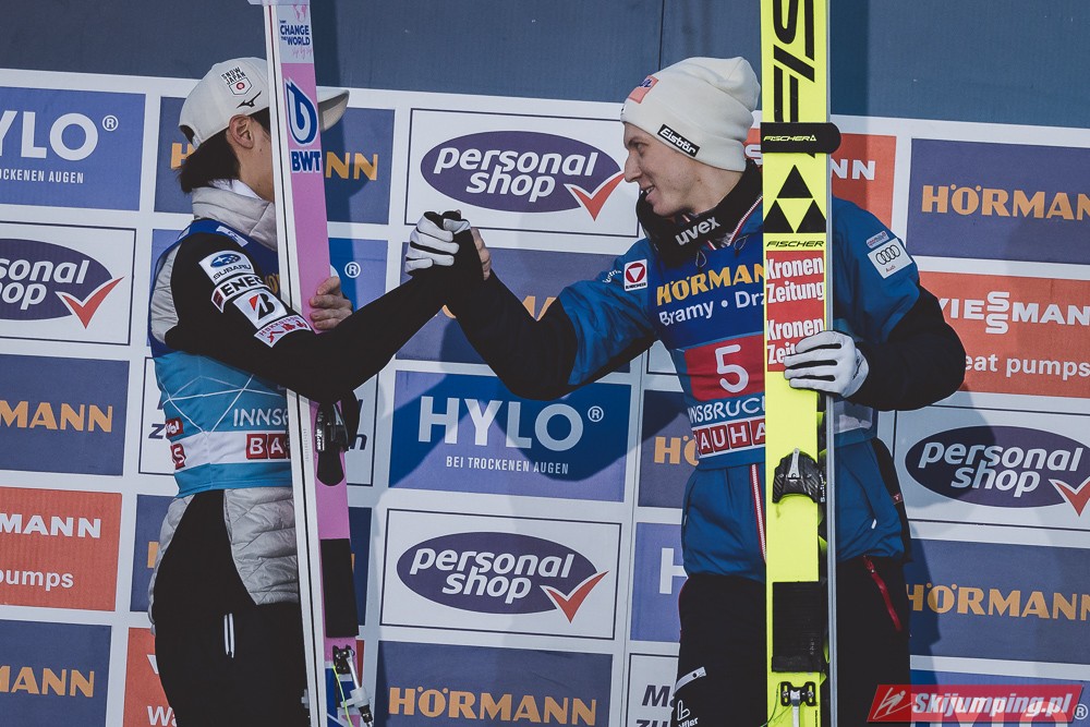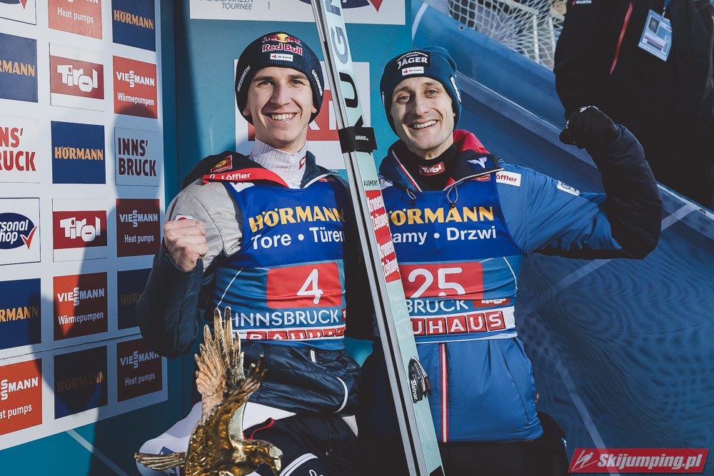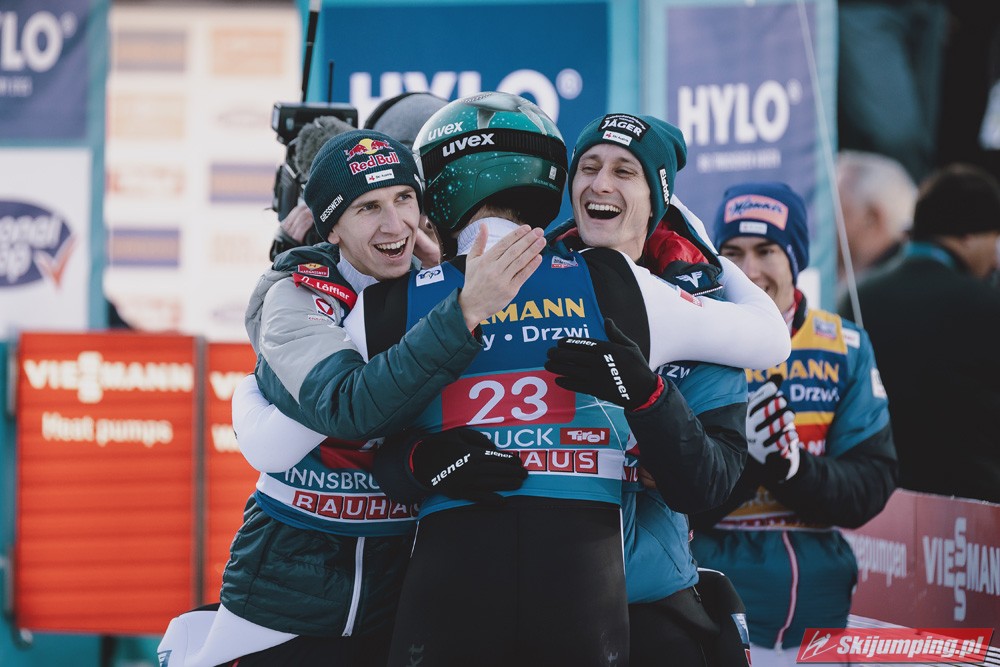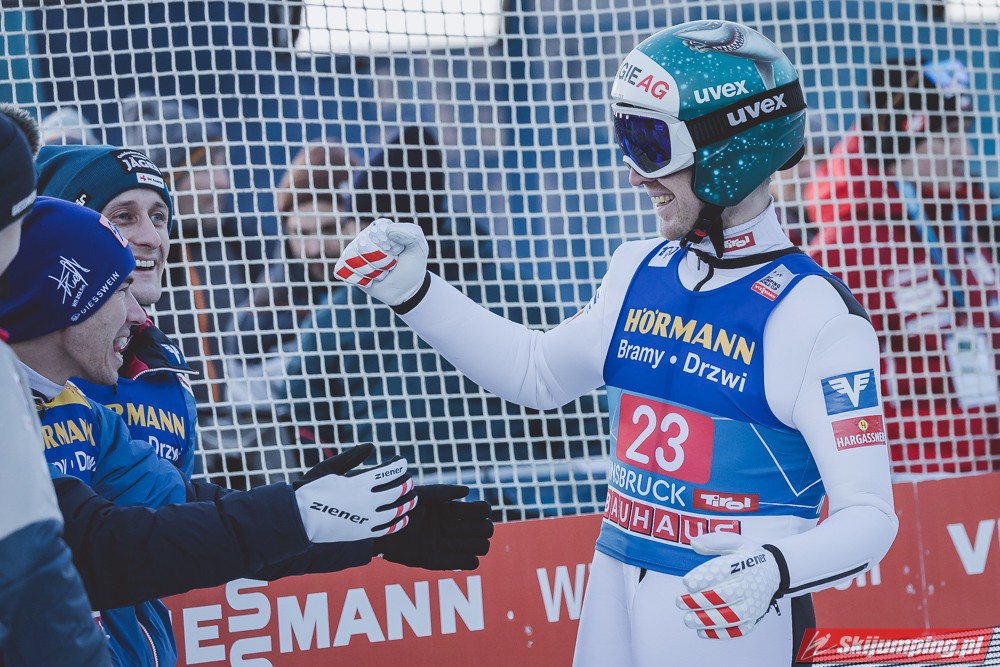 Kapitalny konkurs dla Austriaków, Hoerl drugi raz w karierze wygrywa i to teraz przed własną publicznością, wielkie osiągnięcie dla niego. Na dodatek awansował na 3 miejsce w PŚ i TCS wyprzedzając swojego rodaka Krafta, ale przewaga to nieco ponad 10 punktów, jak Kraft będzie miał swój dobry dzień to jak najbardziej jest w stanie to odrobić. Hayboeck wraca na podium po prawie 4 latach przerwy, ale należało mu się, bo już tyle razy był strasznie blisko tego pudła, ale zawsze czegoś brakowało. Kraft znowu na miejscu 6, pierwszy skok był nieco słabszy, drugi już dużo lepszy. Tschofenig wraca do TOP10 po miesiącu przerwy, ciekawe czy to zasługa skoczni czy po prostu wraca do dobrej formy. Aigner pierwszy raz w tym sezonie kończy zmagania w TOP10, ciekaw jestem składu Austriaków na PolSki turniej, pewniakami są na pewno Kraft, Hoerl, Hayboeck no i moim zdaniem powinien być nim też Embacher, który zaliczył bardzo dobry debiut i przecież to on najprawdopodobniej wywalczy dodatkowe miejsce. Zostaje jeszcze trzech kandydatów, Fettner, który ogólnie jest w bardzo dobrej formie, ale tu w Innsbrucku konkurs nie poszedł po jego myśli, no i Tschofenig i Aigner. Gdyby nie ten udany konkurs Tschofeniga to stawiałbym na to, że jego zabraknie, a tak to trzeba poczekać do Bischofshofen. Ale mimo wszystko Fettner chyba też ma pewne miejsce, więc powinno się to rozstrzygnąć między Tschofenigiem, a Aignerem. W walce o zwycięstwo w TCS dalej nic nie jest rozstrzygnięte, Ryoyu objął prowadzenie, ale przewaga to tylko 4,8 punktów nad drugim Wellingerem, kto wie czy Ryoyu nie wygra turnieju zajmując 4 razy drugie miejsce, aczkolwiek nie wykluczone, że Japończyk wygra ten ostatni konkurs, Andi oczywiście też nie jest bez szans, jedno jest pewne, w Bischofshofen na pewno będzie bardzo ciekawie i oby była to walka do ostatniego skoku.