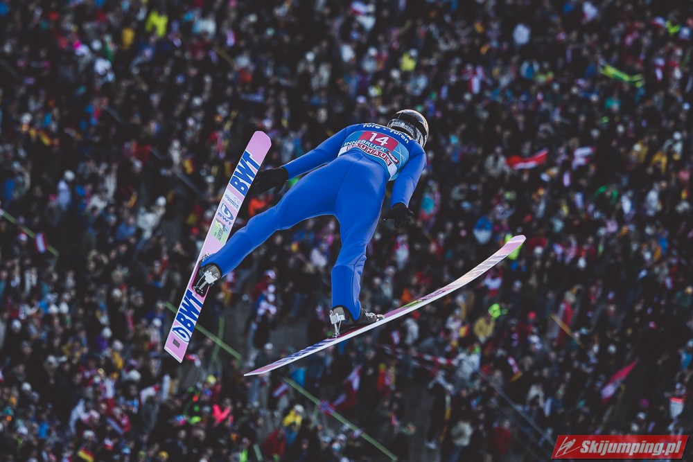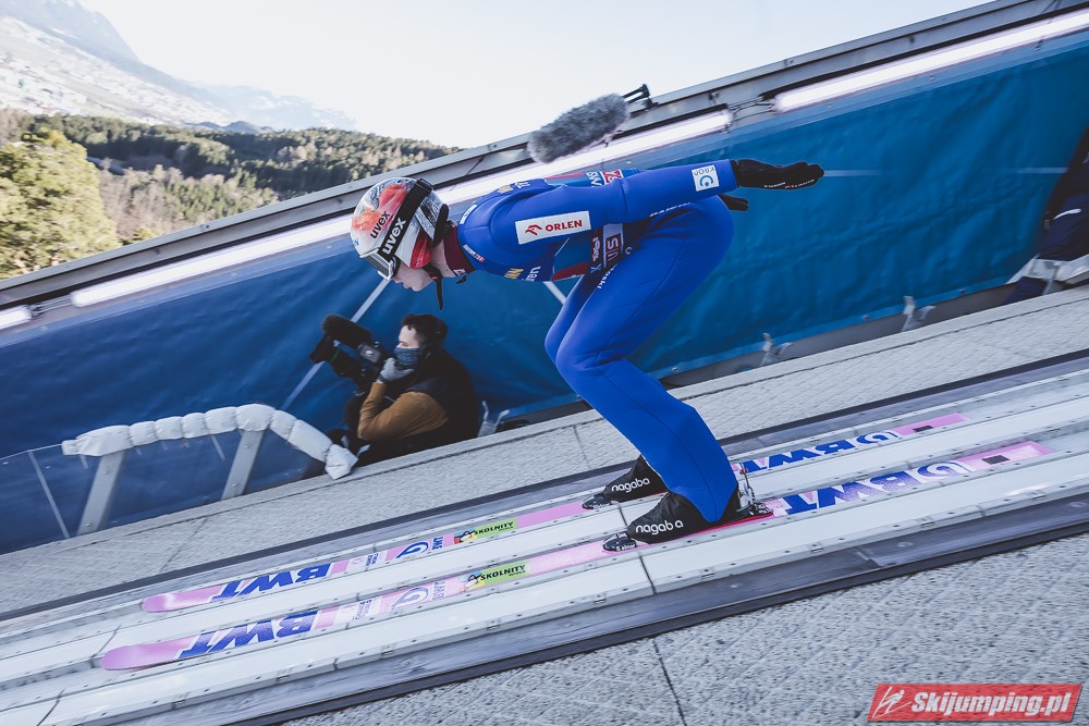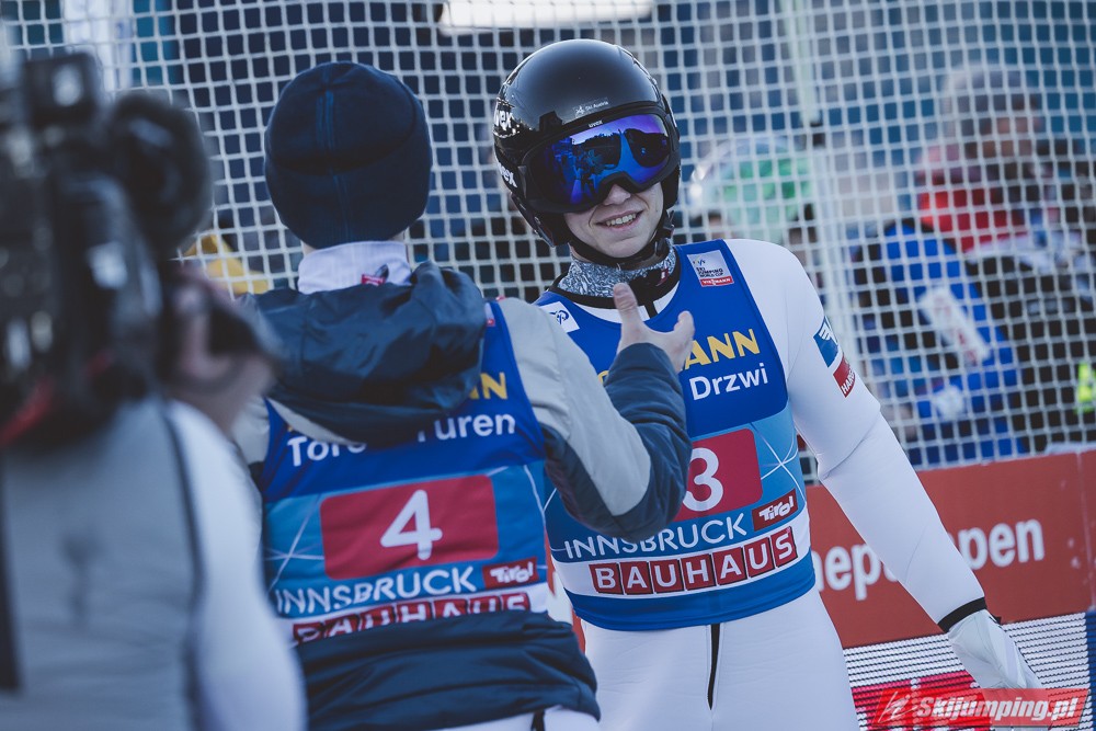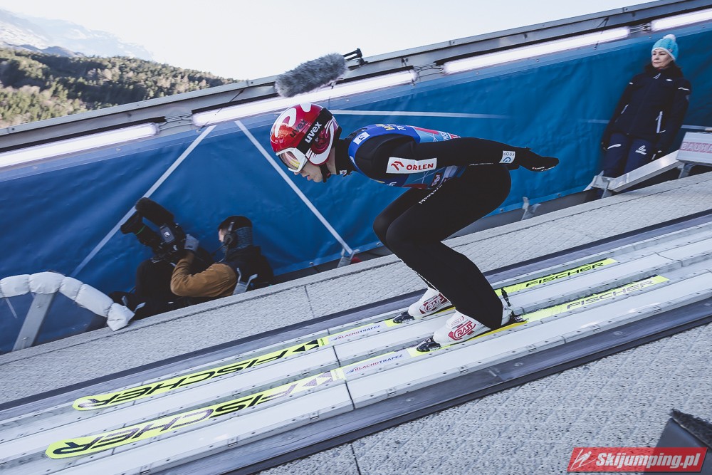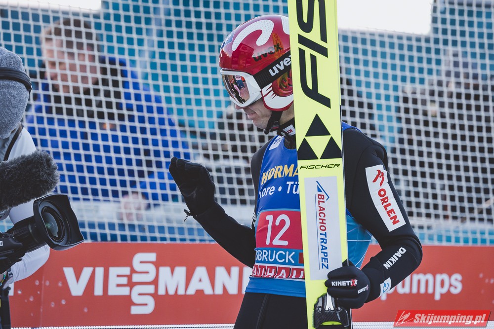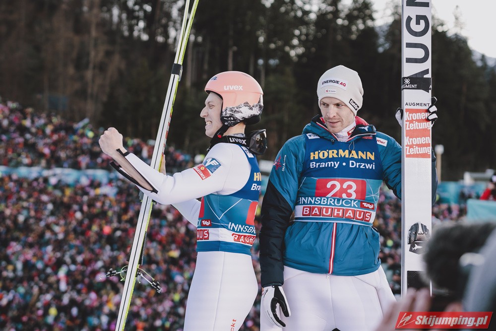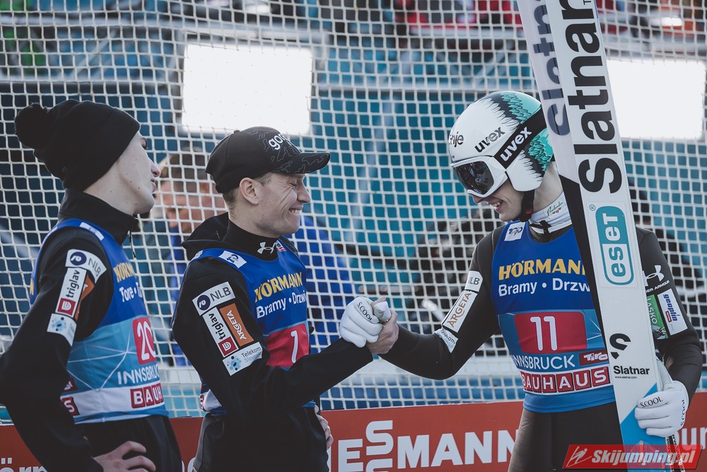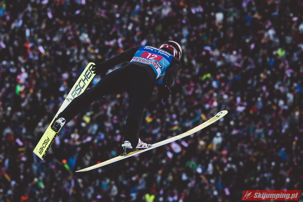 Zwycięzca konkursu w Garmisch-Partenkirchen, Anze Lanisek ostatecznie był siódmy po próbie na 130 metr. Ósmy był Daniel Tschofenig (127,5 m), dziewiąty Clemens Aigner (130,5 m), natomiast dziesiąty Timi Zajc (125,5 m). Na jedenastej pozycji - najwyższej w sezonie - rywalizację w Innsbrucku ukończył Kamil Stoch (130 m).