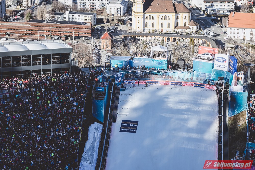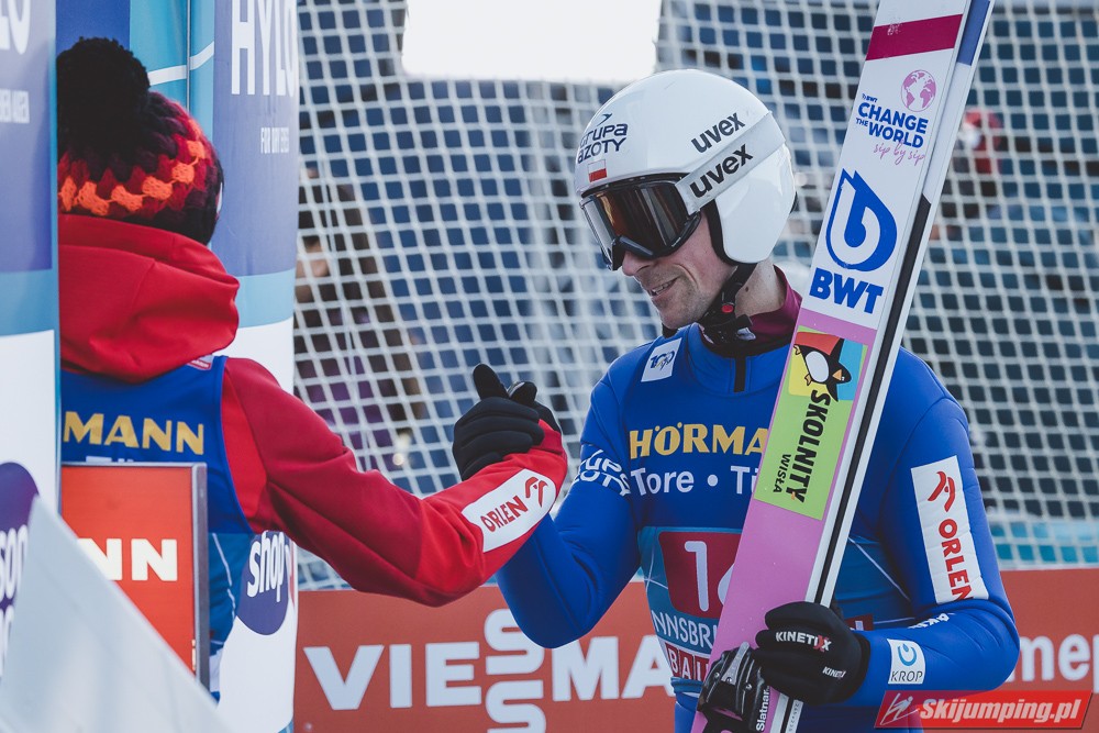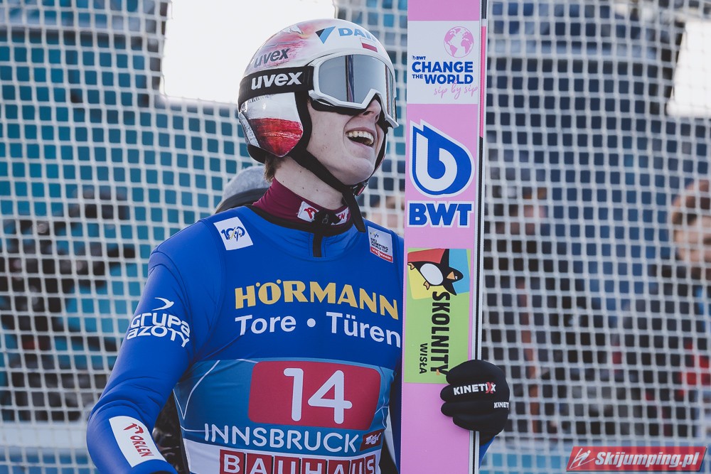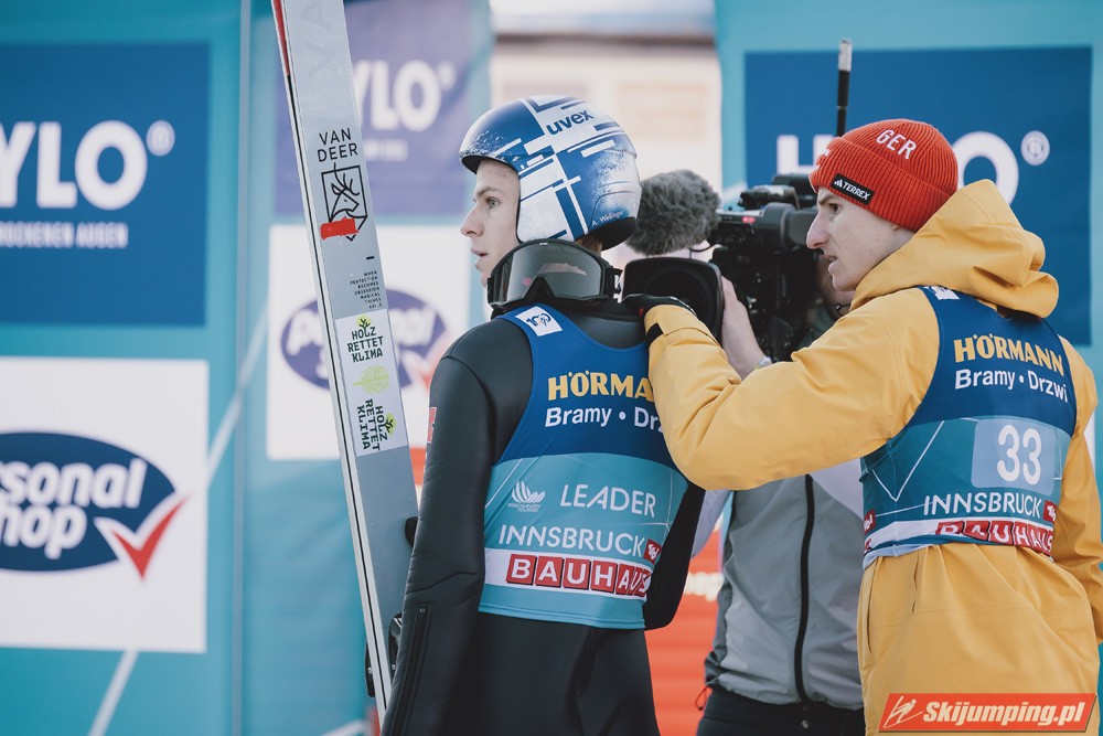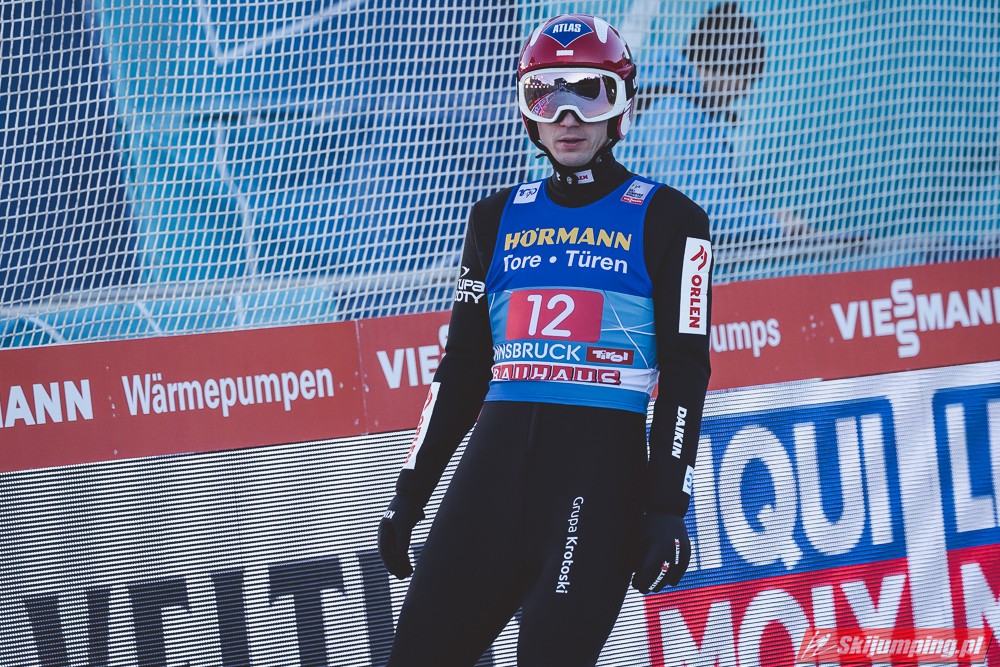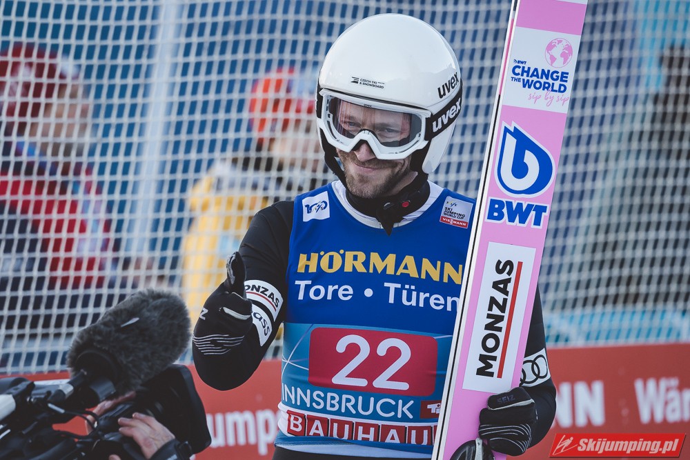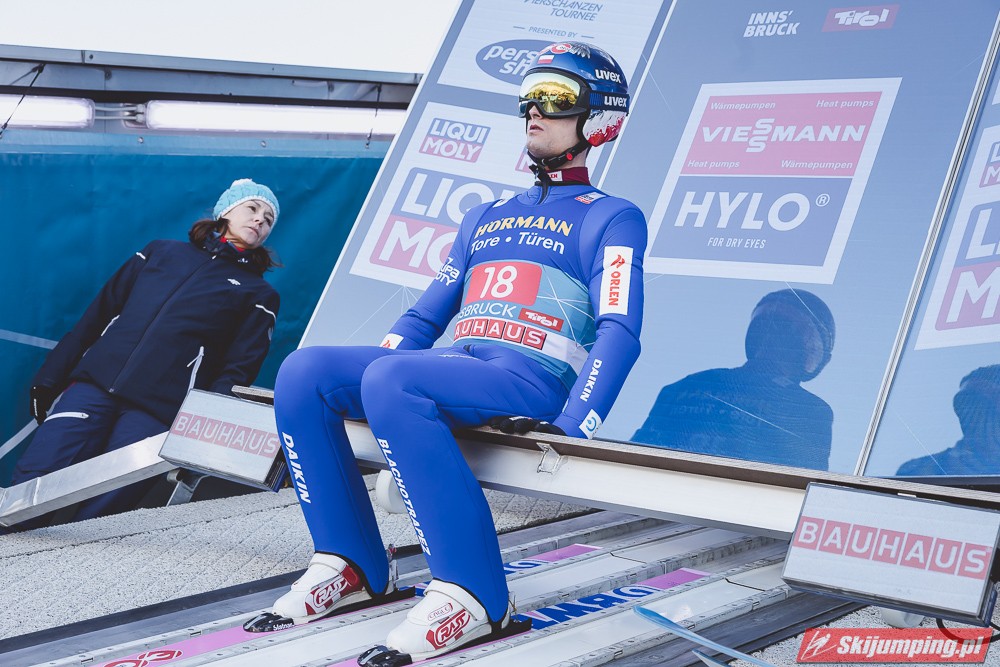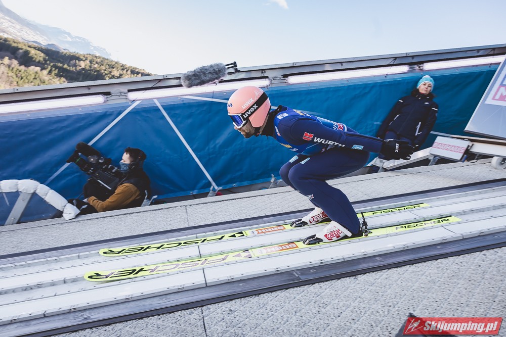 Zwycięzca konkursu w Garmisch-Partenkirchen, Anze Lanisek ostatecznie był siódmy po próbie na 130 metr. Ósmy był Daniel Tschofenig (127,5 m), dziewiąty Clemens Aigner (130,5 m), natomiast dziesiąty Timi Zajc (125,5 m). Na jedenastej pozycji - najwyższej w sezonie - rywalizację w Innsbrucku ukończył Kamil Stoch (130 m).