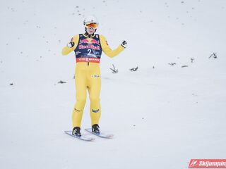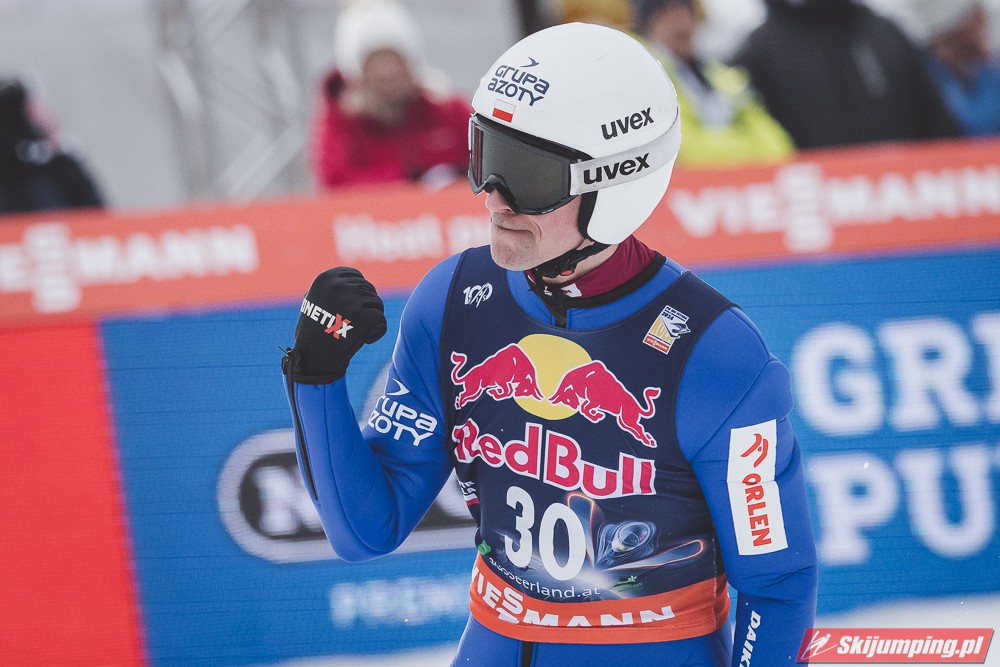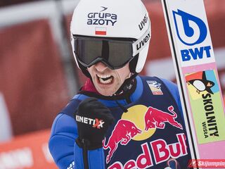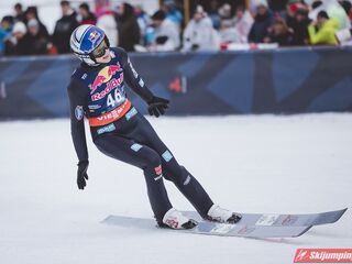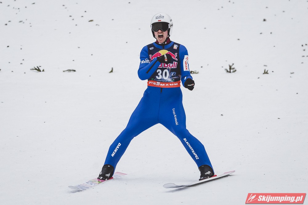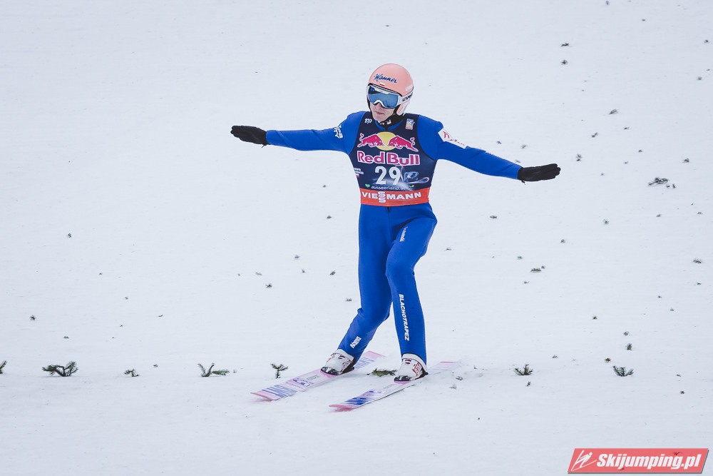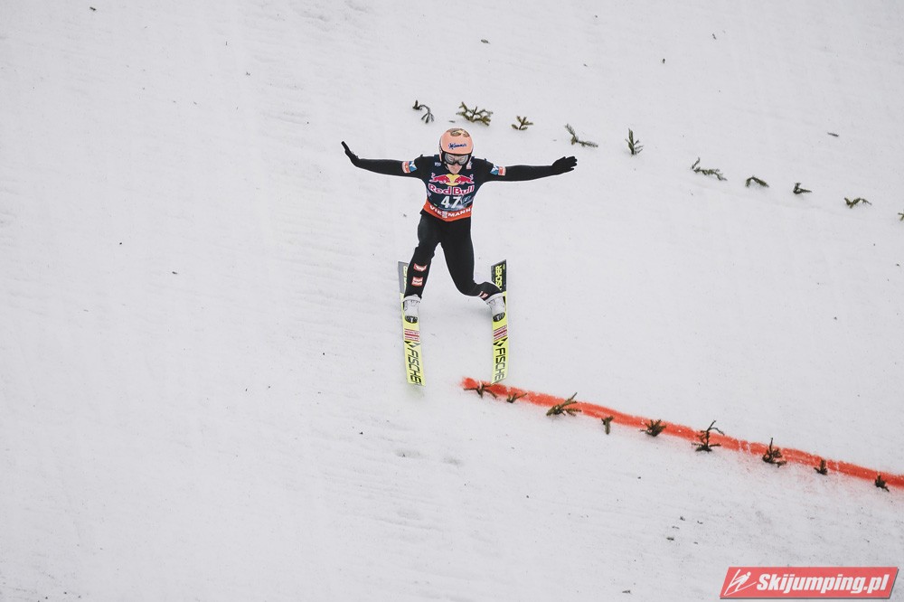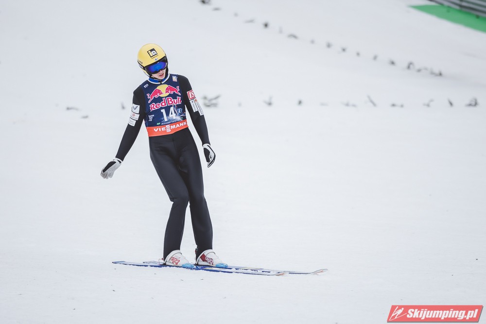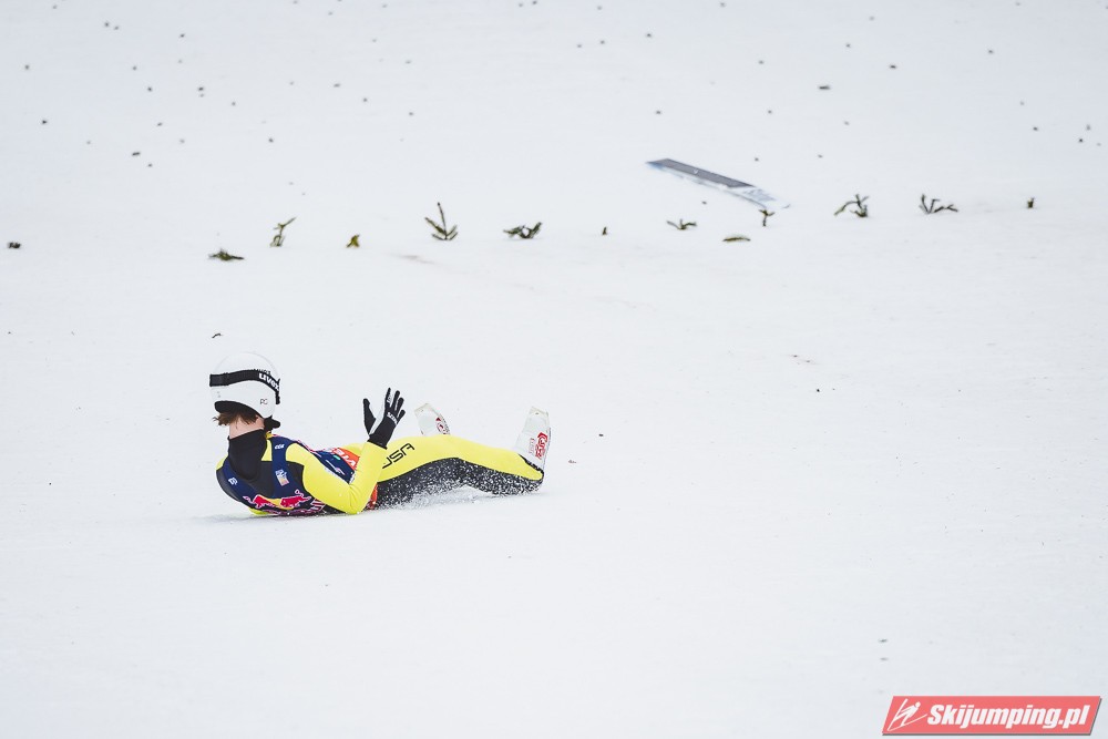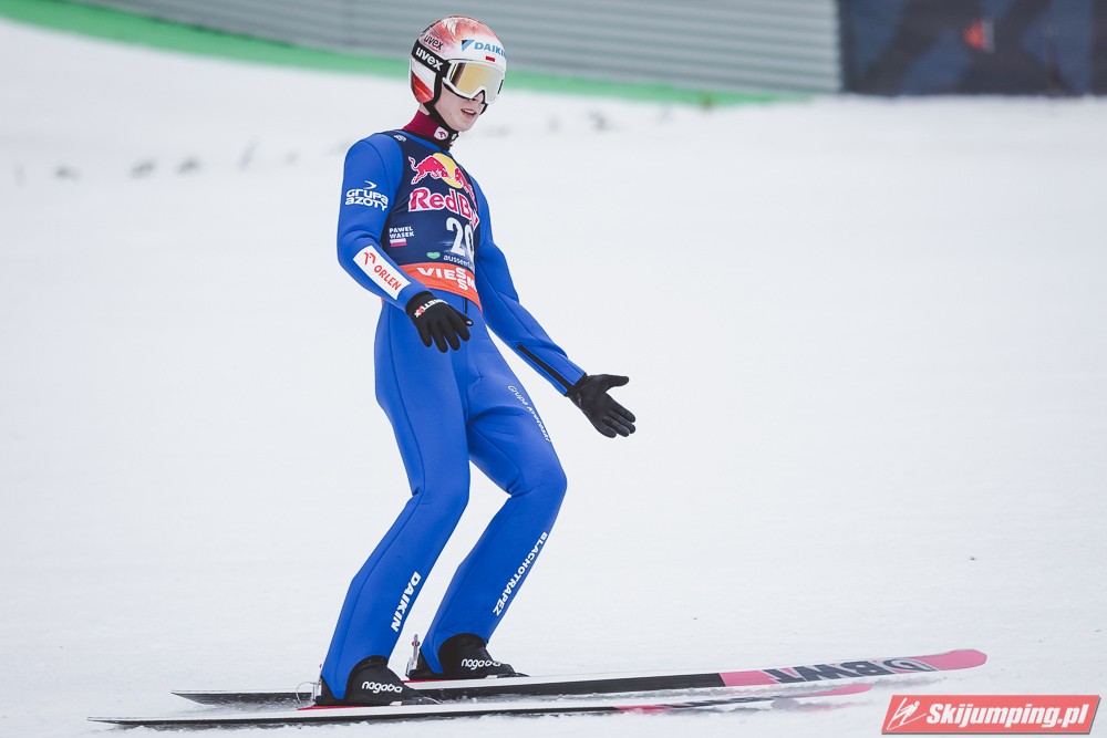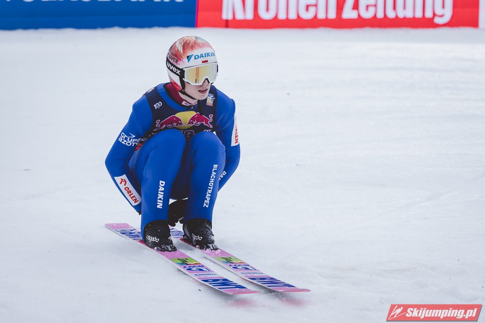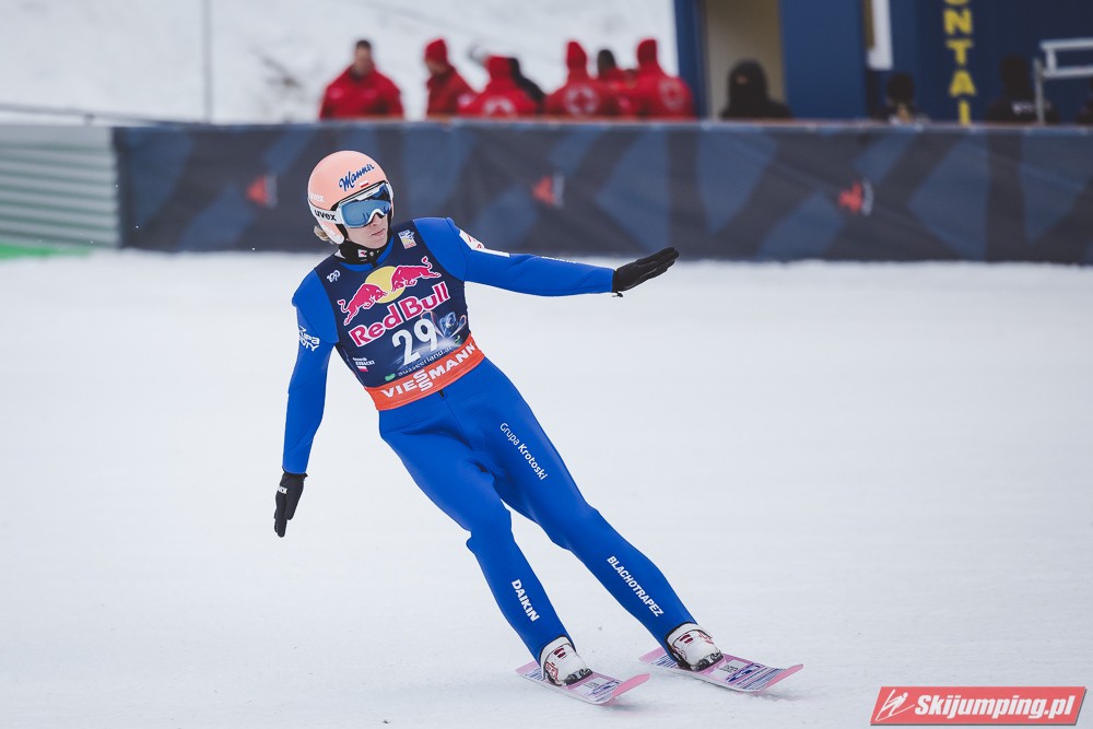 Dawid Kubacki w drugiej próbie wylądował na 203 metrze i zanotował awans na osiemnastą pozycję. Gorzej spisał się Paweł Wąsek, który po skoku na odległość 147,5 metra spadł na dwudzieste dziewiąte miejsce.
