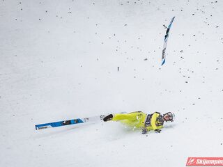 Problemy w locie tuż po wyjściu z progu miał Manuel Fettner, który wylądował na 158 metrze i zakończył udział w mistrzostwach na 35. pozycji. Tuż za Austriakiem uplasował się Erik Belshaw, który zaliczył niegroźny upadek po skoku na odległość 191,5 metra.