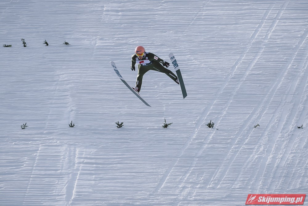 Marusiak jest największym pechowcem tych zawodów. Dwukrotnie skakał w bardzo dokuczliwym czasie. Widać że jest tu piekielnie mocny.