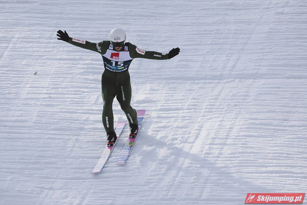 Dawid Kubacki wylądował na 197 metrze i zakończył udział w piątkowym konkursie na trzydziestej drugiej pozycji.