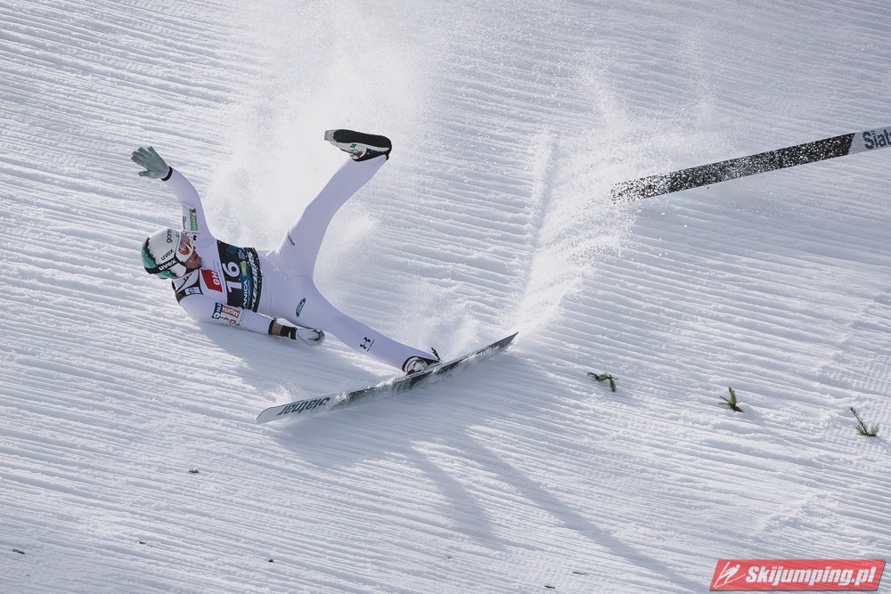 Upadek po skoku na 213 metr odniósł Anze Lanisek. Słoweniec opuścił jednak zeskok Letalnicy o własnych siłach.