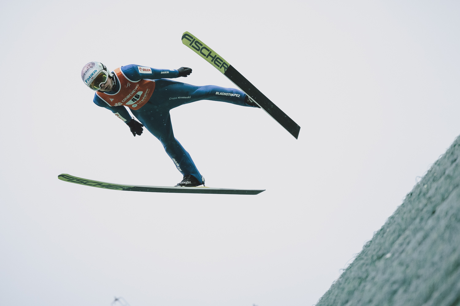Dajcie spokój. To po prostu kombinacja belki w lesie z ostrą dmuchawą pod narty. Musiał skracać skok.