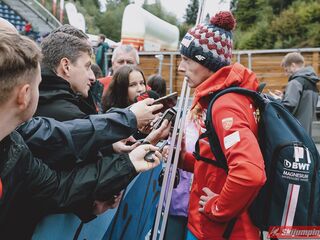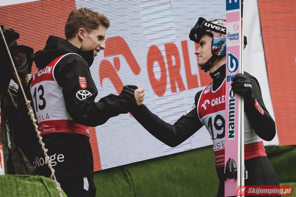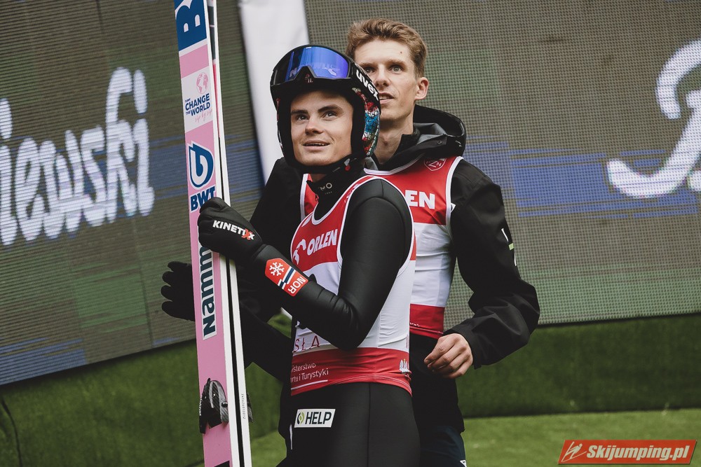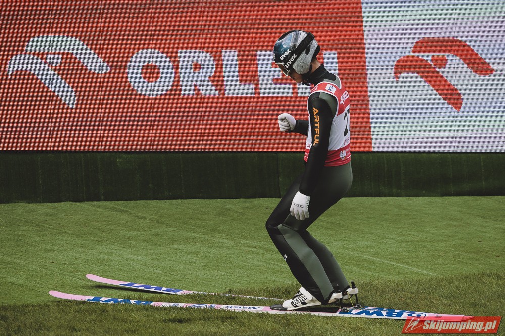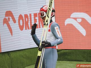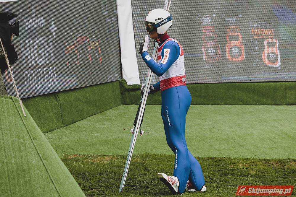 Polacy w konkursie słabiej niż w treningach, jak to często bywa. Drobny plusik dla Juroszka, który już lepiej skoczył w konkursie niż w drugim treningu, prologu i próbnej. Szkoda, że Zniszczoł nie utrzymał swojej lokaty. Kubacki to jeden z dwóch Polaków, którzy awansowali po drugim skoku. Niestety, Stoch przegrał wewnętrzną rywalizację. Tym samym nie wystąpi o 15:00. Nie miałbym nic przeciwko, jakby zimą nie był brany do składów na PŚ w wypadku słabszej formy od 5-6 innych Polaków. Obawiam się, że będzie nadal brany nawet w tej sytuacji, tylko musiałby być w naprawdę fatalnej dyspozycji, by nie startować. Na szczęście jeszcze Wolny i Wąsek jeszcze między sobą powalczą. Jak nie mają top 10, to może tym razem się uda? Niżnik niech nawet Thurnbichlerowi nie pokazuje się po tej żenadzie na oczy i nigdzie nie startuje, chyba że w FIS Cup.